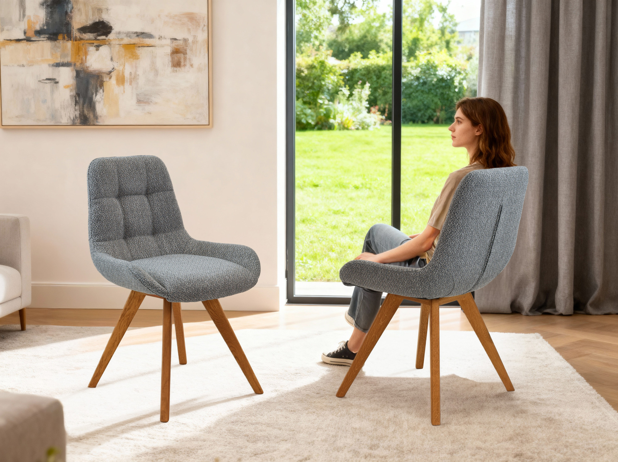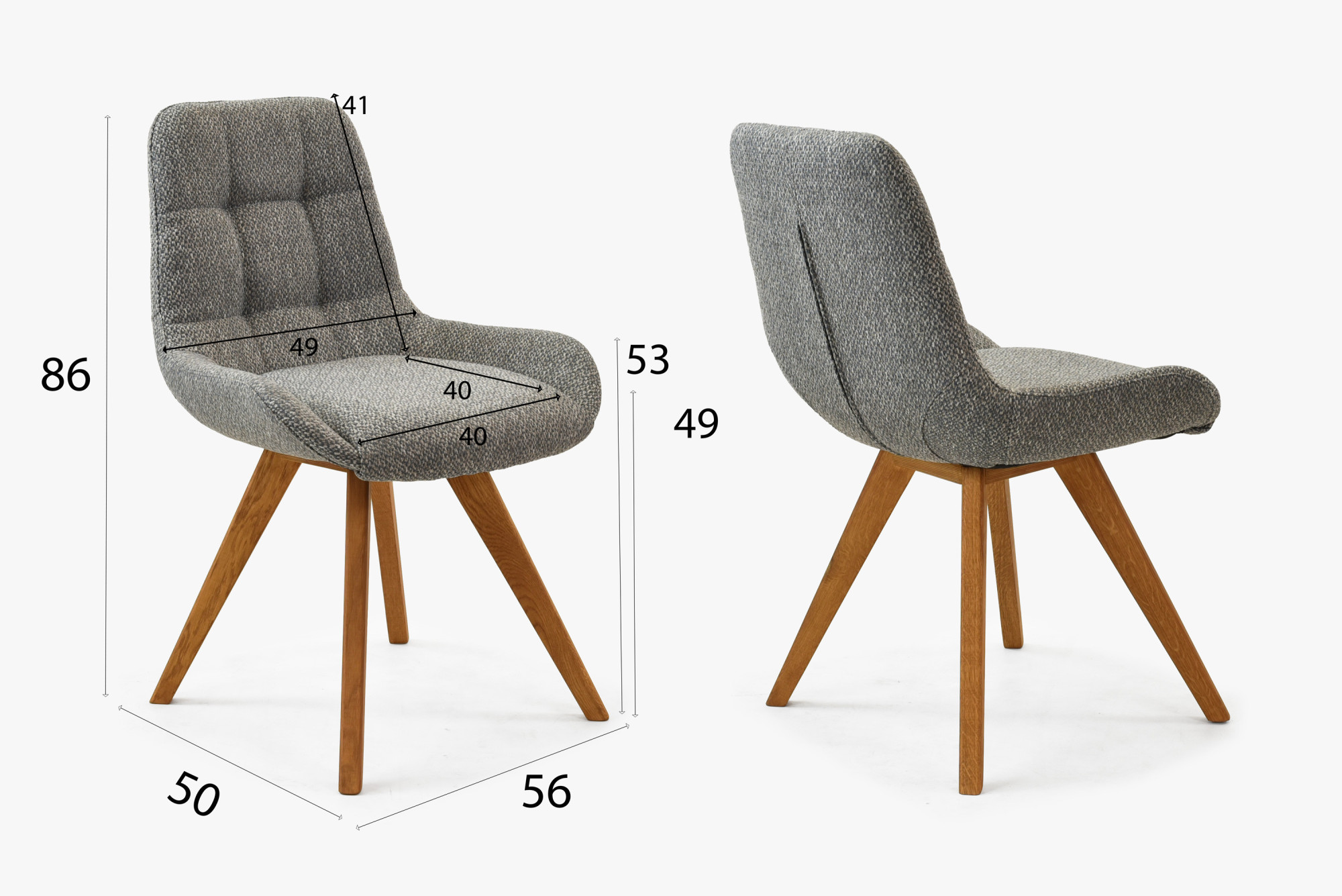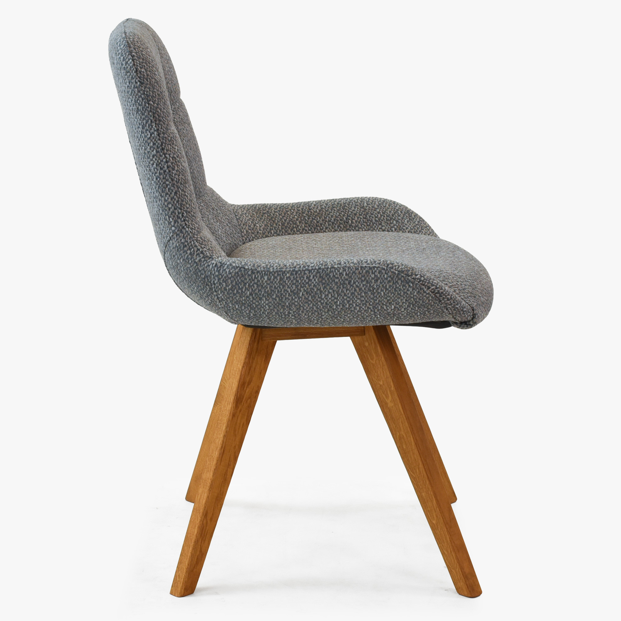 A Temza tölgyfa szék kékes szürke kárpitozással tökéletes választás minden otthon számára, amely minőségi, természetes fa bútorokat keres magas ülési kényelemmel. Ez a szék modern dizájnjával és elegáns megjelenésével tűnik ki, amely kiválóan illeszkedik különböző belső terekbe. A szék többféle kárpit színben is elérhető – , így könnyedén kiválaszthatja az otthonához legmegfelelőbb változatot. A háttámla modern varrása kifinomult és korszerű megjelenést kölcsönöz a széken, miközben az ülőrész oldalán lévő támasztó oldalak magas komfortot biztosítanak.