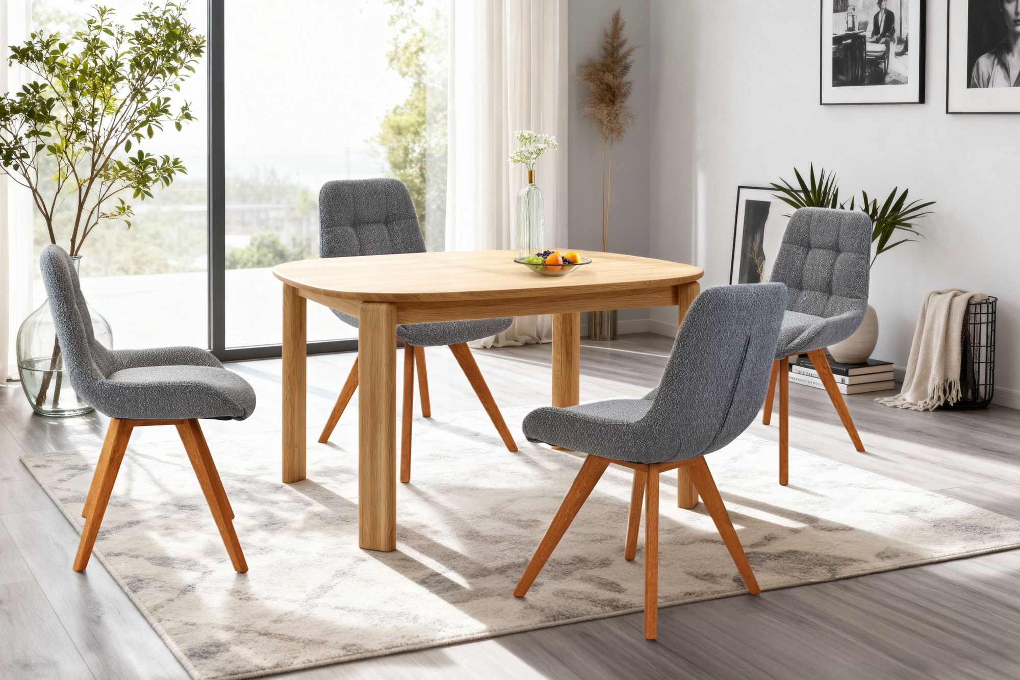 Tömör tölgyfa étkezőszék kékes szürke EASY clean kárpittal