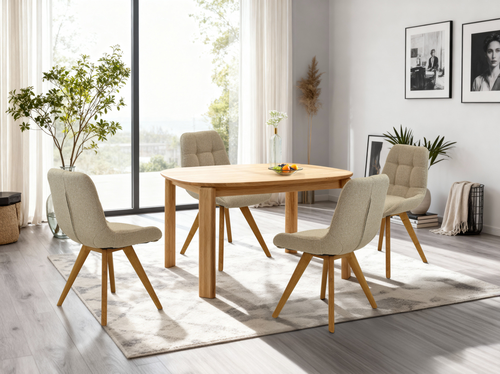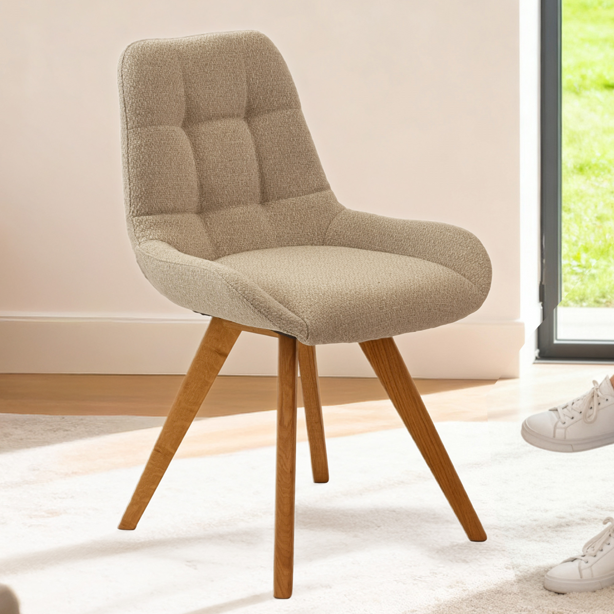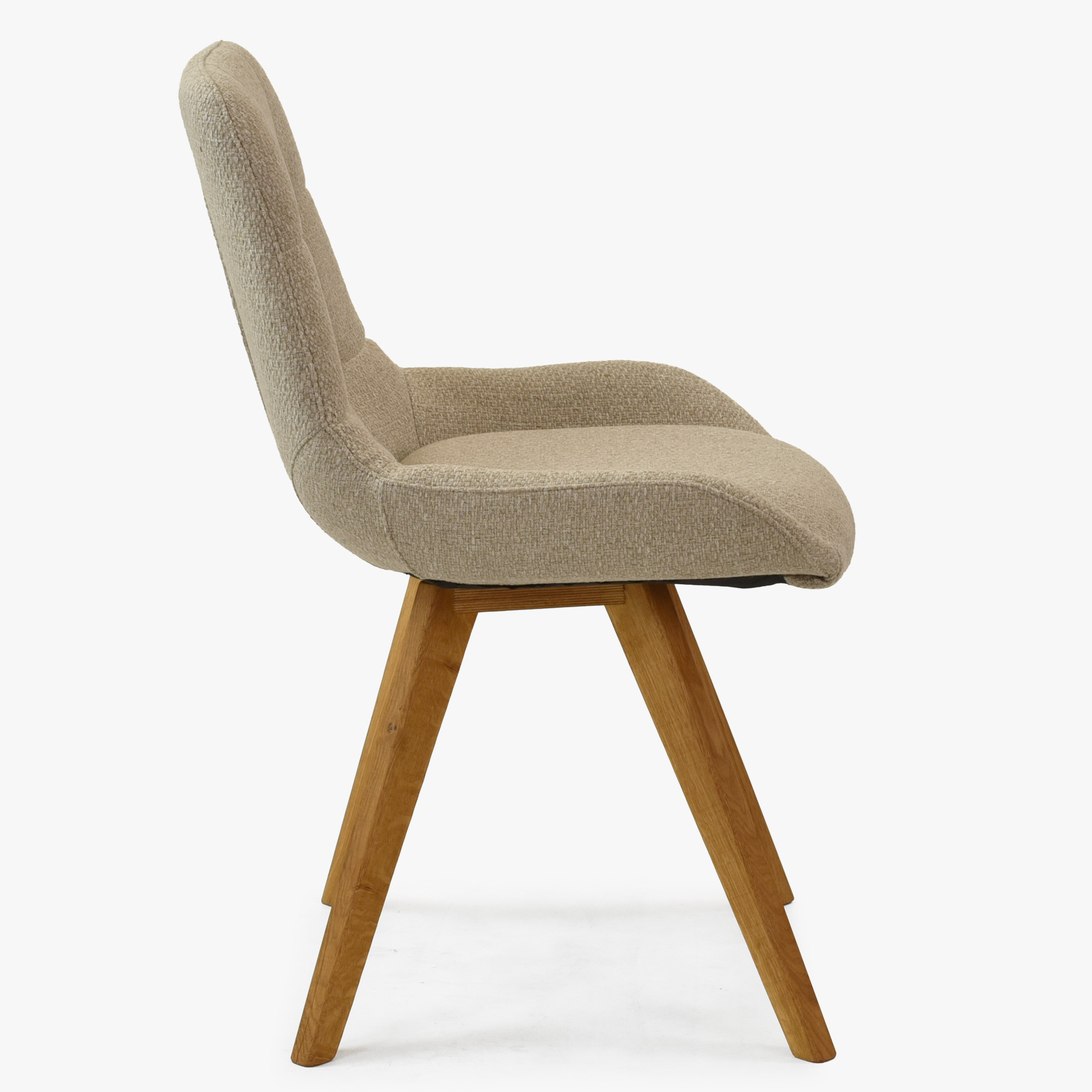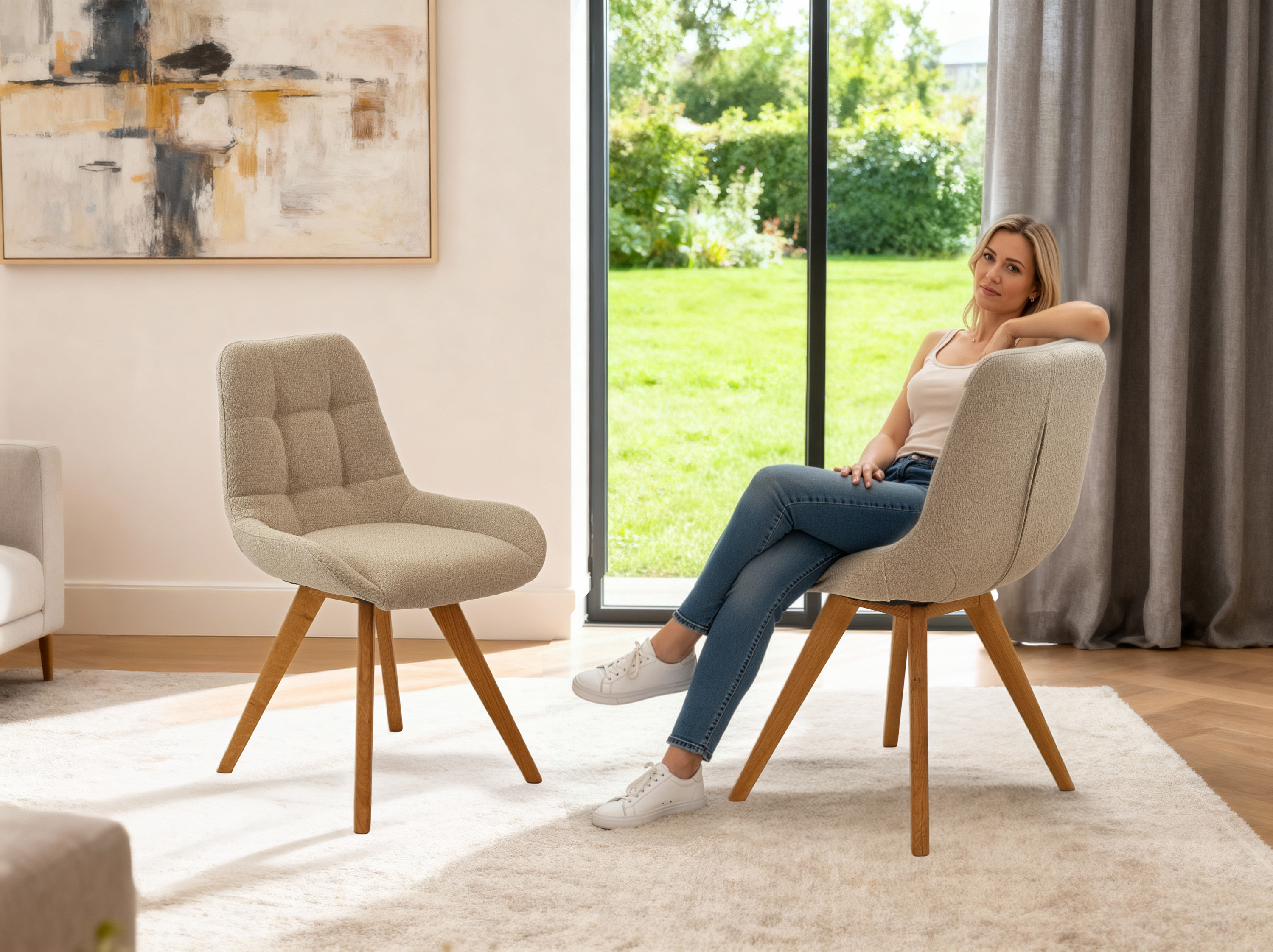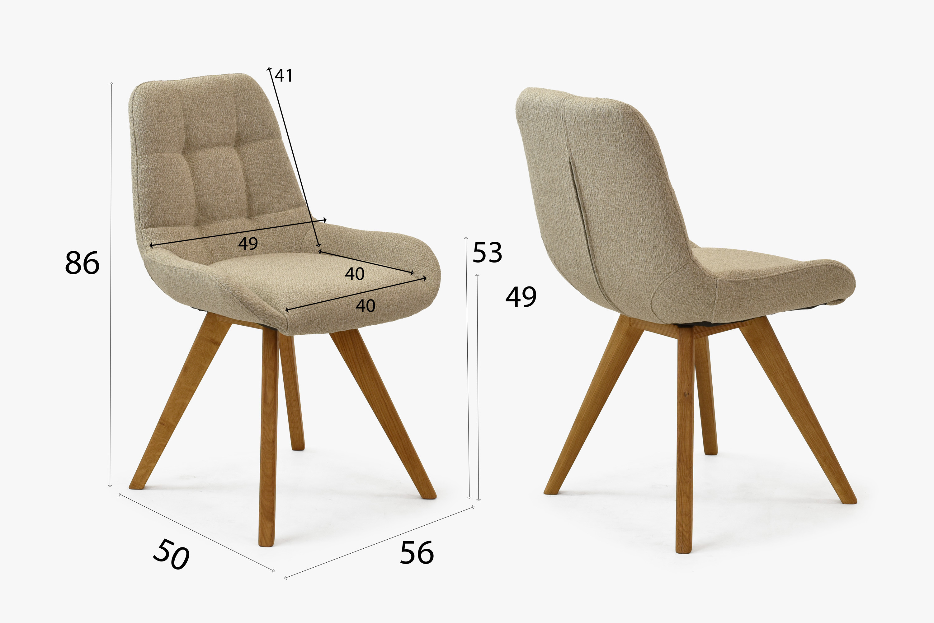 A szék szerkezete tömör tölgyfából készült, ami tartósságot és stabilitást nyújt. Az ebben a székben felhasznált tölgyfa FSC tanúsítvánnyal rendelkezik, ami azt jelenti, hogy felelősségteljesen kezelt erdőkből származik, így hozzájárul a környezetvédelemhez. A kárpitozás EASY CLEAN típusú anyagból készült, lásd: további információs videó, amely rendkívül kellemes tapintású. A plüsshatású szövet nemcsak esztétikailag vonzó, hanem könnyen tisztán tartható és kopásálló is.