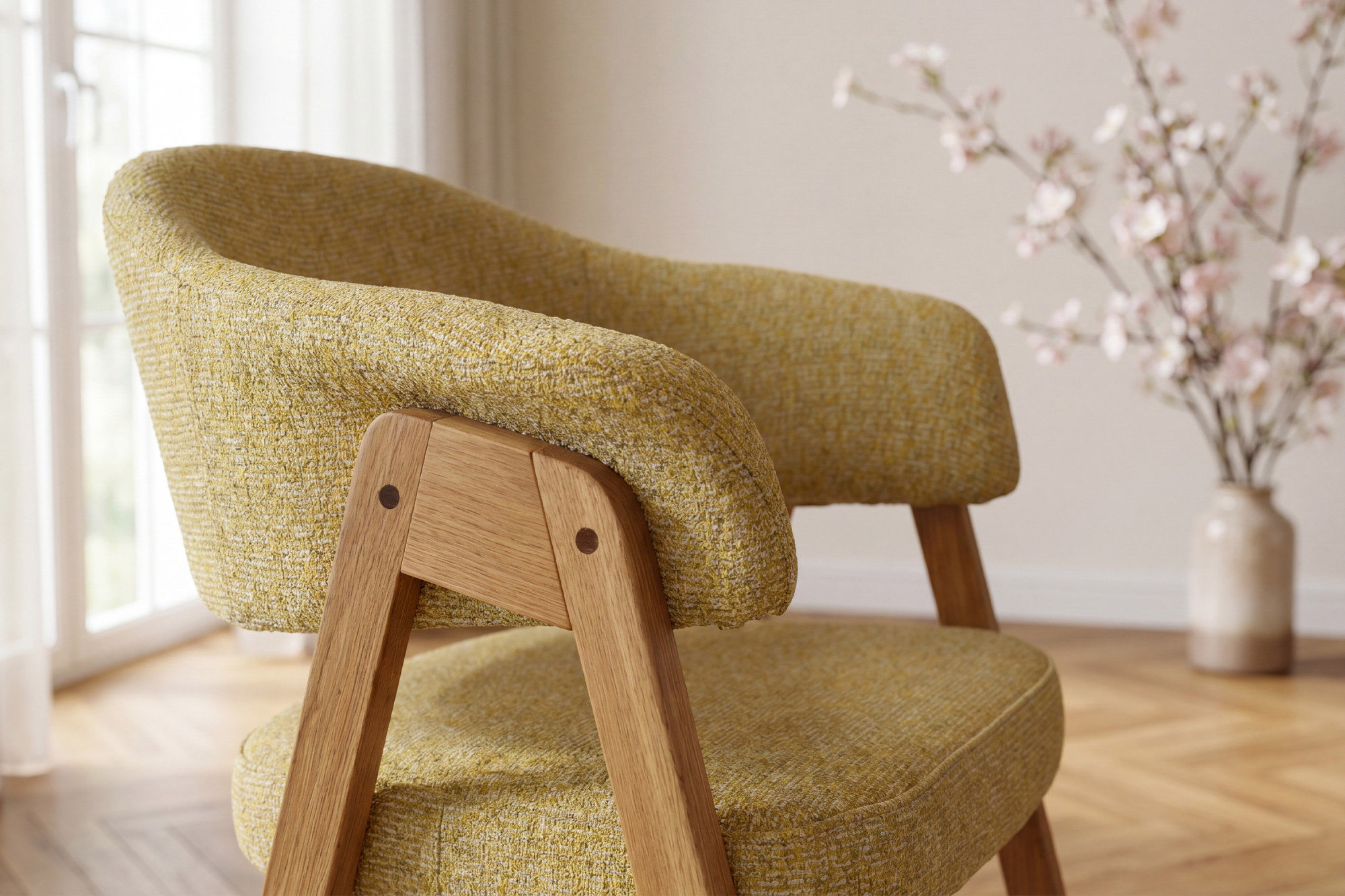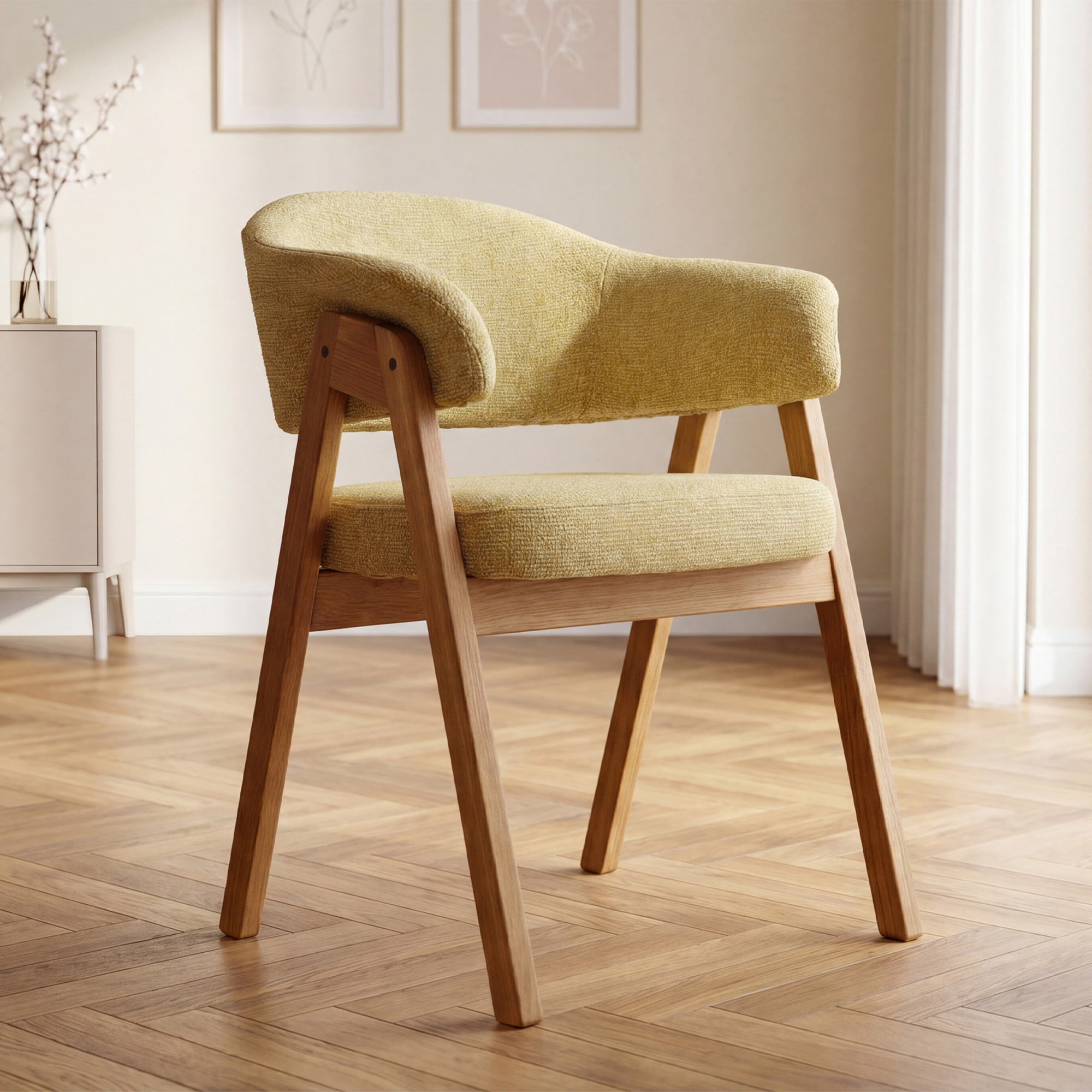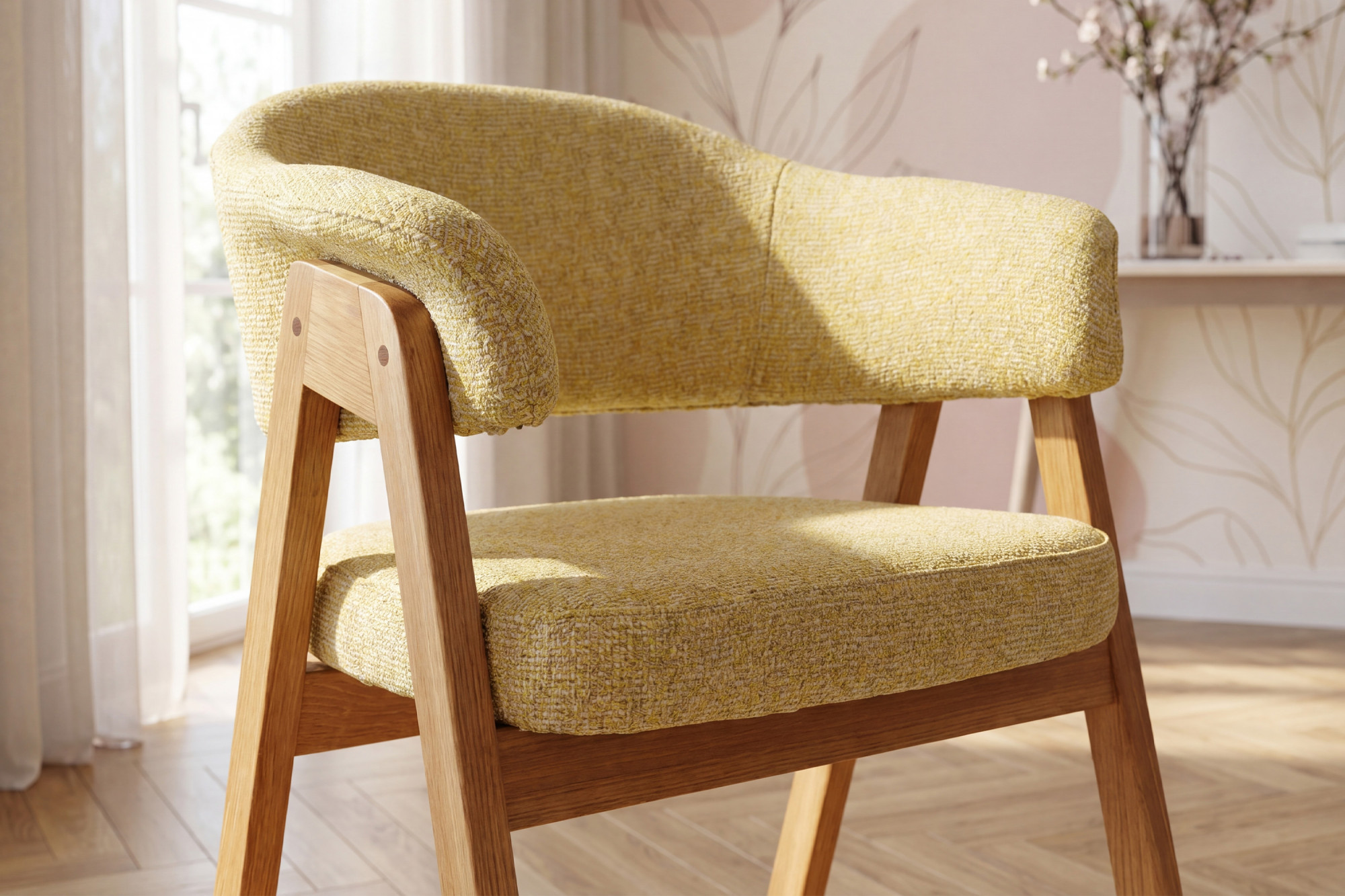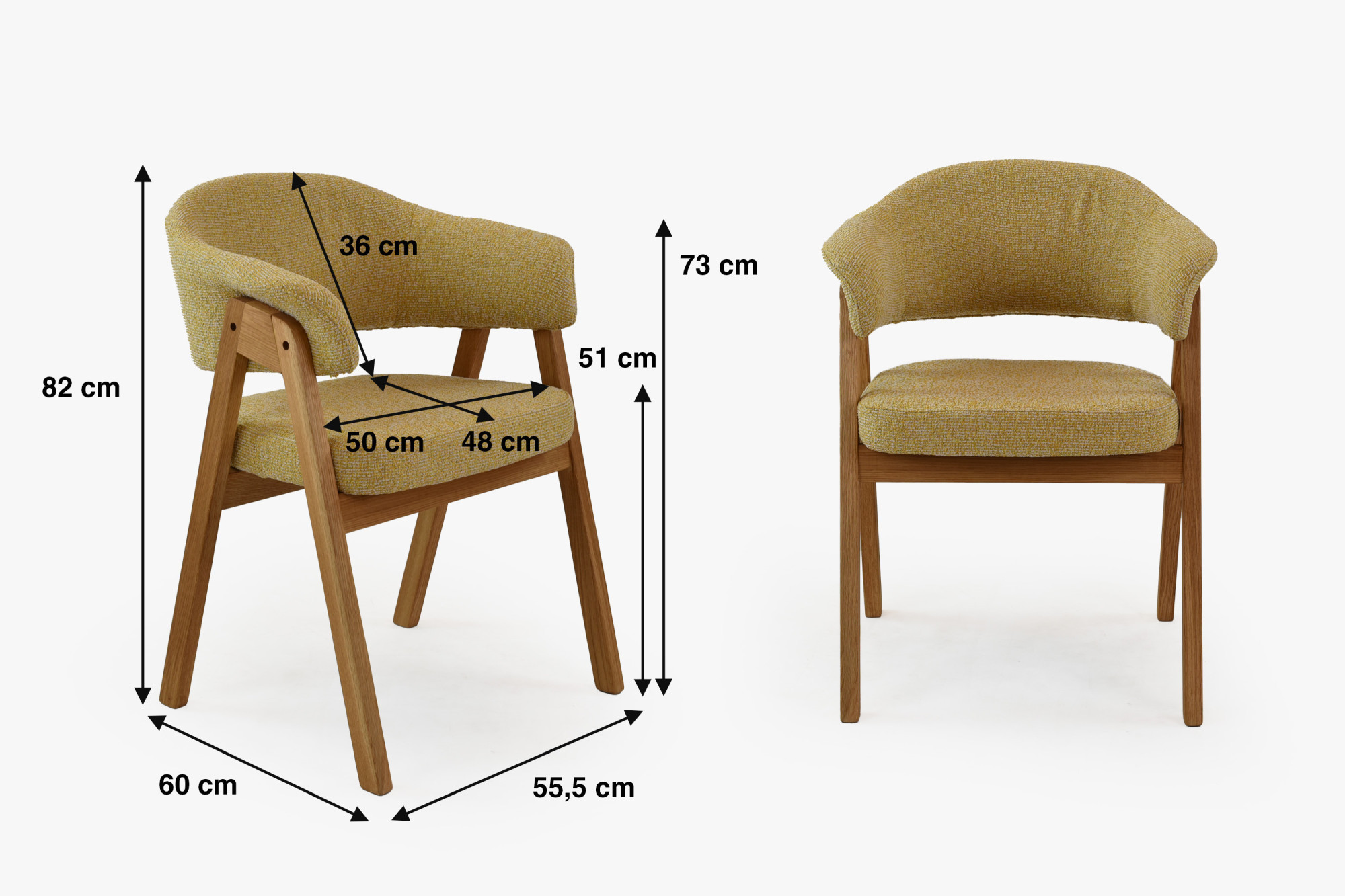 Mona tölgyfa karfás szék kiváló választás azoknak, akik minőségi tömörfa étkezőszéket keresnek, ahol fontos a kényelem, a tartósság és az időtálló megjelenés. A strapabíró tölgyfa, a precíz kivitelezés és az erős kárpitozás ötvözete révén olyan bútordarabot kap, amely hosszú éveken át megbízhatóan szolgál. A természetes natúr tölgy könnyen kombinálható más bútorokkal, miközben a sárga kárpitozás otthonosságot és egyedi stílust visz a térbe.