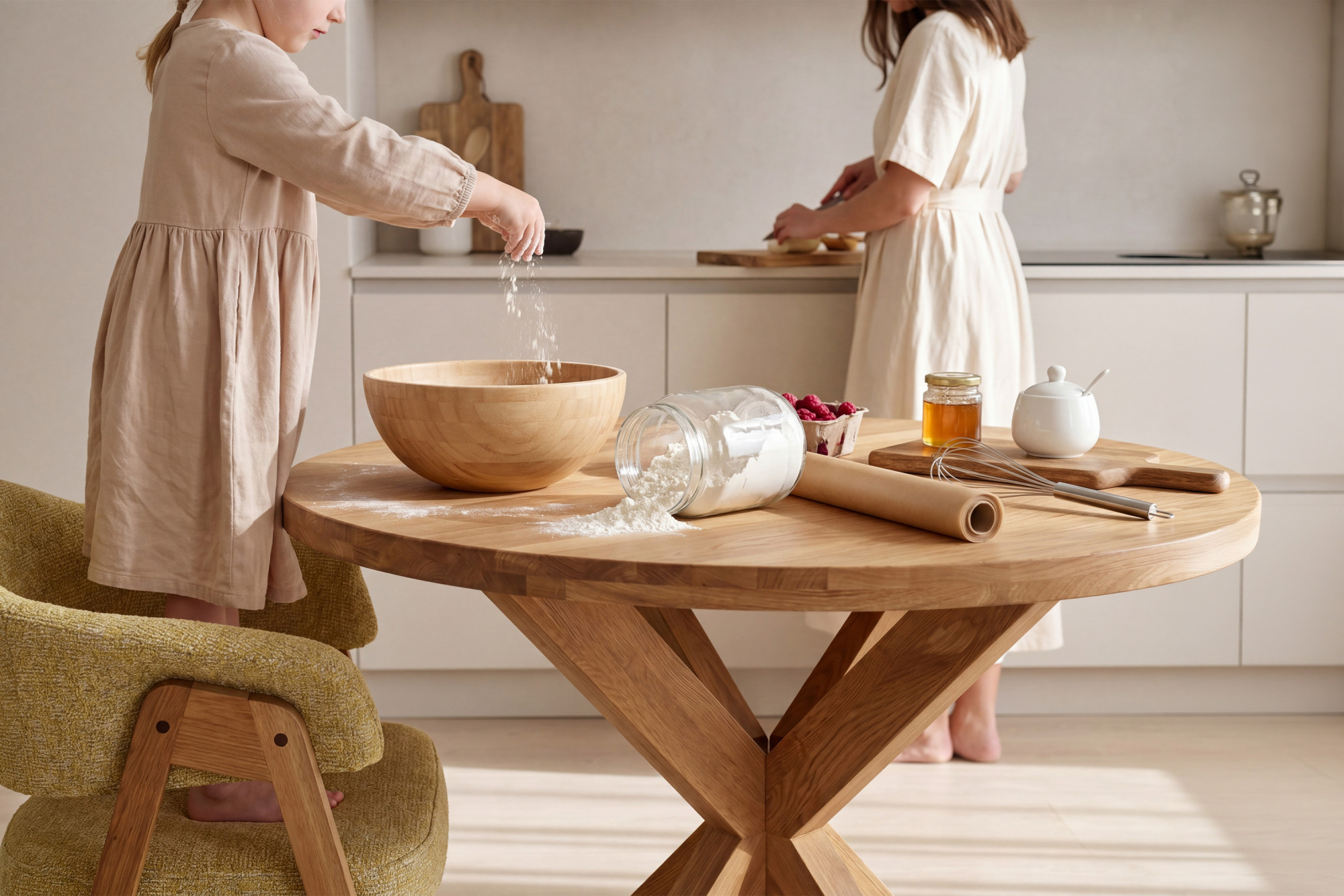 - Modern tömörfa design – ideális kortárs vagy természetes hangulatú belső terekhez