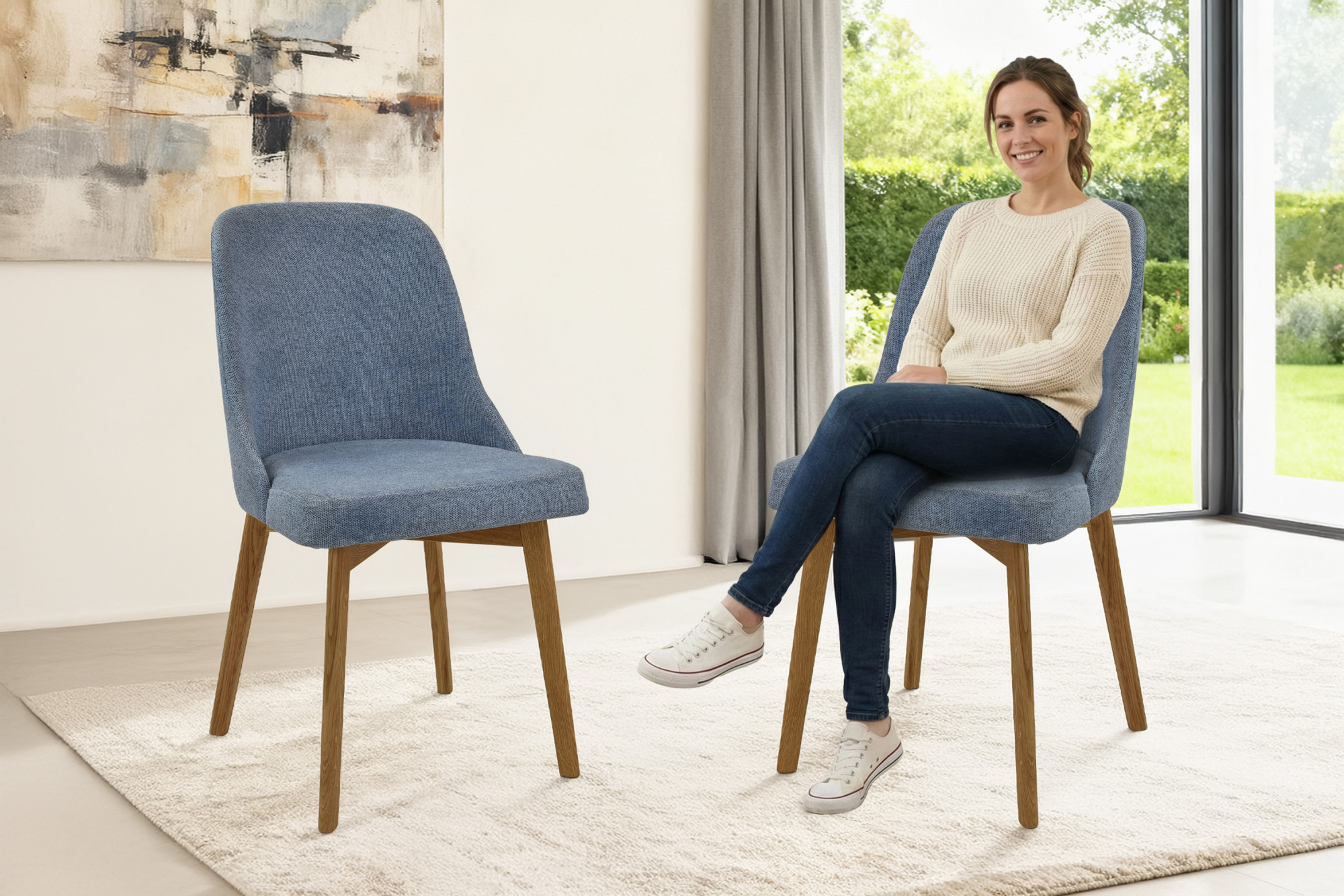 Elegáns étkezőszék kék szövetben tölgy lábakkal – Minőségi kárpitozott bútor