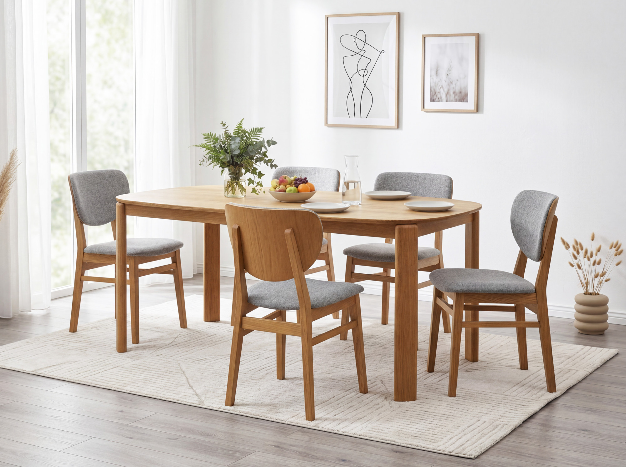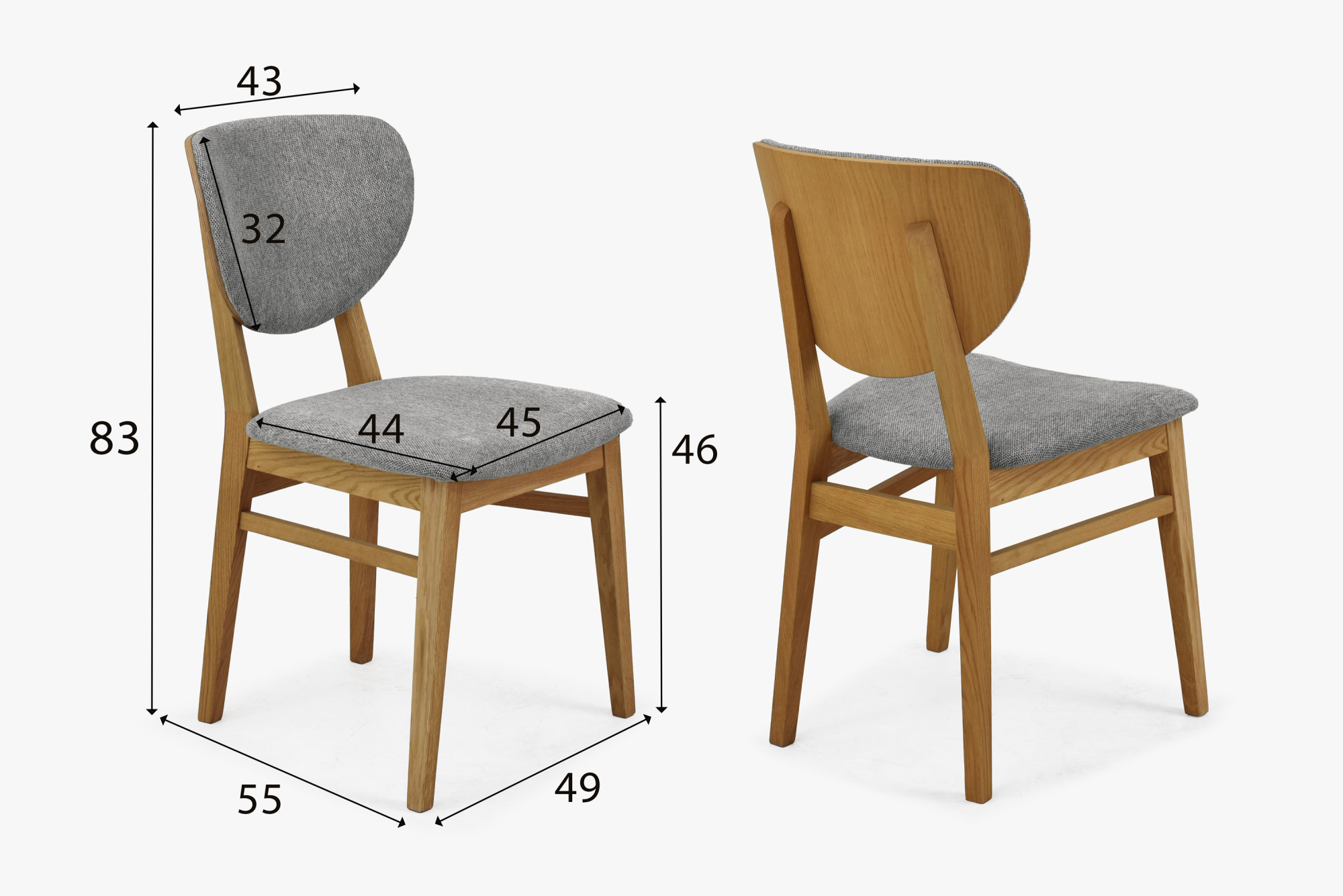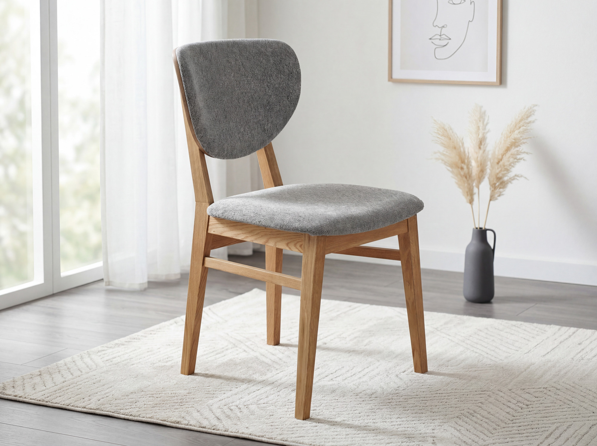 * A képen a Barca tölgyfa étkezőszék látható szürke szövetben