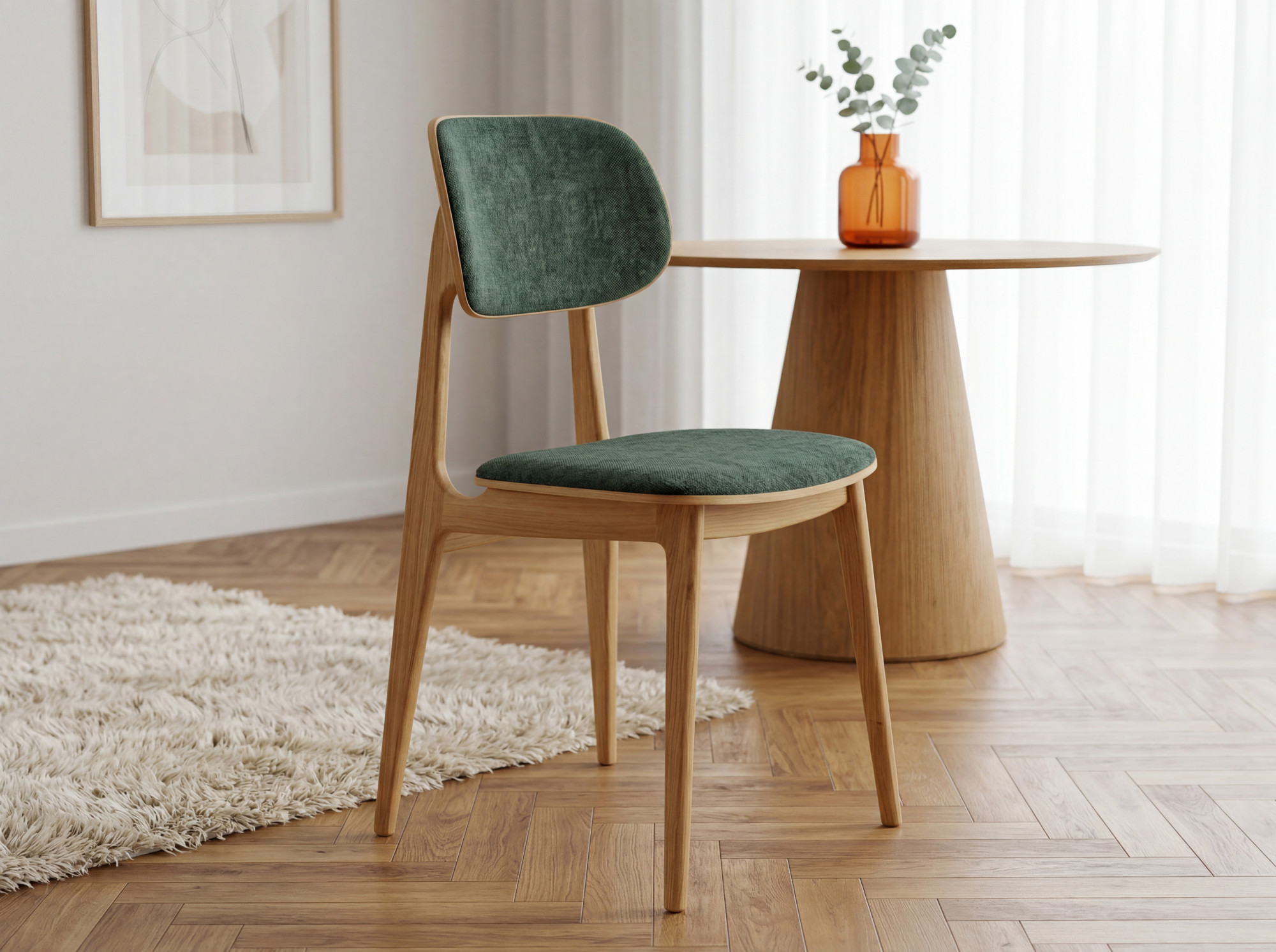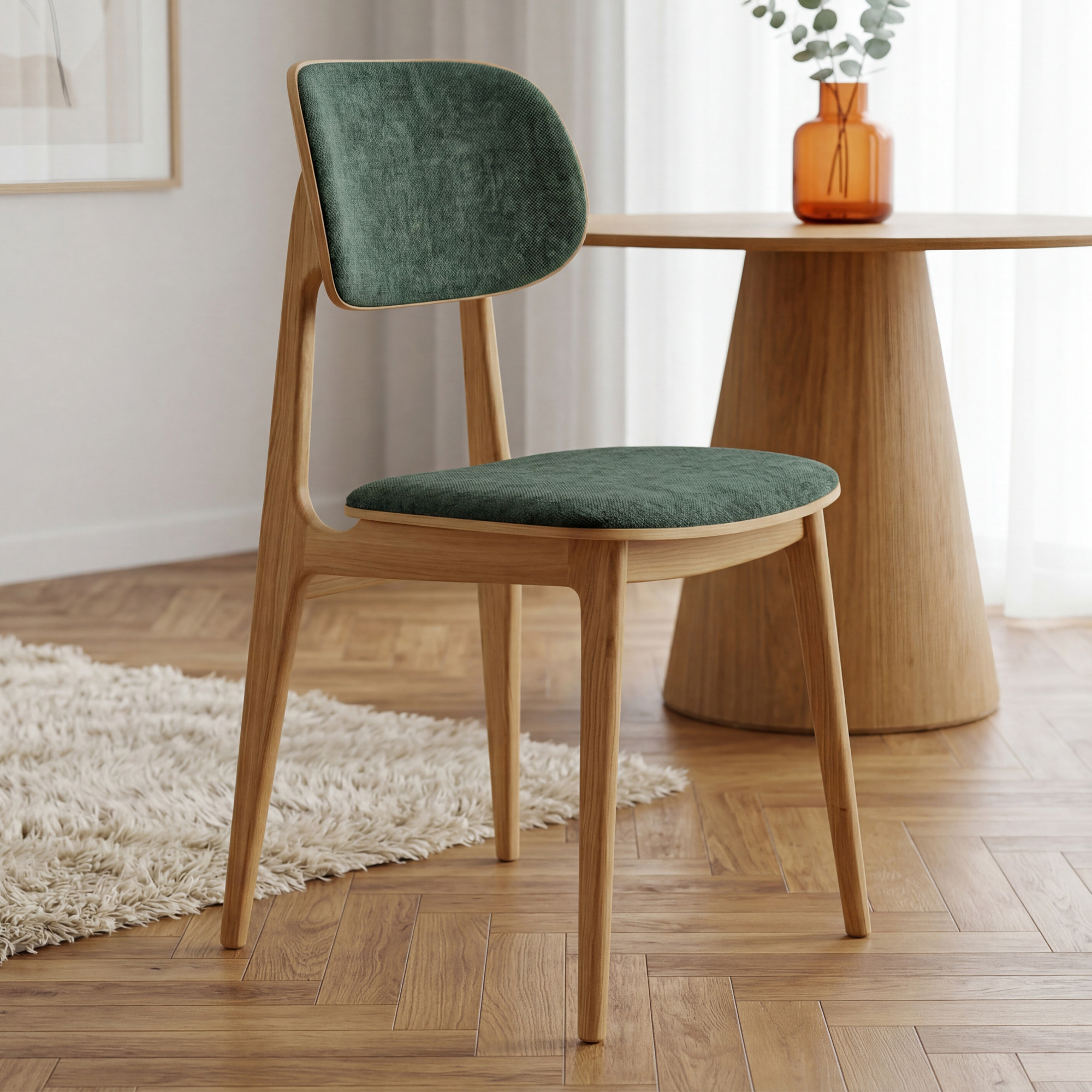 Kárpitozott Vard étkezőszék tömör tölgyből – zöld szövet