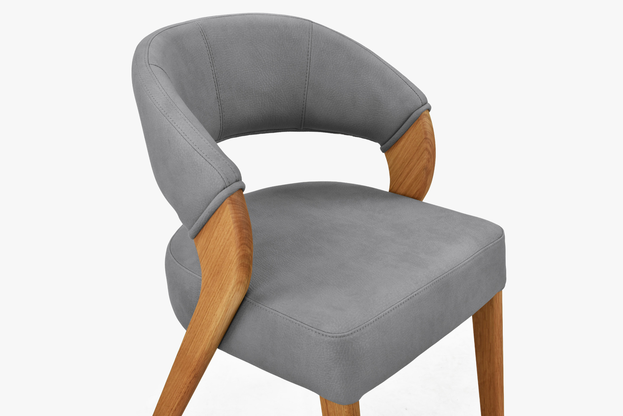 Ha olyan étkezőszéket keres, amely légies hangulatot és finom eleganciát visz az enteriőrbe, ez a design szék tartós Texas világosszürke árnyalatú huzattal pontosan megfelelő. A háttámla lágy ívei zökkenőmentesen folynak át a kényelmes ülőrészbe, egységes sziluettet alkotva, amely első pillantásra megfog. A tömör tölgyfa lábak, természetes olajjal kezelve, meleg, természetes hangulatot kölcsönöznek a széknek, és szépen kontrasztálnak a világos kárpittal. A háttámla ergonomikus formázása kényelmes ülést biztosít még a hosszú családi ebédek alatt is.