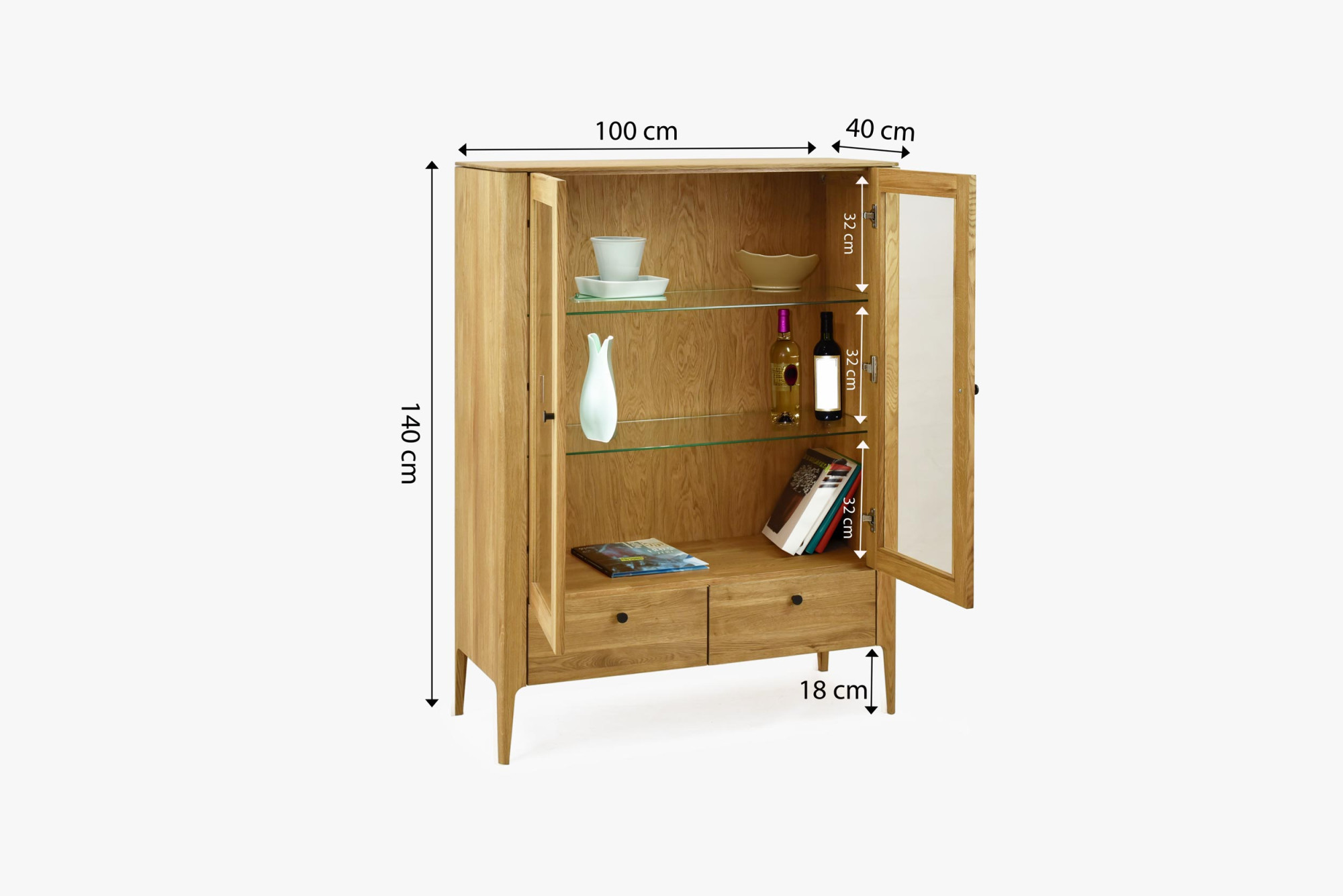 - Vitrin (típus 12): Magasság: 140 cm, szélesség: 100 cm, mélység: 40 cm