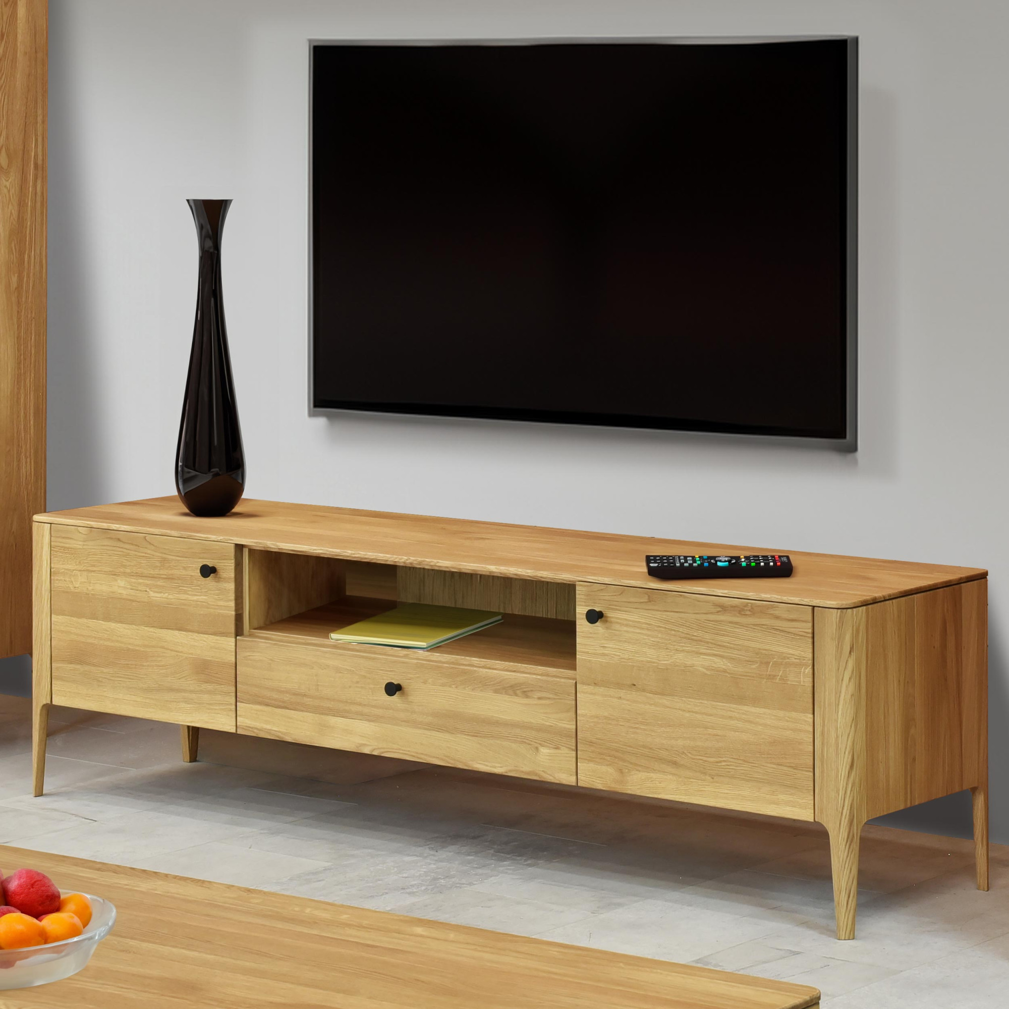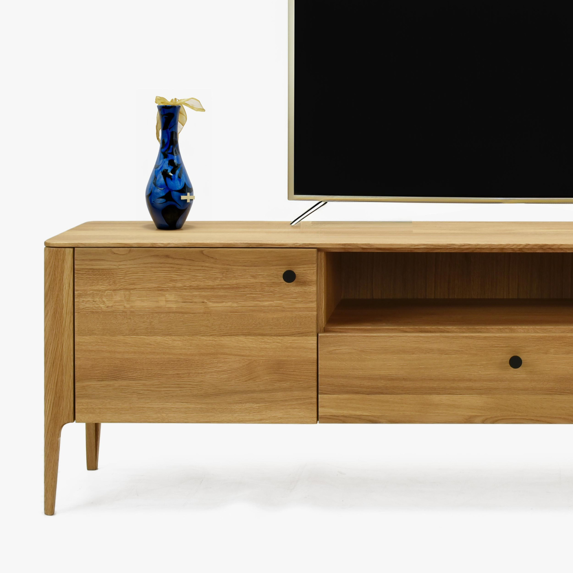 Tömör tölgyfa nappali szekrénysor Kassa, modern, lekerekített dizájn