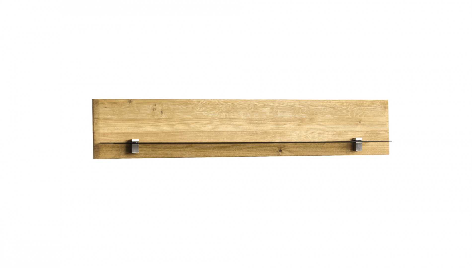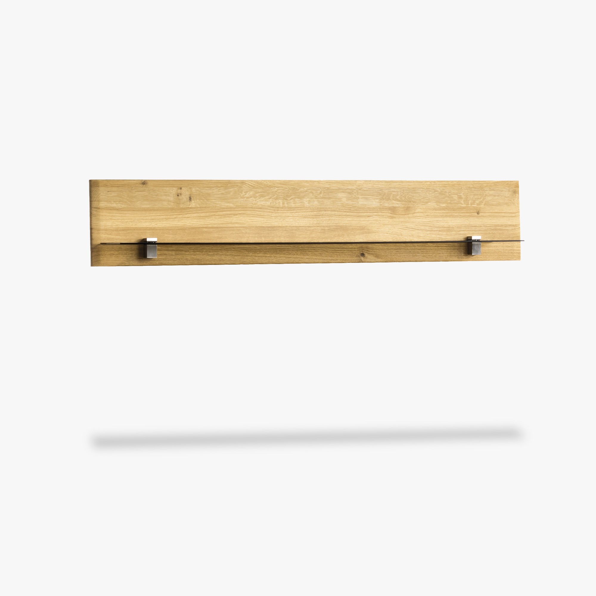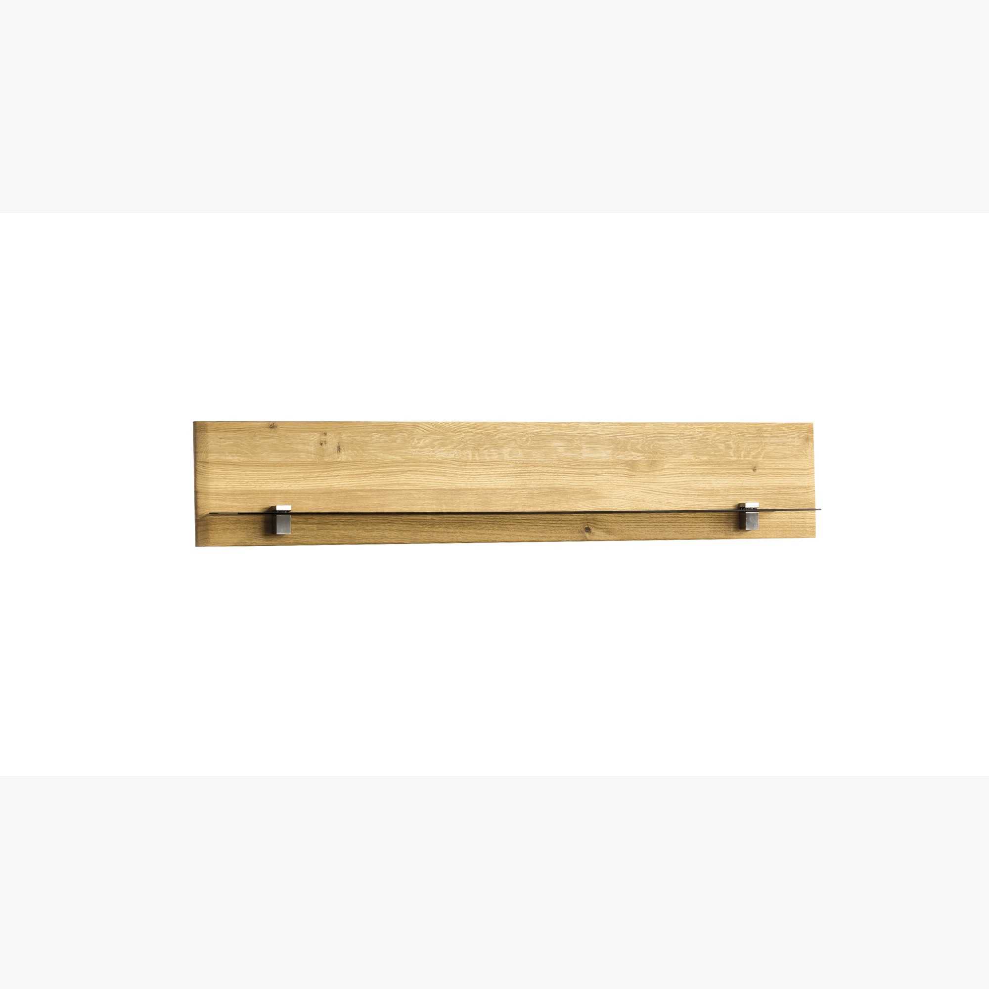 Hosszú tölgyfa polc tölgyfából készült, üvegpolccal együtt, a falra szereléshez szükséges szerelvényekkel. A polc természetes tölgy olaj színű, így bármely tölgybútor kollekcióval kombinálható.