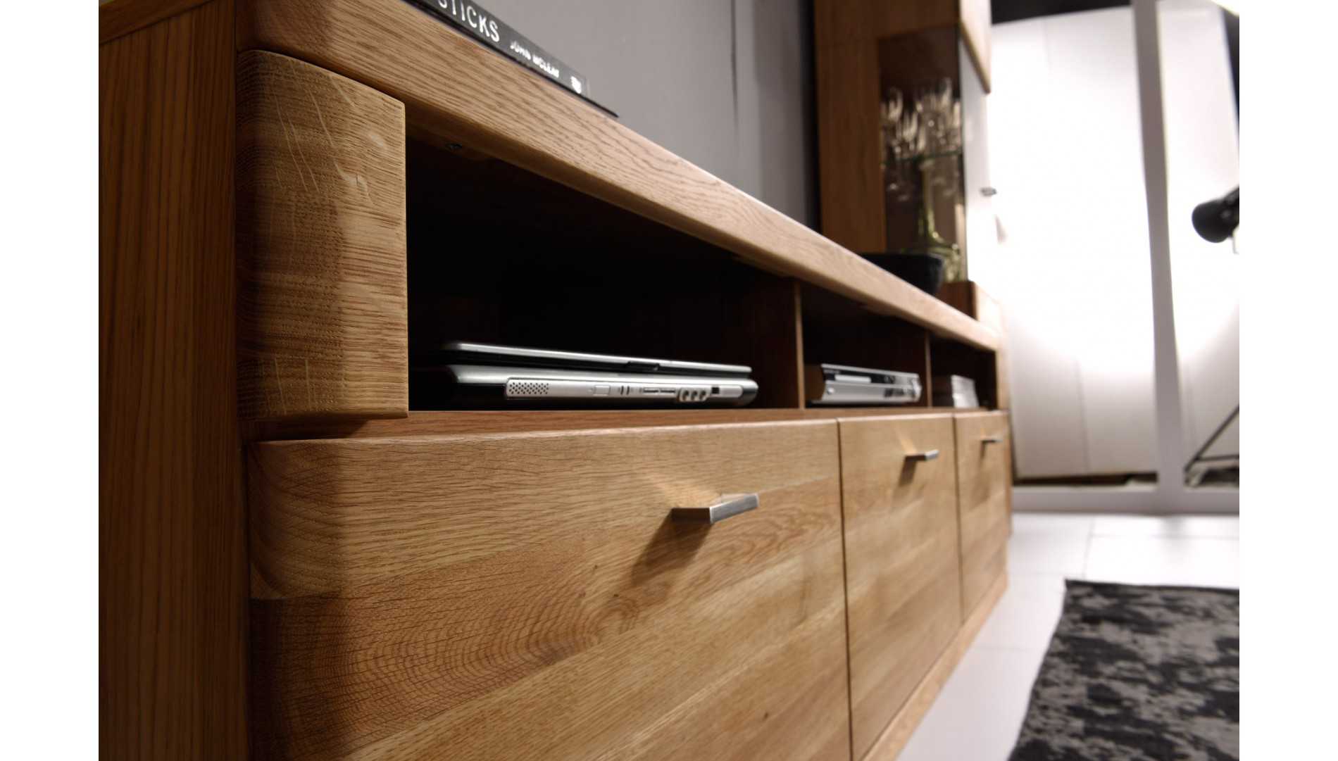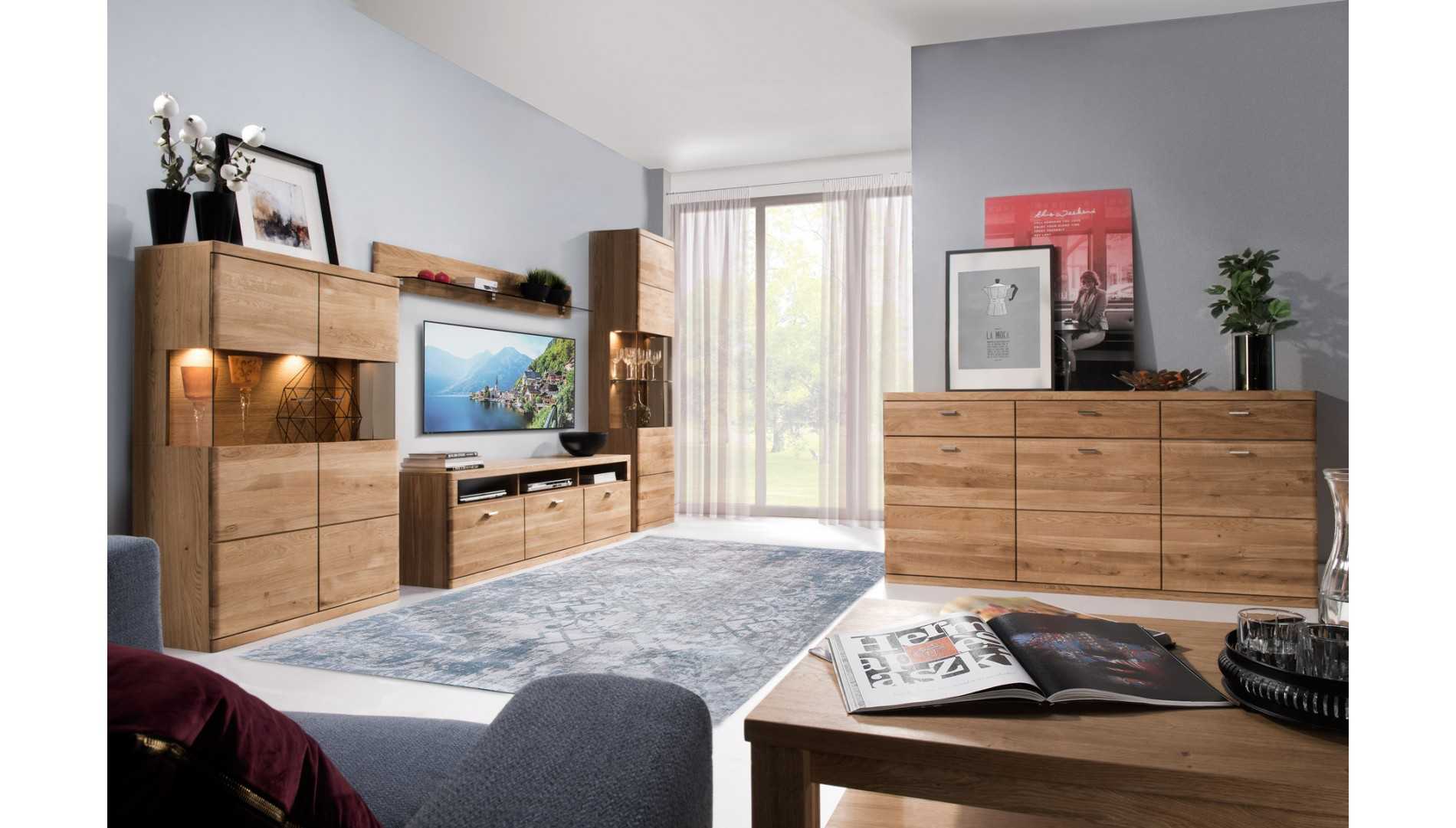 Időtlen bútor, amely természetes tölgyfa és természetes tölgyfurnér kombinációjából készült. A bútor nappaliba és étkezőbe való. Időtlen dizájnú, természetes olajjal kezelt. A Boston kollekcióban található TV-komód két hosszban, üveges vitrin, dohányzóasztal és szintén dizájn komód. A bútor összeszerelve kerül leszállításra világítás nélkül; világítás felár ellenében vásárolható. A komód és az ajtók előlapjai tölgyfából készülnek, a felső lap és a korpusz oldalsó betétei természetes tölgyfurnérból vannak.