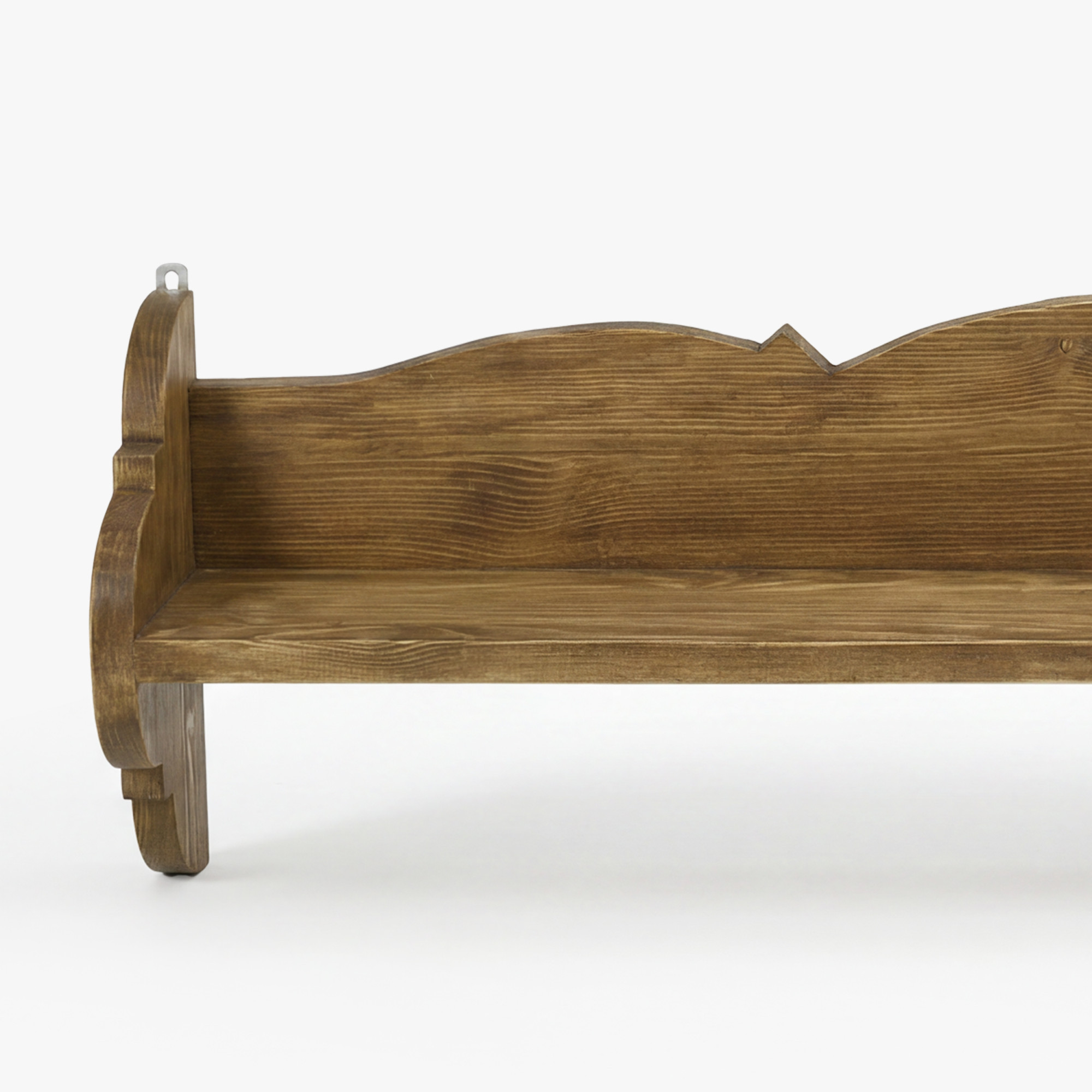 A polc felületét kiváló Supreme Max viasszal kezelik, Ruggeri barna, más néven sötét méz árnyalatban. Ez a felületkiemelés hangsúlyozza a fenyő természetes erezetét, kiemeli a bútor rusztikus jellegét, és egyúttal védi a felületet a mindennapos használat során. A polc falra szerelhető – igény szerint rögzíthető akasztókra vagy csavarokra. Nagy előnye, hogy egyben, összeszerelve kerül kiszállításra, így nincs szükség bonyolult összeszerelésre.