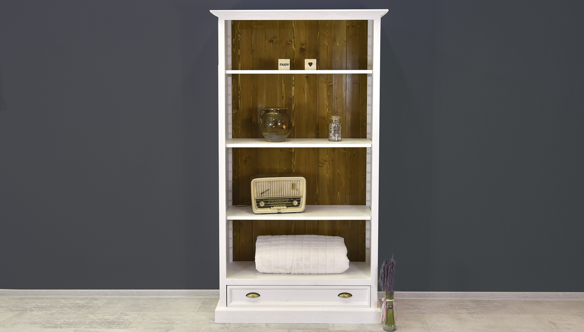 Provence stílusú tömör fenyő polc fehér-barna, 195x98x44 cm