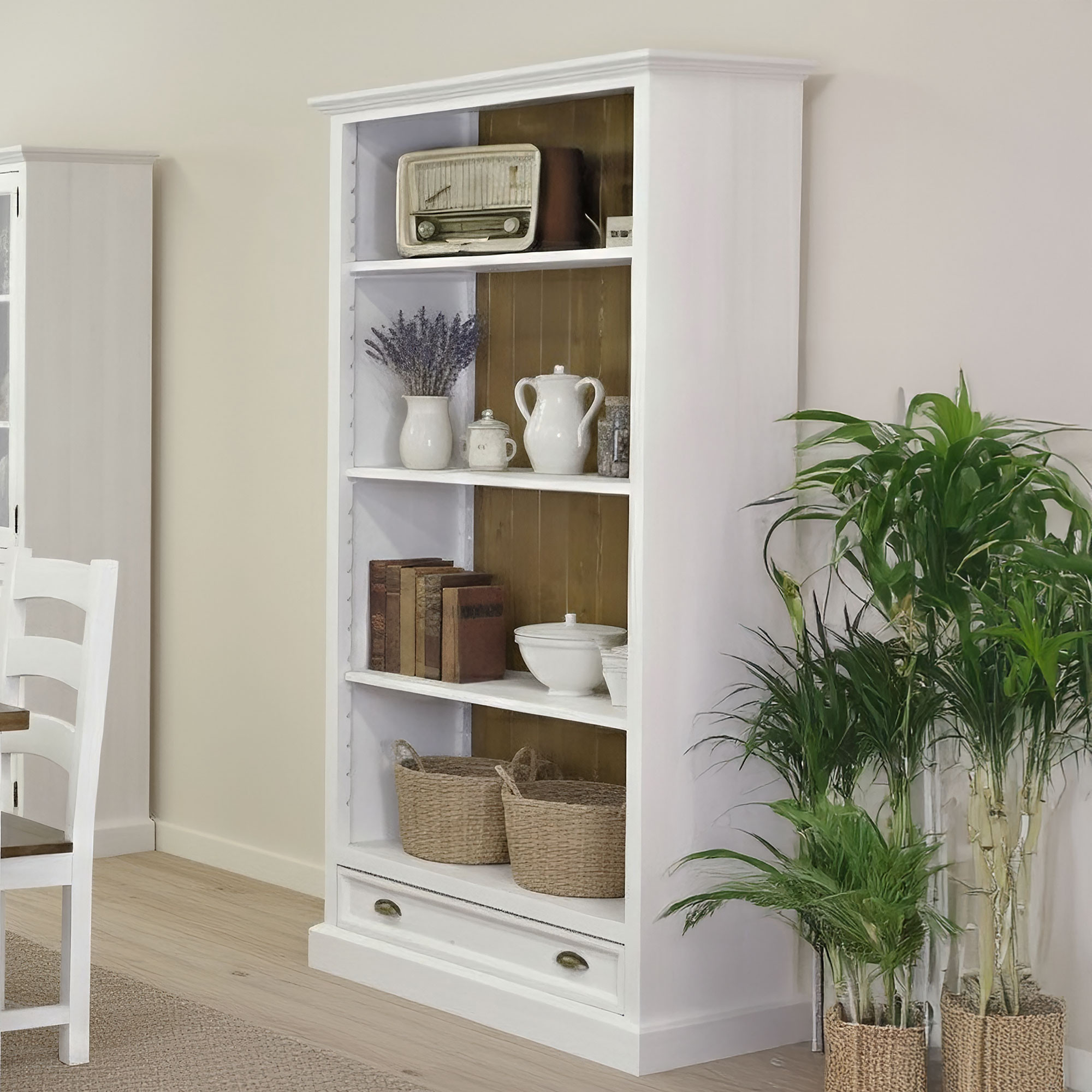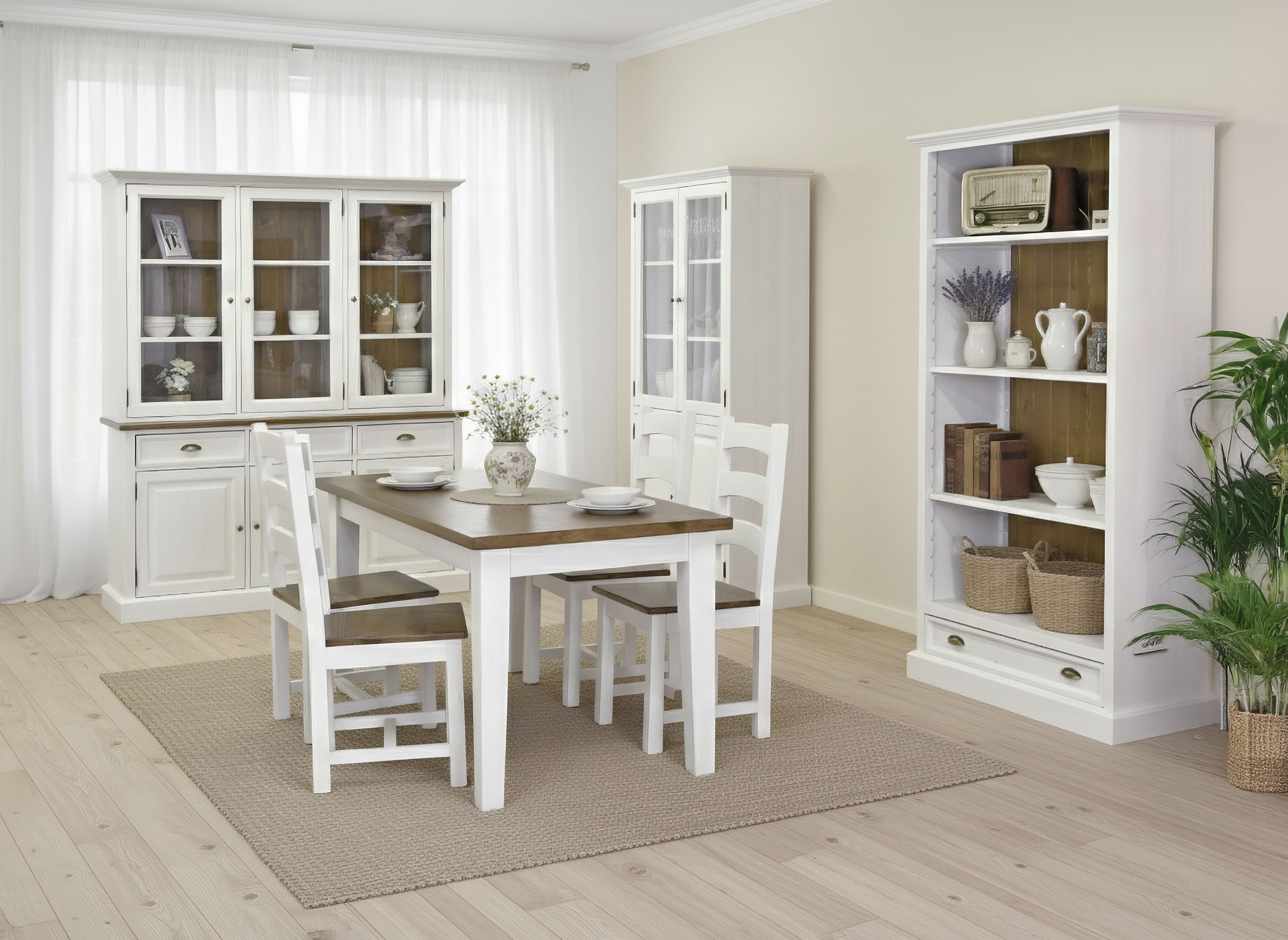 Fából készült polcos szekrény provence stílusban egy stílusos és praktikus bútordarab, amely a francia vidéki hangulatot varázsolja az otthonába. Készül 100% tömör fenyőfából, ami biztosítja a szilárdságot, stabilitást és hosszú élettartamot. A polc fehér részei környezetbarát, egészségre nem ártalmas festékkel vannak festve, míg a barna felületeket minőségi lakkal kezelték, amely védi a felületet és kiemeli a fa természetes erezetét. A polc három, magasságban állítható polccal van felszerelve, így könnyen az Ön igényeihez igazítható. Teljesen összeszerelve szállítjuk, azonnal használatra kész.