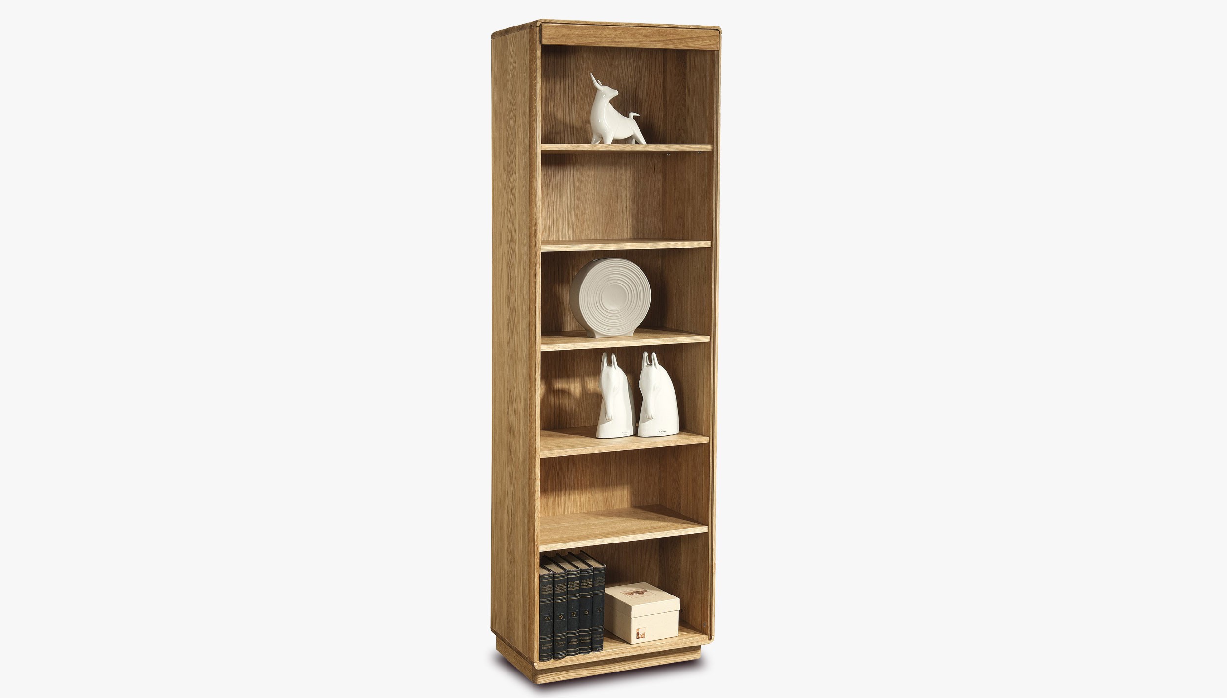 Igazán luxusos bútordarab, amely elegáns kialakításának köszönhetően szinte bárhová könnyen illeszthető. A dolgozószobában könyvtárként szolgálhat kézikönyvek és mappák számára, a nappaliban pedig polcait használhatja az utazásai során gyűjtött szuvenírek kiállítására. Öt polc osztja a regál belső terét hat különálló szektorra.