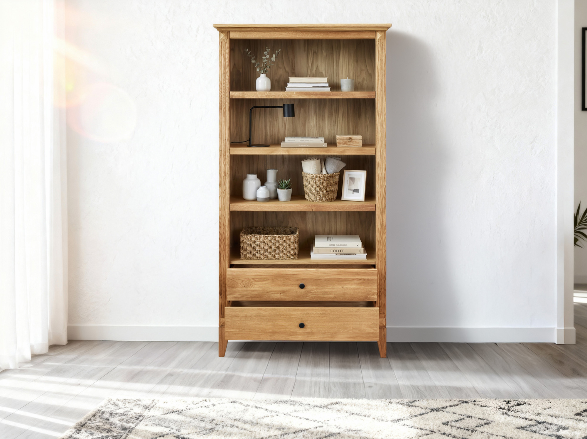 Tömör tölgyfa polcos szekrény fiókokkal, 100 cm, északi stílus