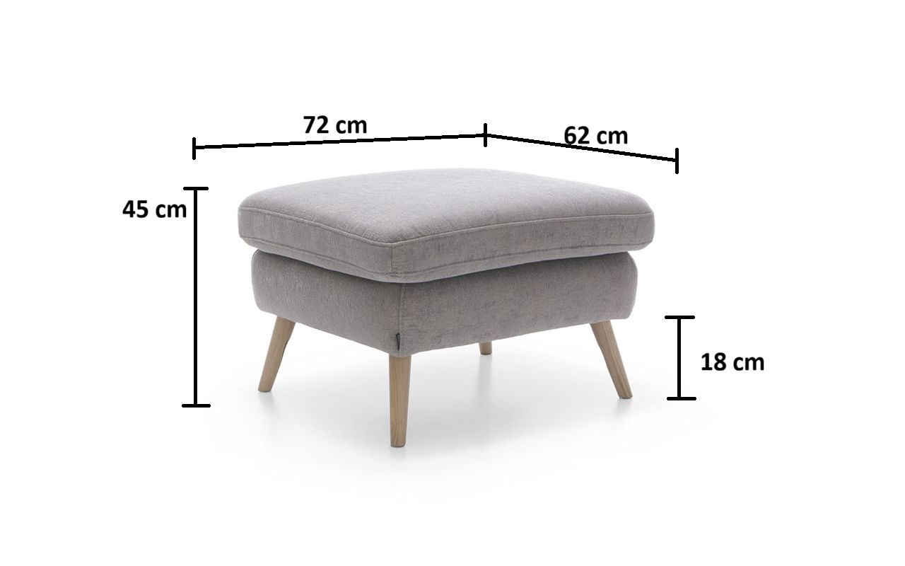 A kényelmet a magas rugalmasságú hab és hullámrugók kombinációja biztosítja, amelyek hosszú élettartamot és kényelmes használatot garantálnak mindennapokra. Stabil szerkezete és precíz kidolgozása biztosítja a szilárdságot és tartósságot. A stílusos tömör tölgyfa lábak hangsúlyozzák a retro megjelenést és könnyedséget kölcsönöznek a lábtartónak. A méretei kb. 72 × 62 × 45 cm (szélesség × mélység × magasság) kompakt, mégis kényelmes megoldást jelentenek a modern otthonba. A lábtartó kombinálható a Kelso fotellel, valamint a két-, háromszemélyes és sarok változatokkal a sorozatból.