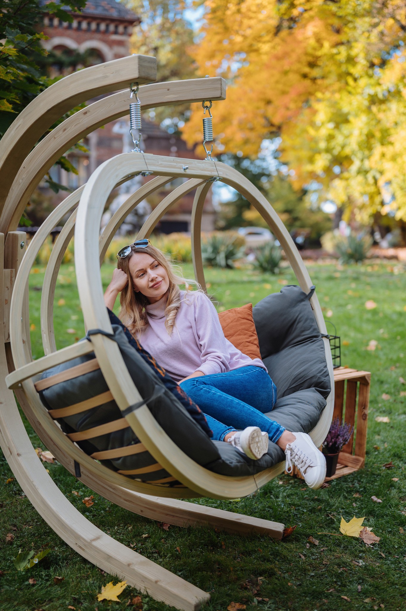 Ez a fa állvány kényelmes és biztonságos felfüggesztést biztosít a szék számára bármilyen környezetben, legyen az kert vagy terasz. Természetes kinézete, egyszerű összeszerelése és időjárásállósága révén ideális választás, ha a funkcionalitást és az esztétikát szeretné ötvözni. A hosszabb élettartam érdekében elegendő rendszeresen megújítani az impregnálást, így egész évben gondtalan pihenést élvezhet.