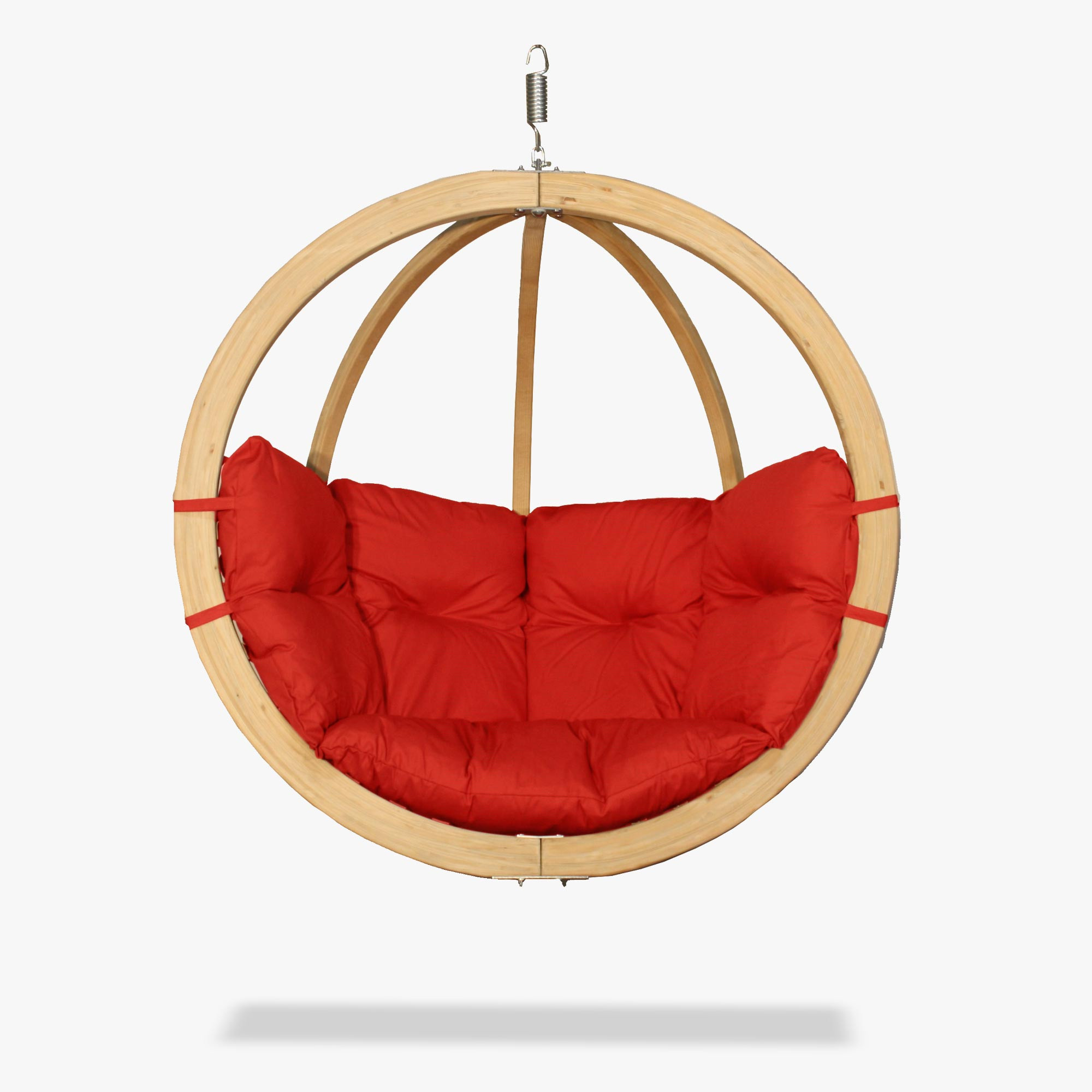 Piros függő hintaszék tartós lucfenyő vázzal, kétszemélyes