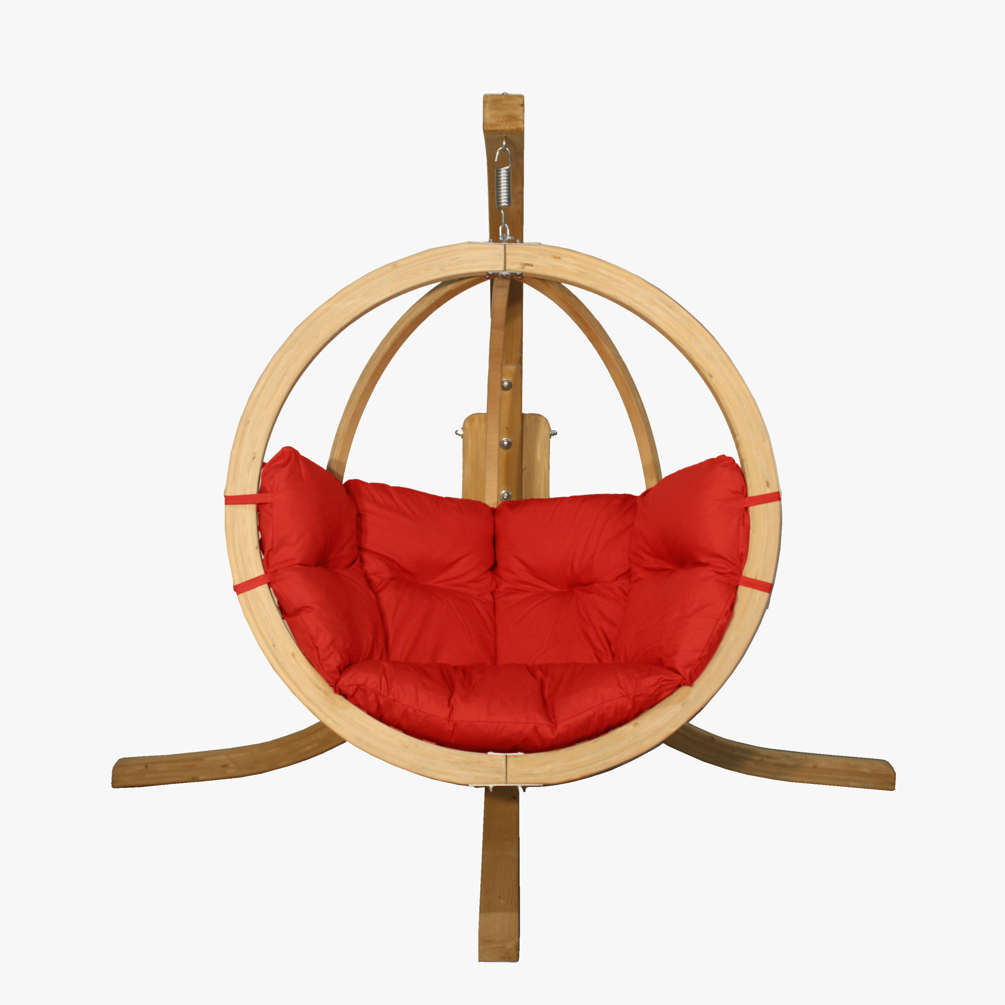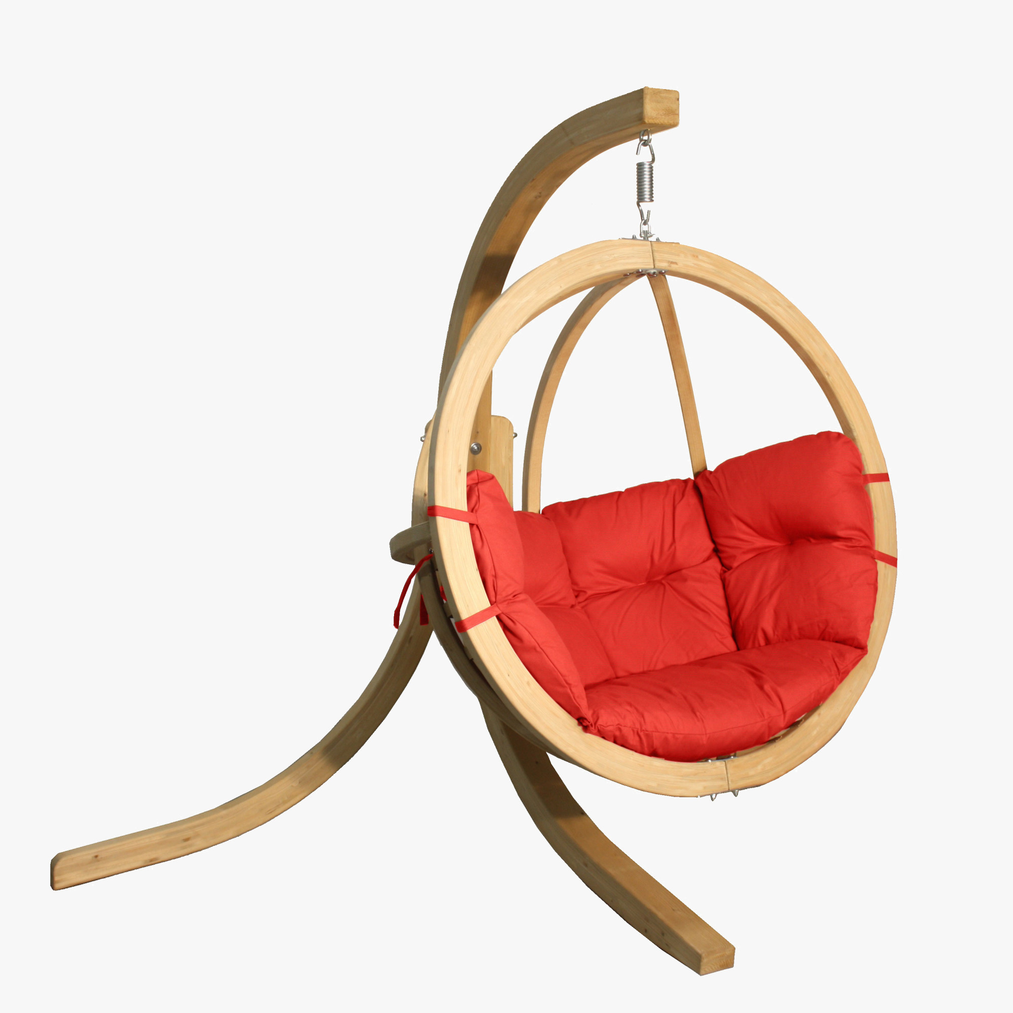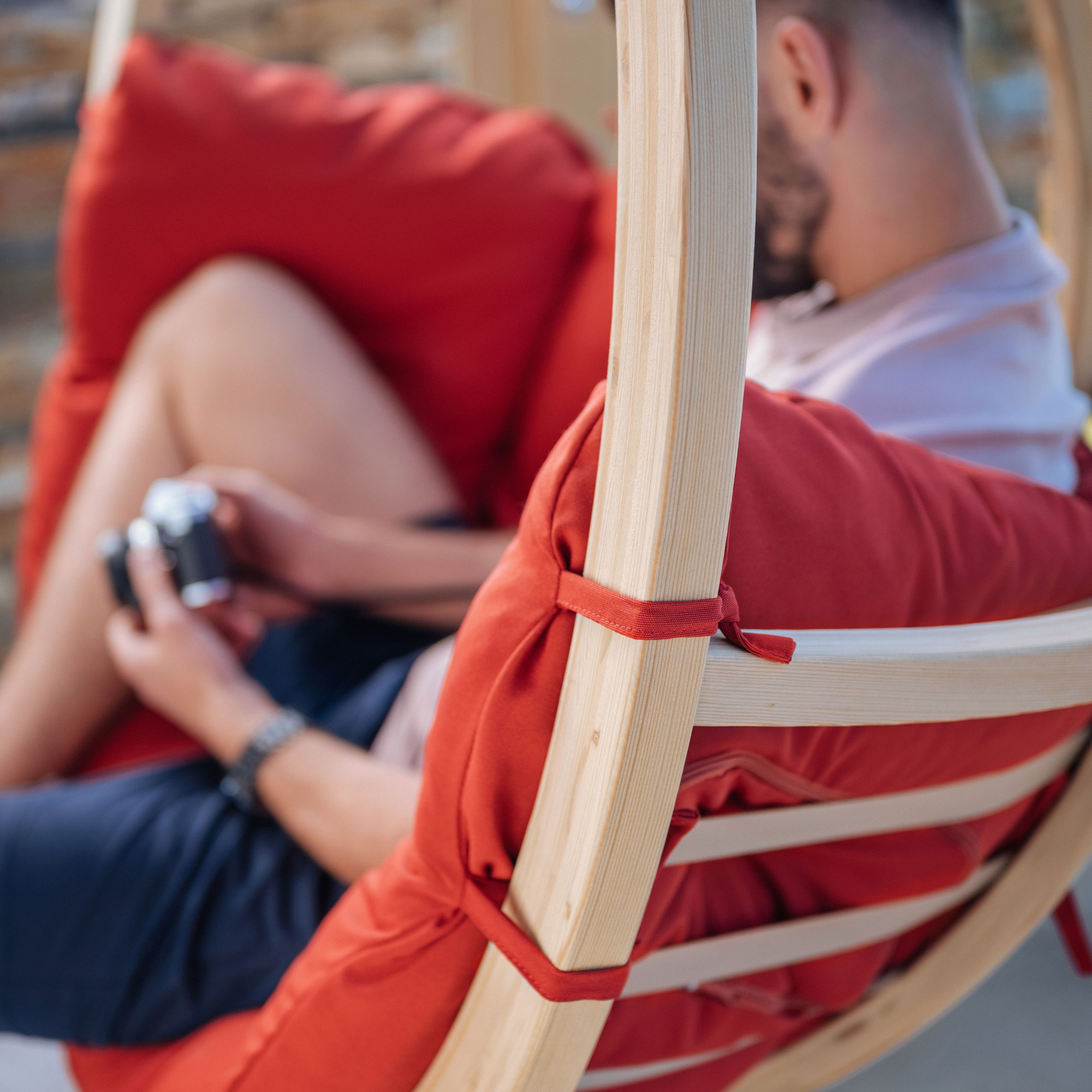 Piros lengőfotel fenyőfa szerkezettel, kültéri és beltéri használatra