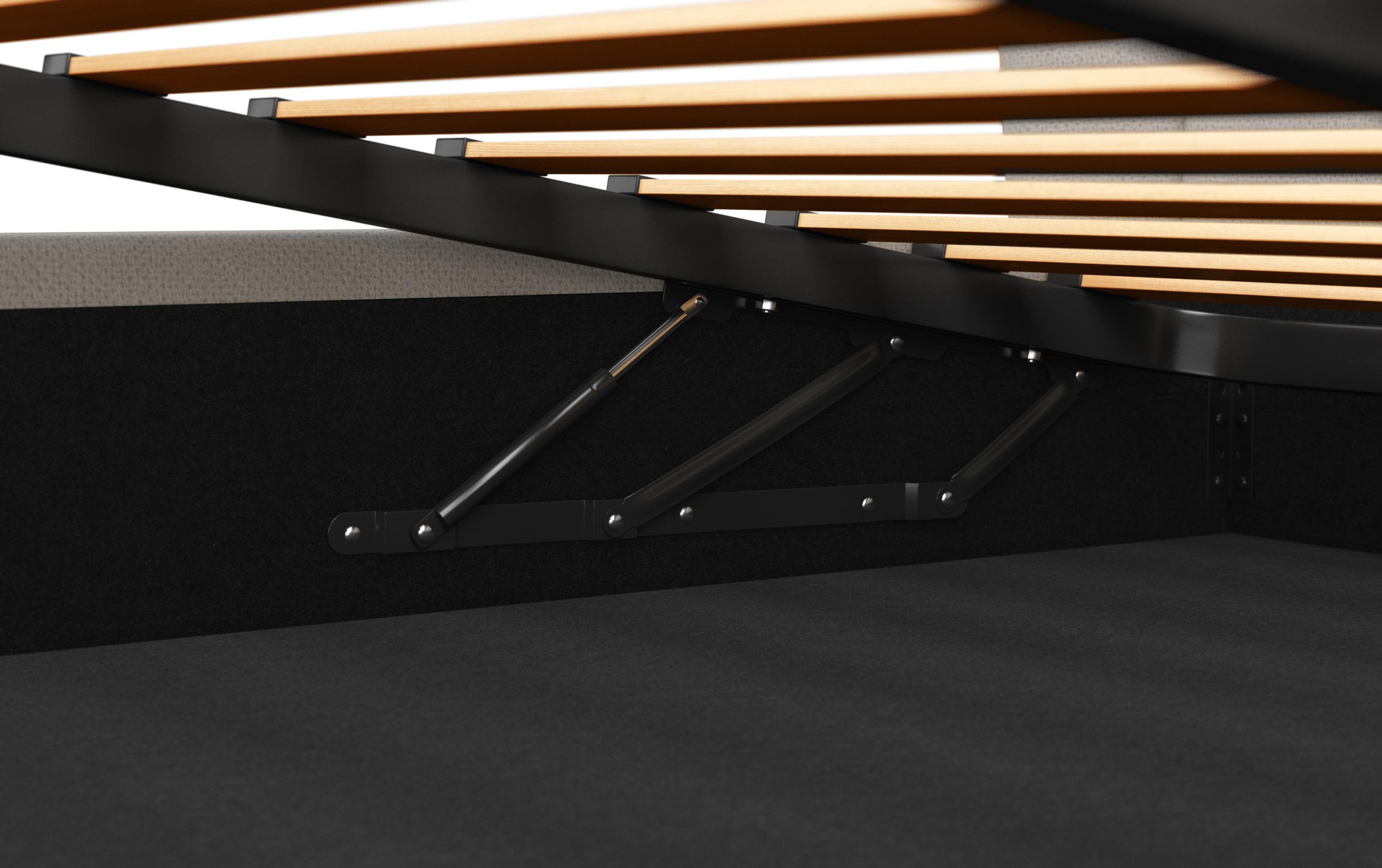 Az összes teherhordó belső szerkezeti rész tömör fából készült. A tárolóhely alja MDF-ből készült, fehér színben. A 1S CAMPSBAY anyag finoman szőtt kárpitanyag modern megjelenéssel és vízlepergető kezeléssel. 100% poliészterből készült, ami nagy kopásállóságot és könnyű karbantartást biztosít. Kiváló kopásállósággal bír akár 100 000 ciklusig és jó fény- és súrlódásállósággal rendelkezik. Tulajdonságainak köszönhetően alkalmas mindennapi otthoni használatra, valamint intenzívebb igénybevételre is.