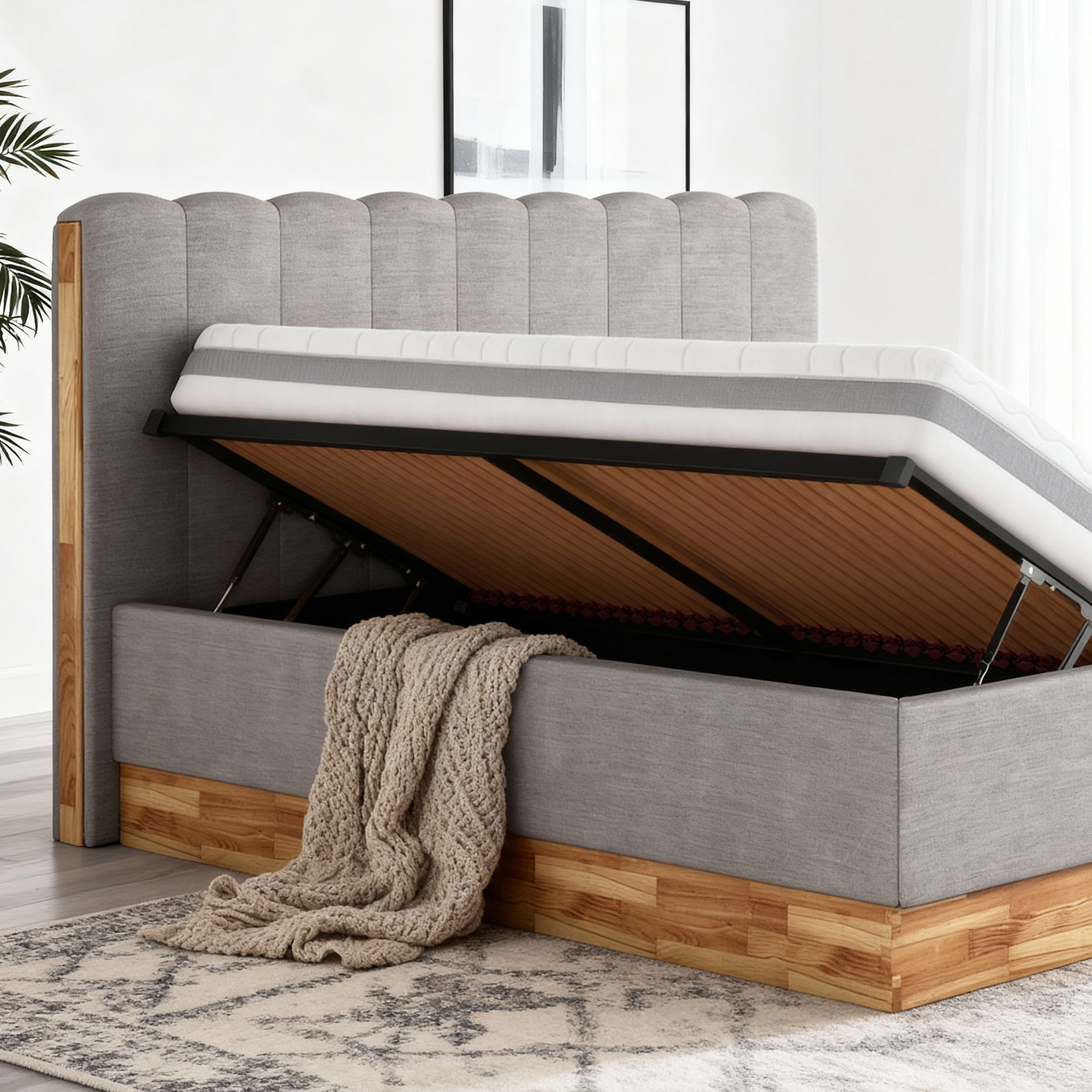 - Tágas tárolóhely a lamellás ágyrács alatt
