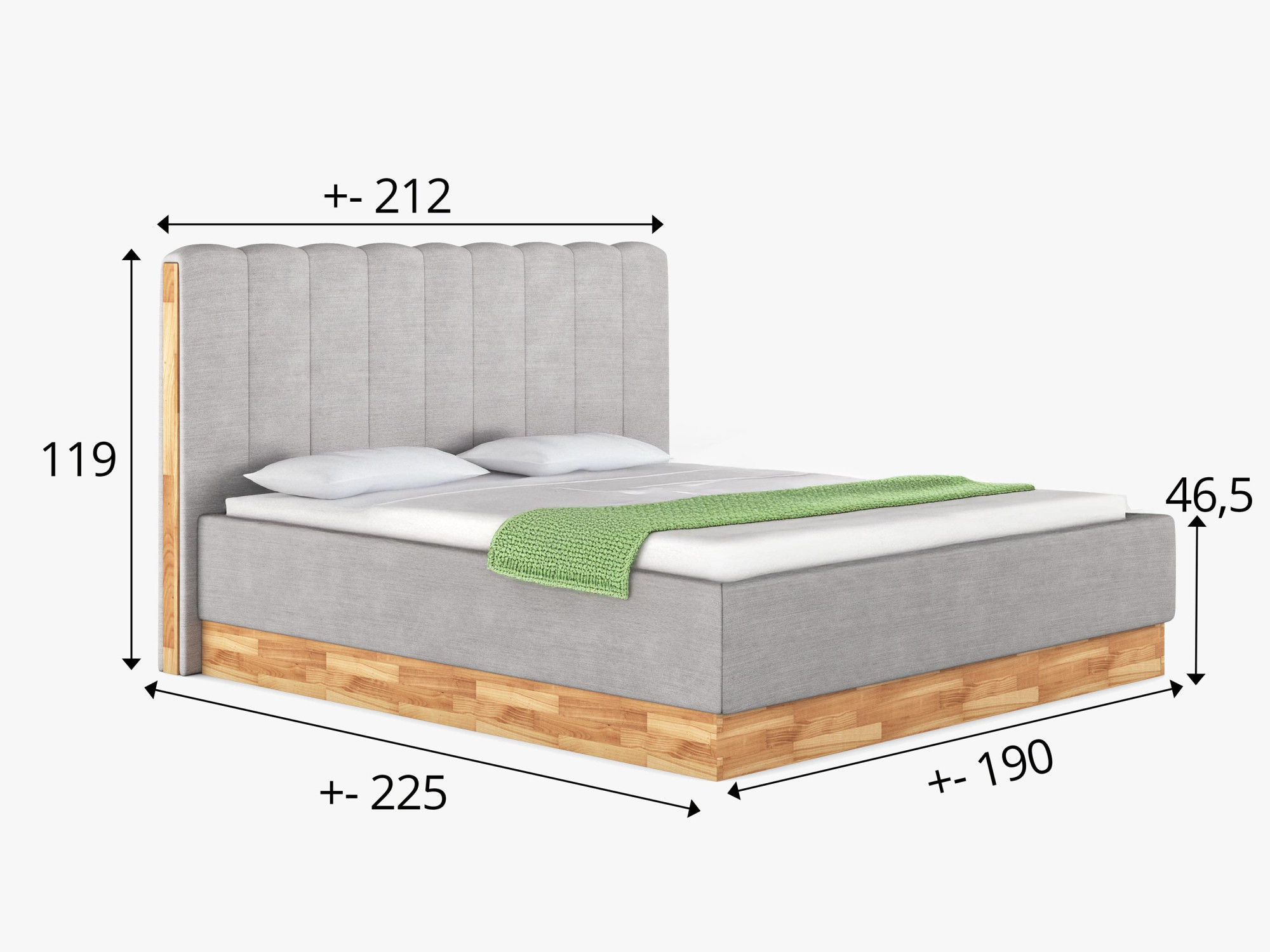 - Fekvőfelület magassága: Přibližně 40 cm (v závislosti na výšce matrace)