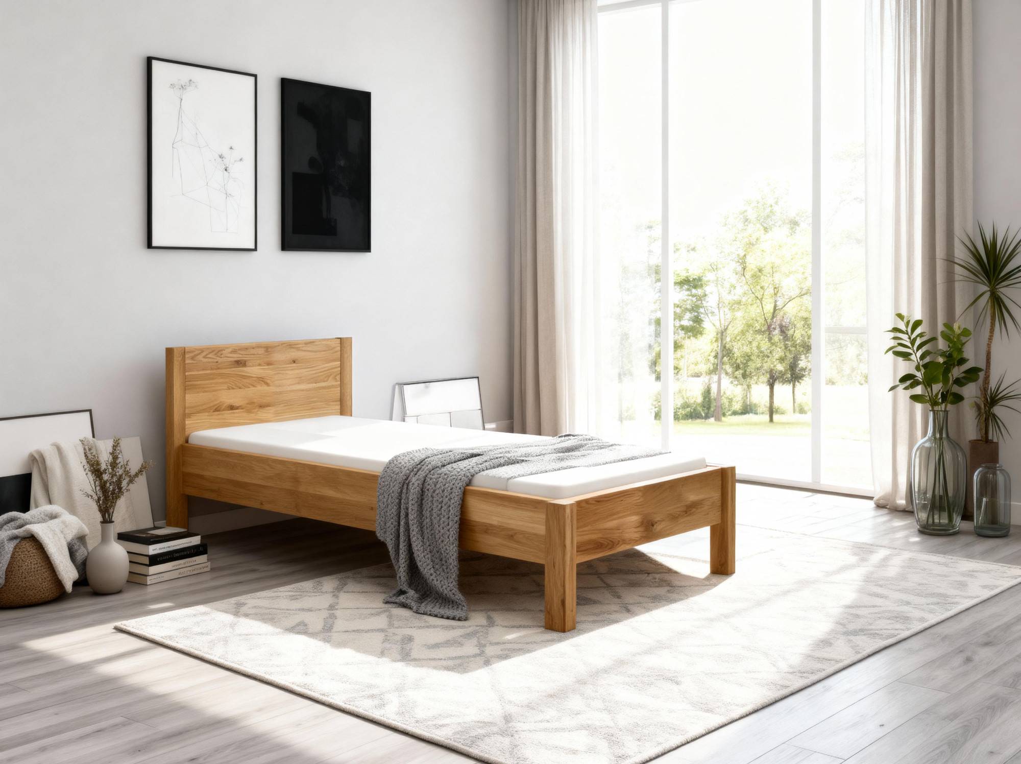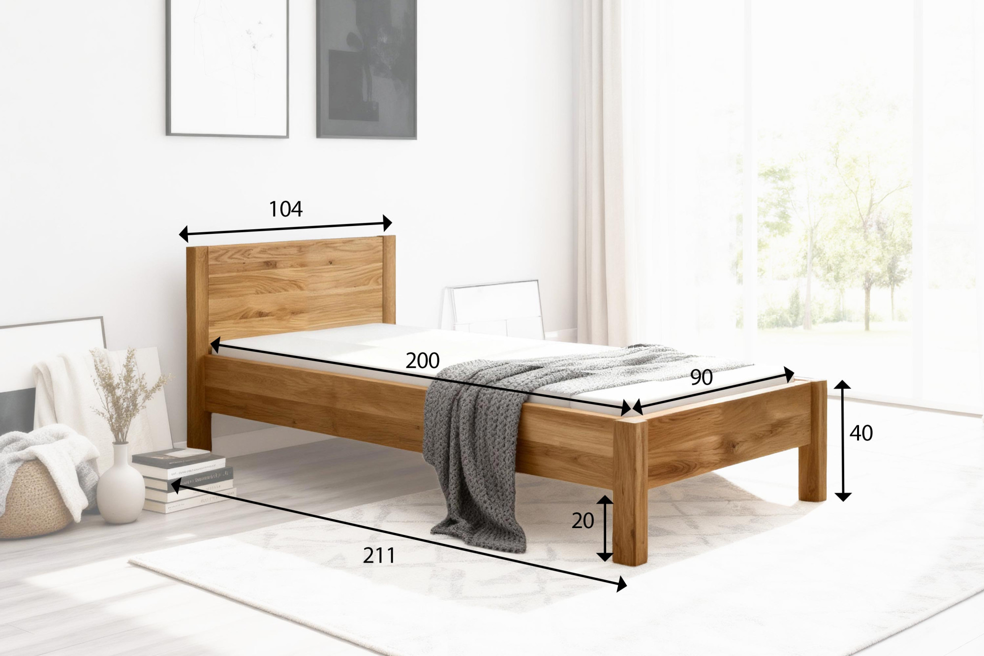 Masivní dubová jednolůžková postel 90x200 cm, přírodní dřevo