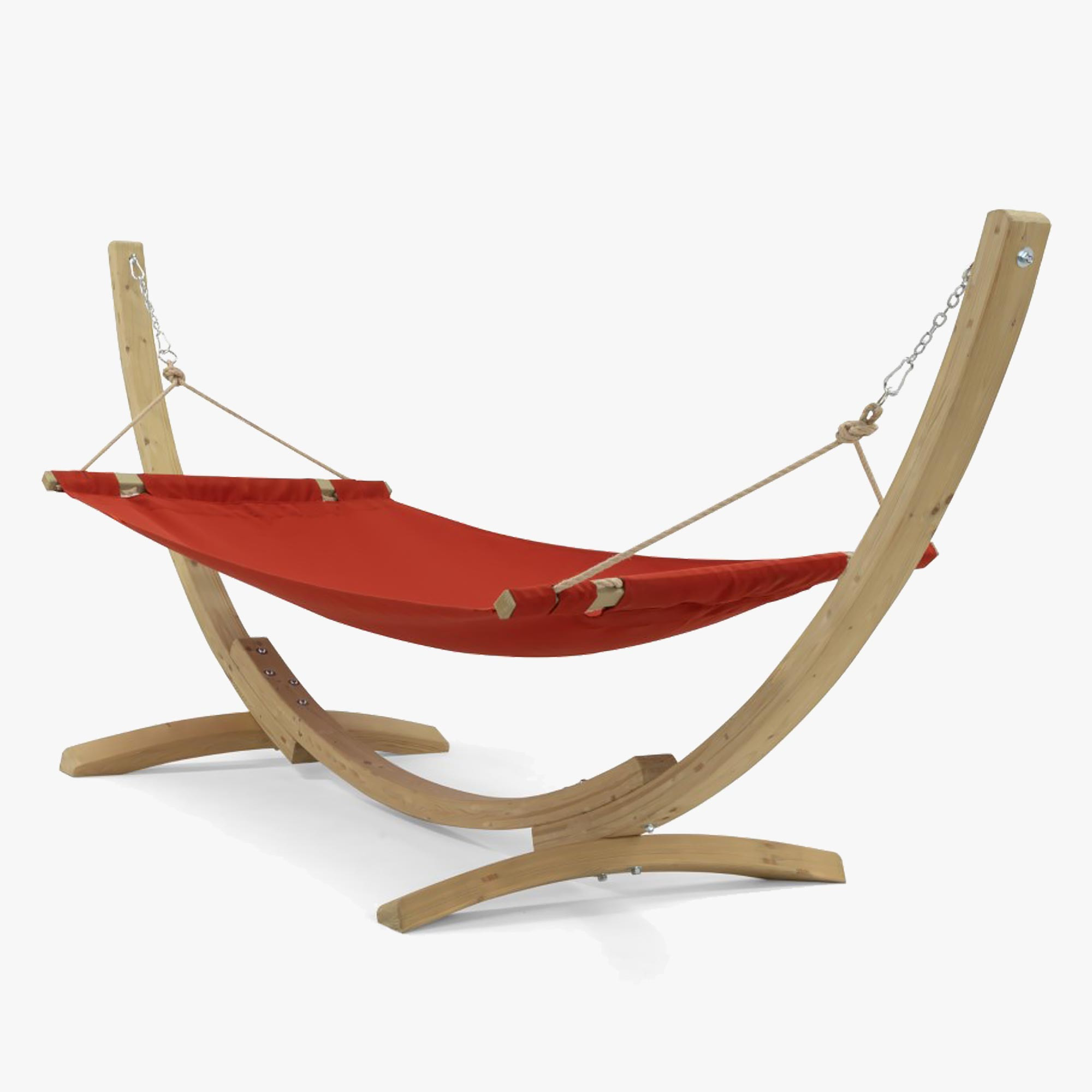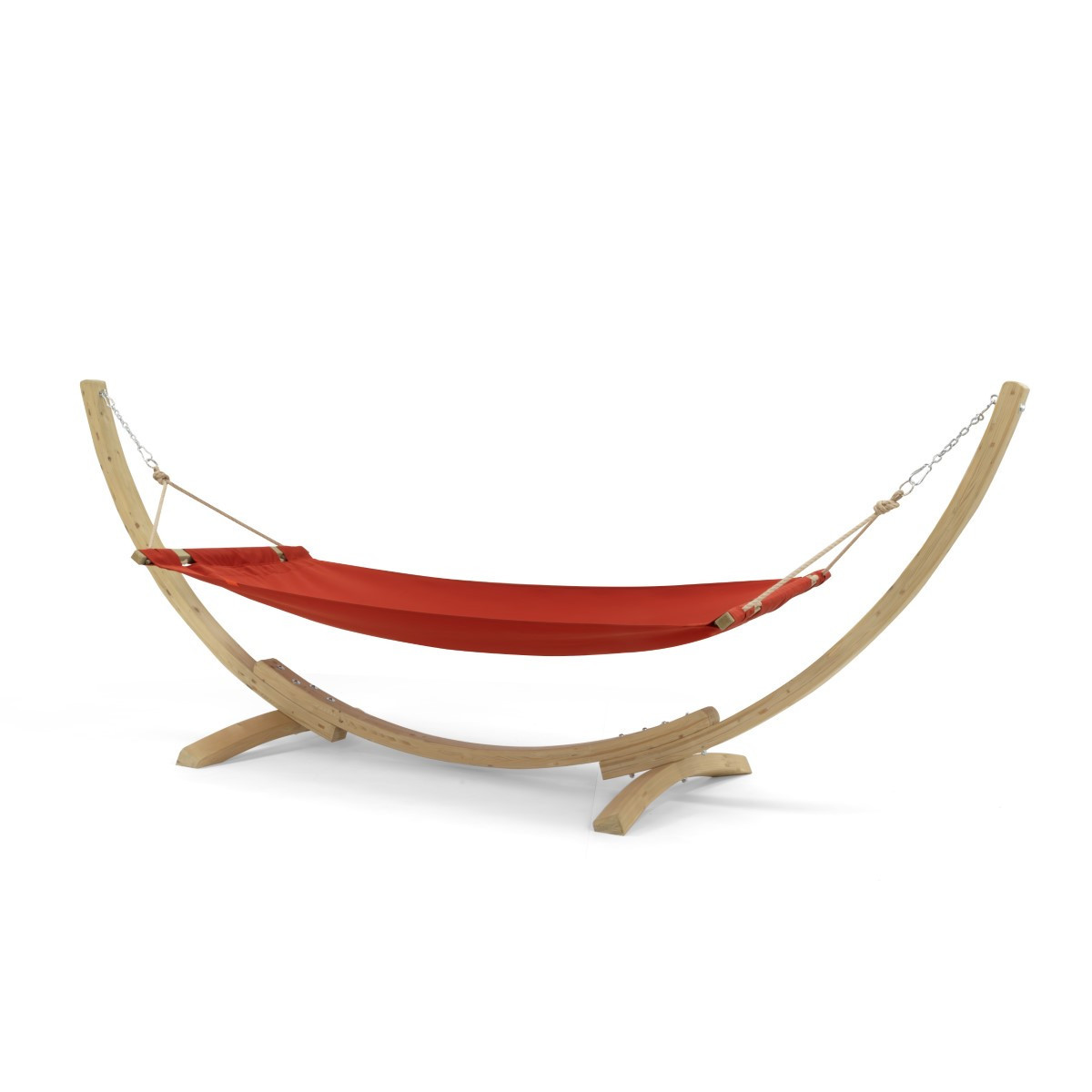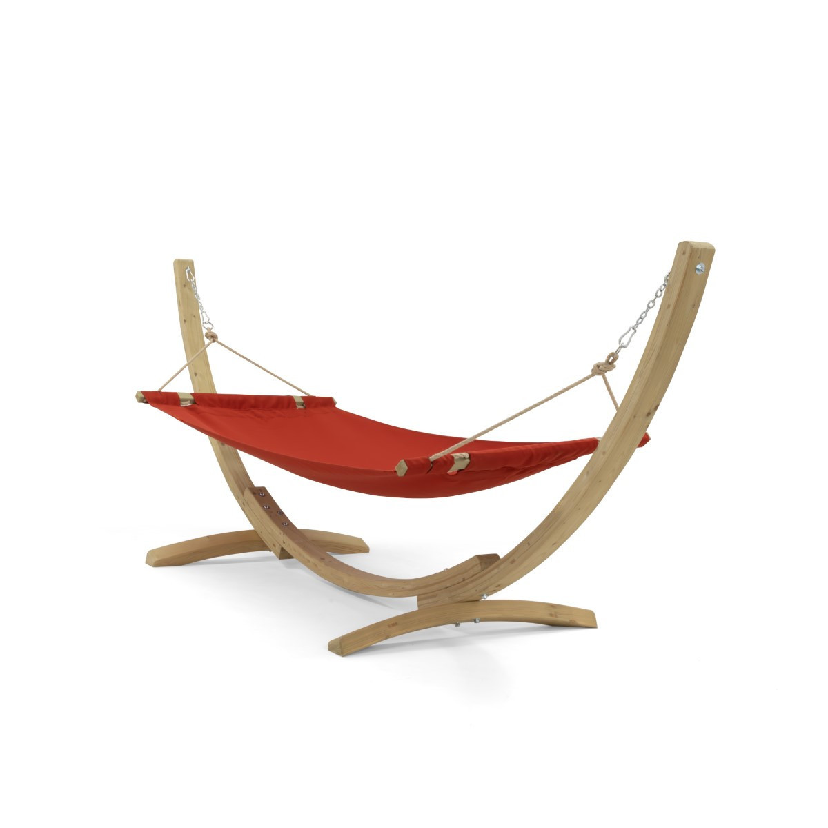 - Magas minőségű anyagok: állvány rétegezett, impregnálással kezelt lucfenyőből és függőágy tartós poliészterből