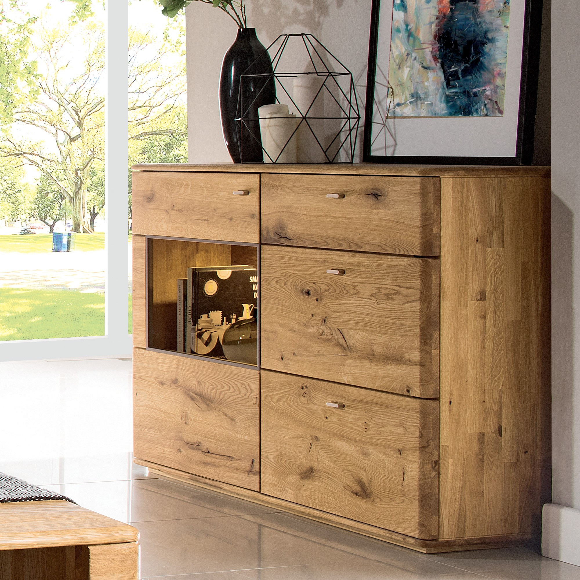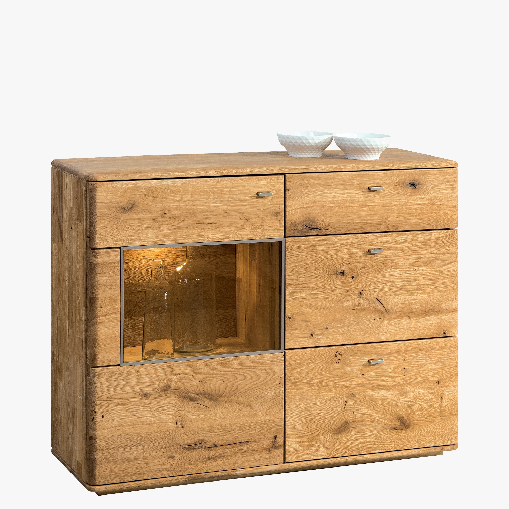 Alacsony komód egy üvegezett résszel tölgyből, TYP 44 Texas tölgy natúr