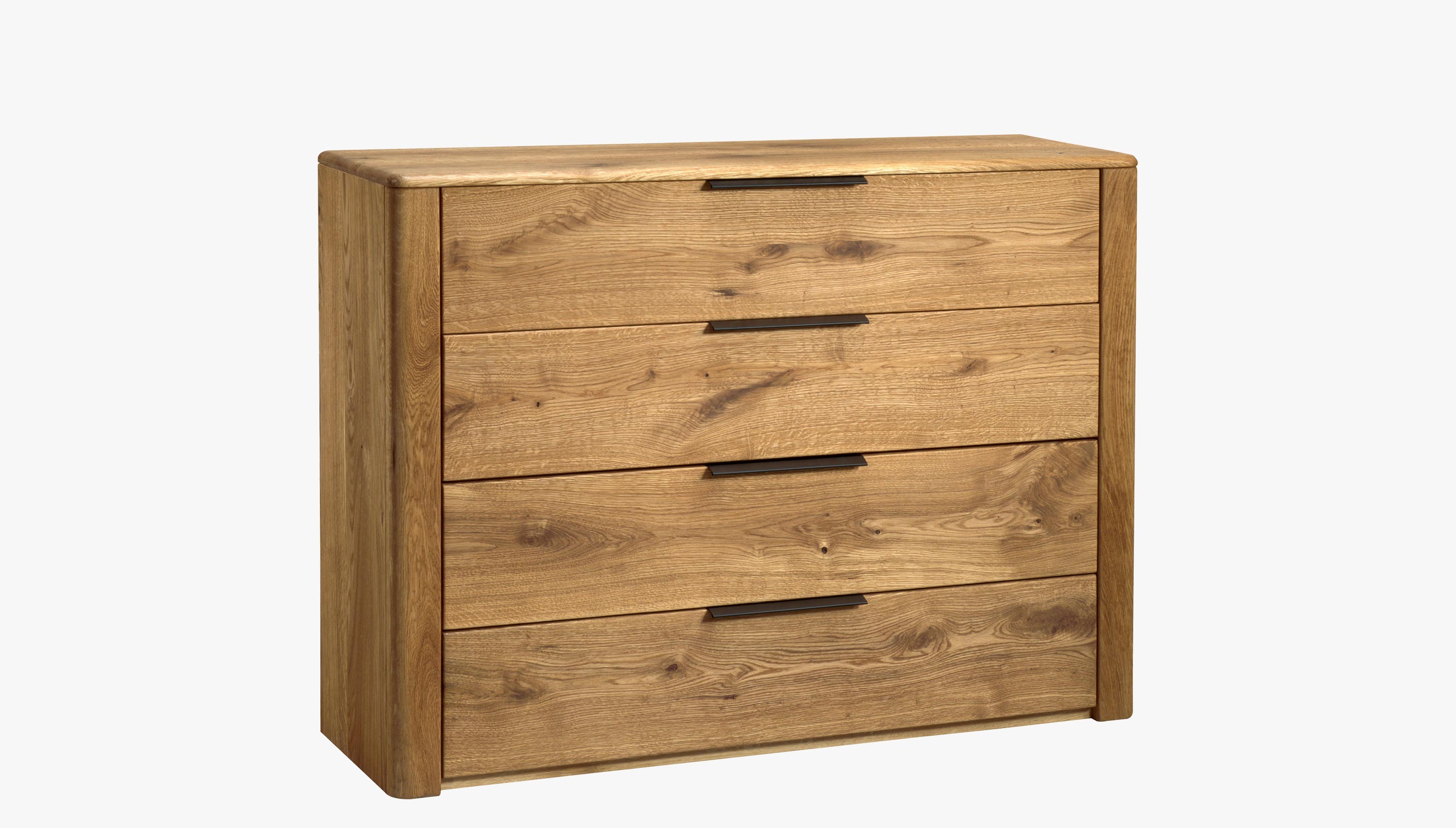 Tömör tölgyfa 4 fiókos komód, soft-close, természetes olajozott