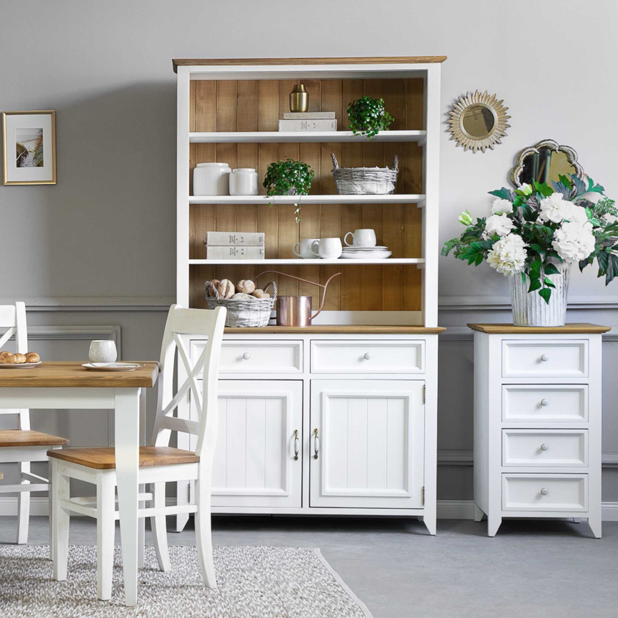 Természetes komód provence stílusban fehér-barna színkombinációban, tiszta fenyőfából készítve. A komód vonzó megjelenése a francia vidéket idézi. A komód alkalmas hálószobába, dolgozószobába és étkezőbe. A komód 4 fiókkal rendelkezik. A komód szerelve, kész állapotban kerül szállításra. Bővítse belső terét ezzel a vonzó darabbal, és élvezze nap mint nap a természetes bútor erejét. A természetes termék ökológiája és a csodás dizájn harmóniája azok a tulajdonságok, amelyeket a LILLE komód gyártása során egyesítettünk.
