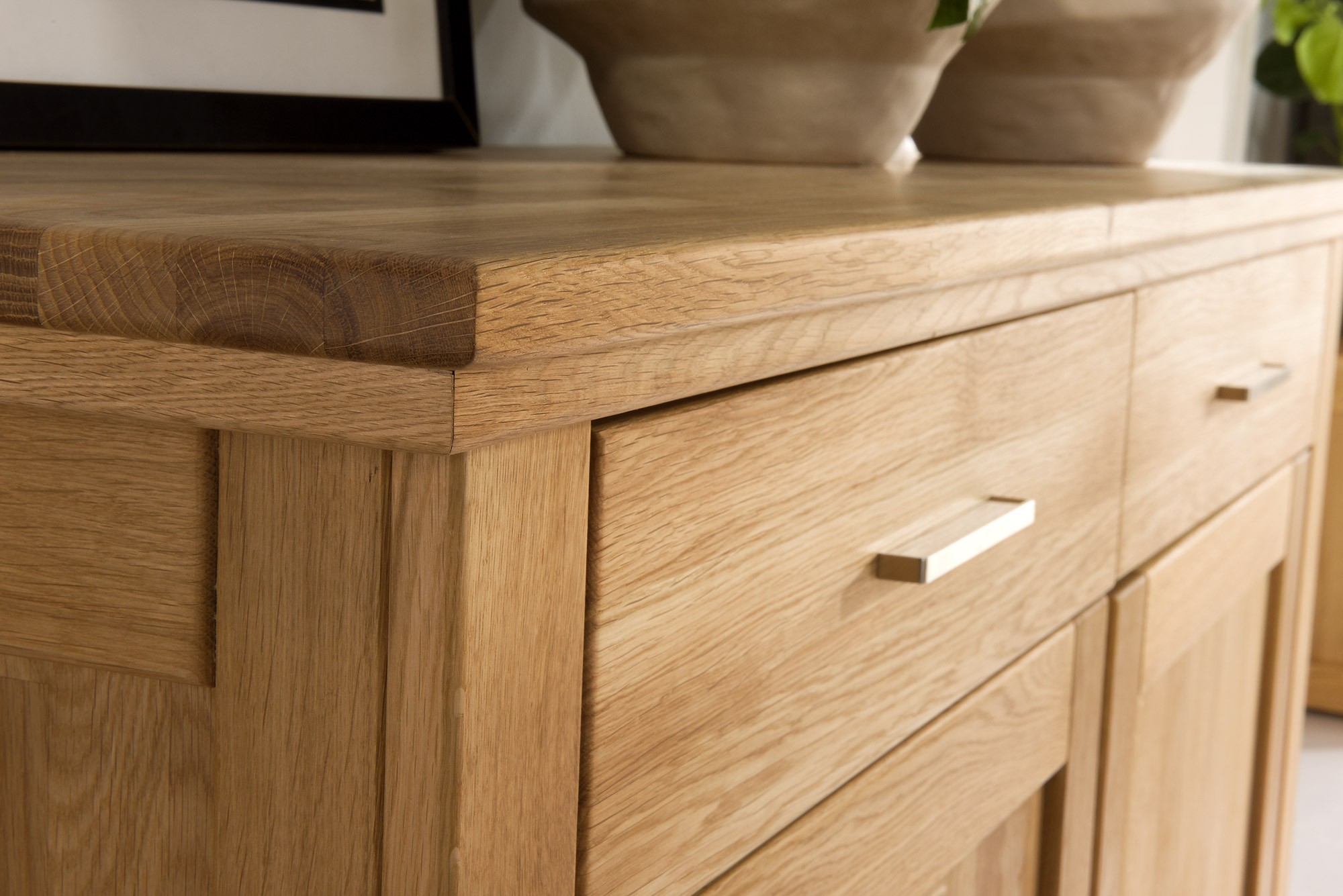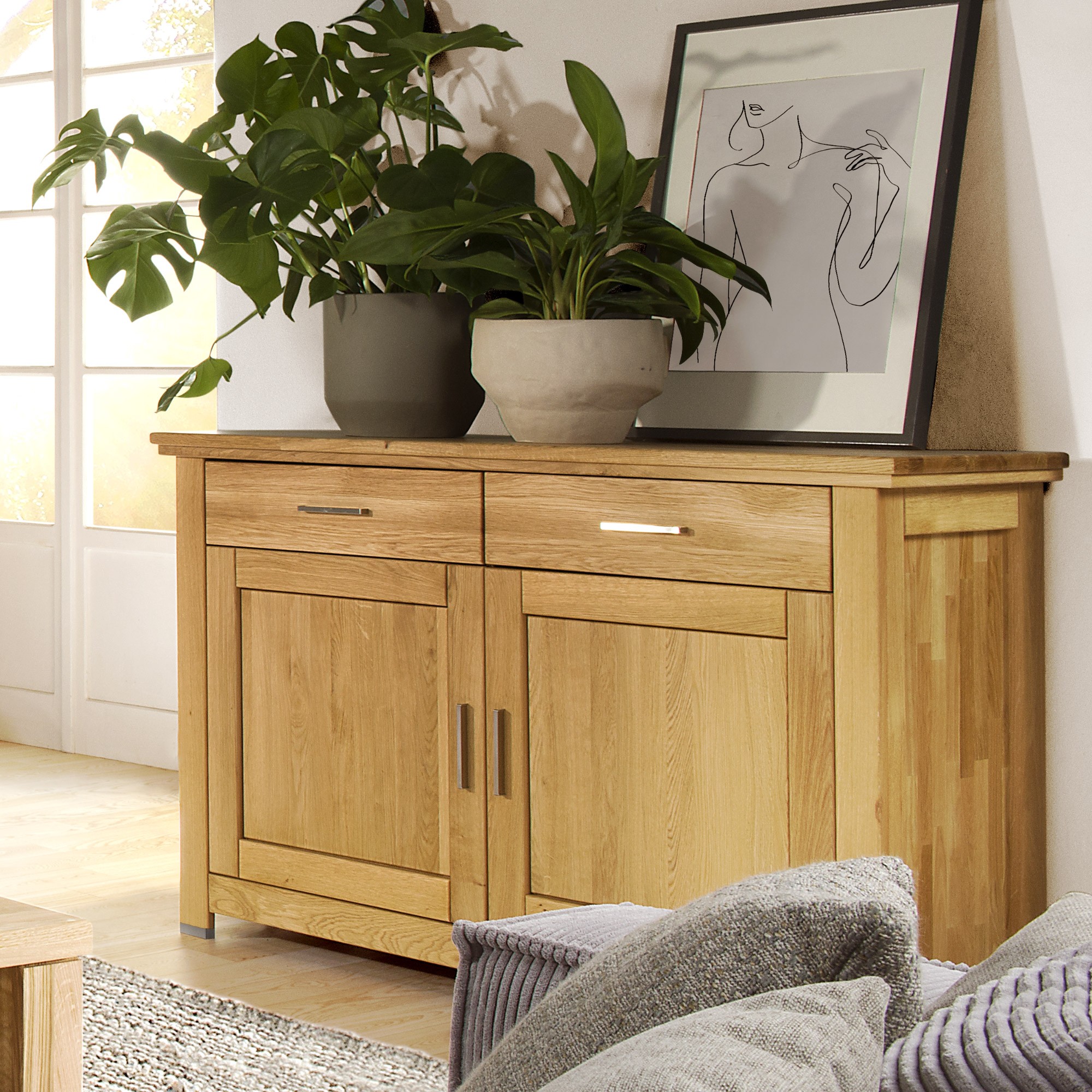 Tölgyfa komód ajtókkal és fiókokkal, természetes olajozott felület
