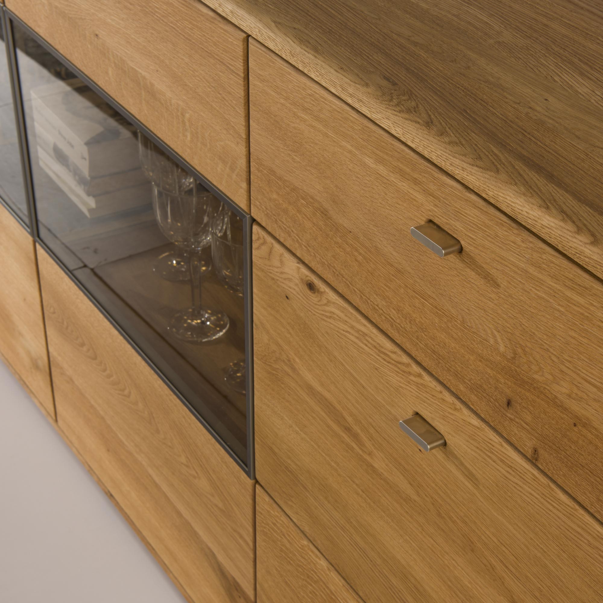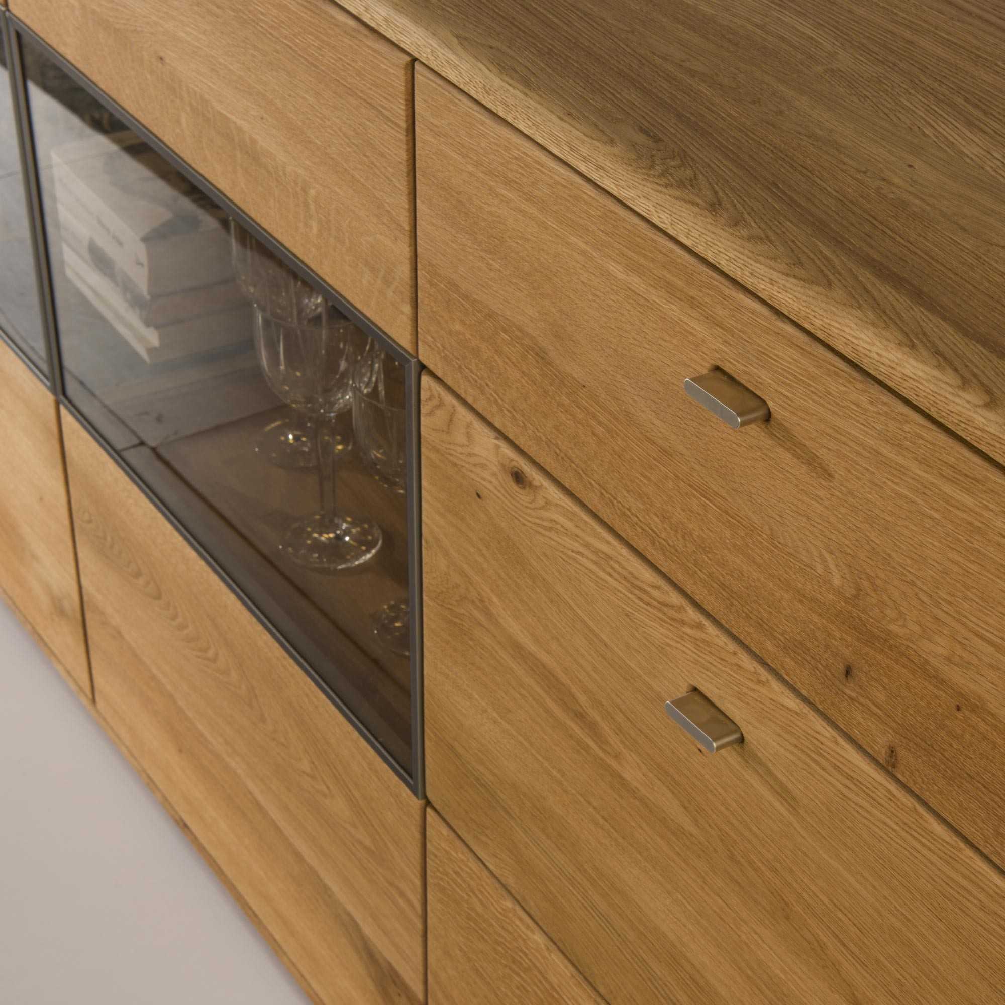 texas tölgyfa komód 3 fiókos 2 ajtós üveges természetes fa bútor