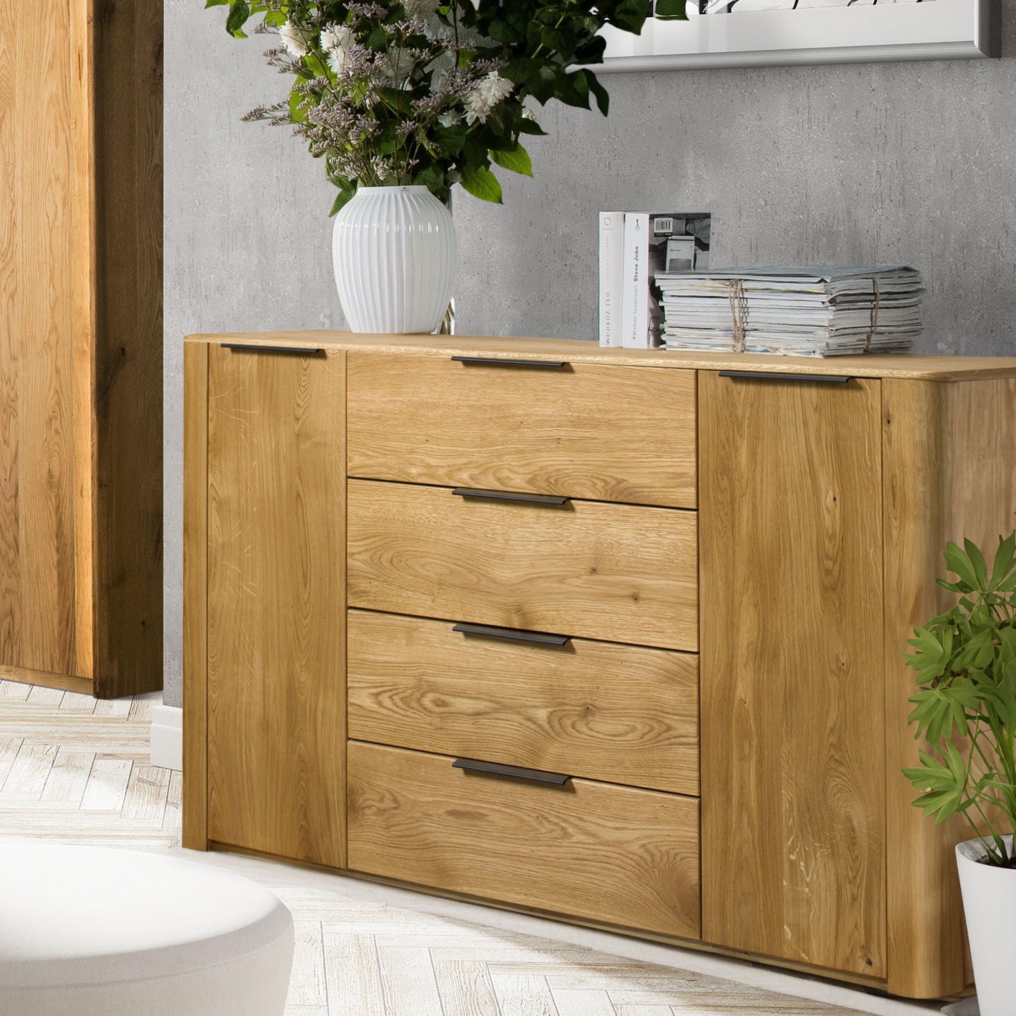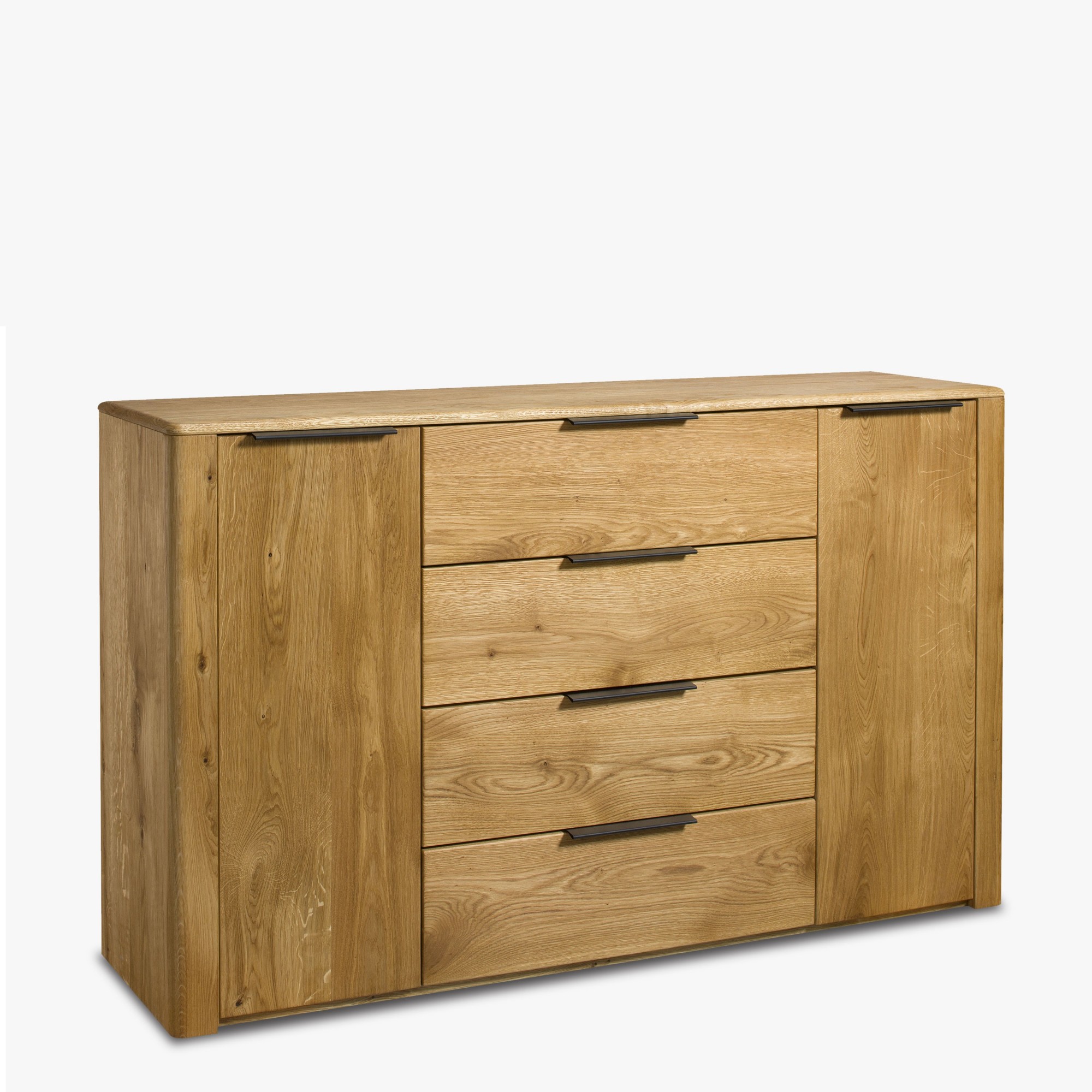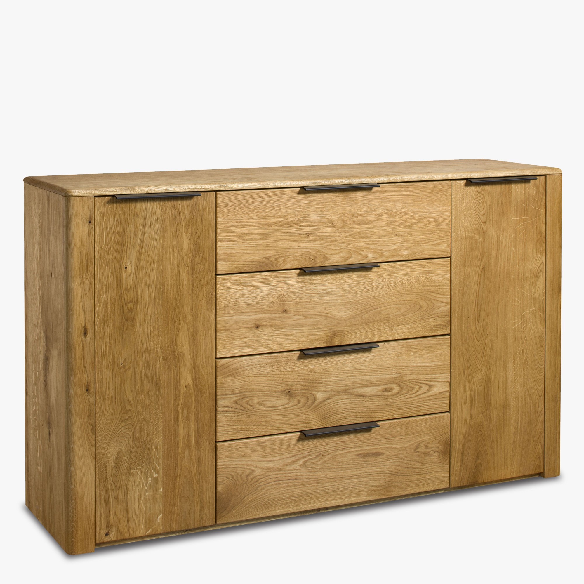 A komód négy fiókkal rendelkezik soft-close csendes záródással, amely gondtalan és halk használatot biztosít. A komód mindkét oldalán két ajtót talál, amelyek mögött két-két polc rejtőzik további tárolóhely számára. Ami még vonzóbbá teszi ezt a komódot, hogy lehetőség van az egész belső teret a Texas sorozat egységes stílusában berendezni. Vigye hálószobájába a természetes fa báját és a kézműves tökéletességet ezzel a tölgy komóddal.
