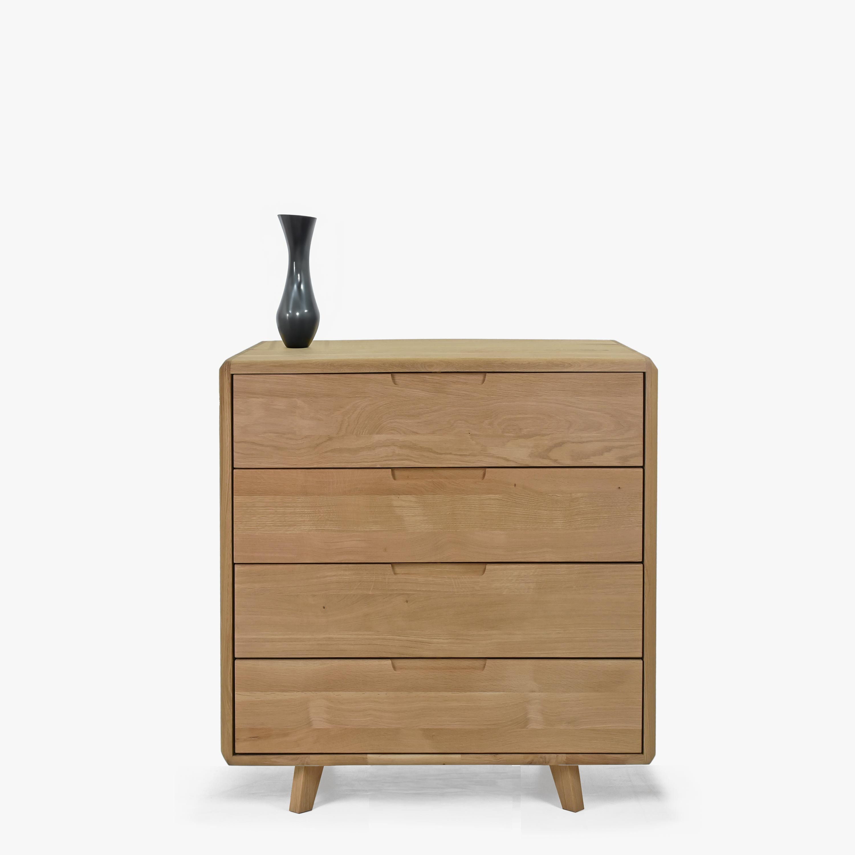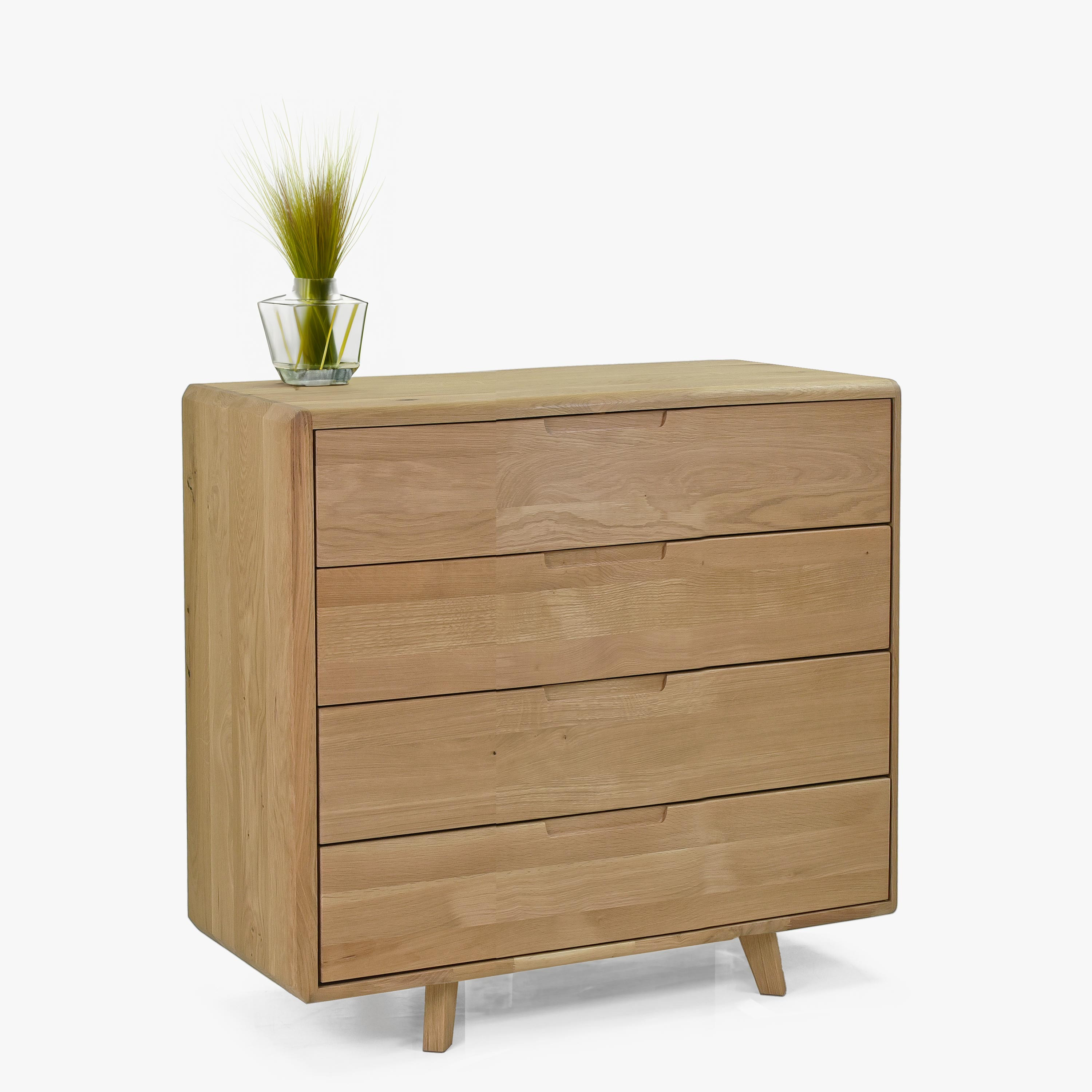 Tömör tölgyfa fehér komód 4 fiókkal, skandináv design, 90x90 cm