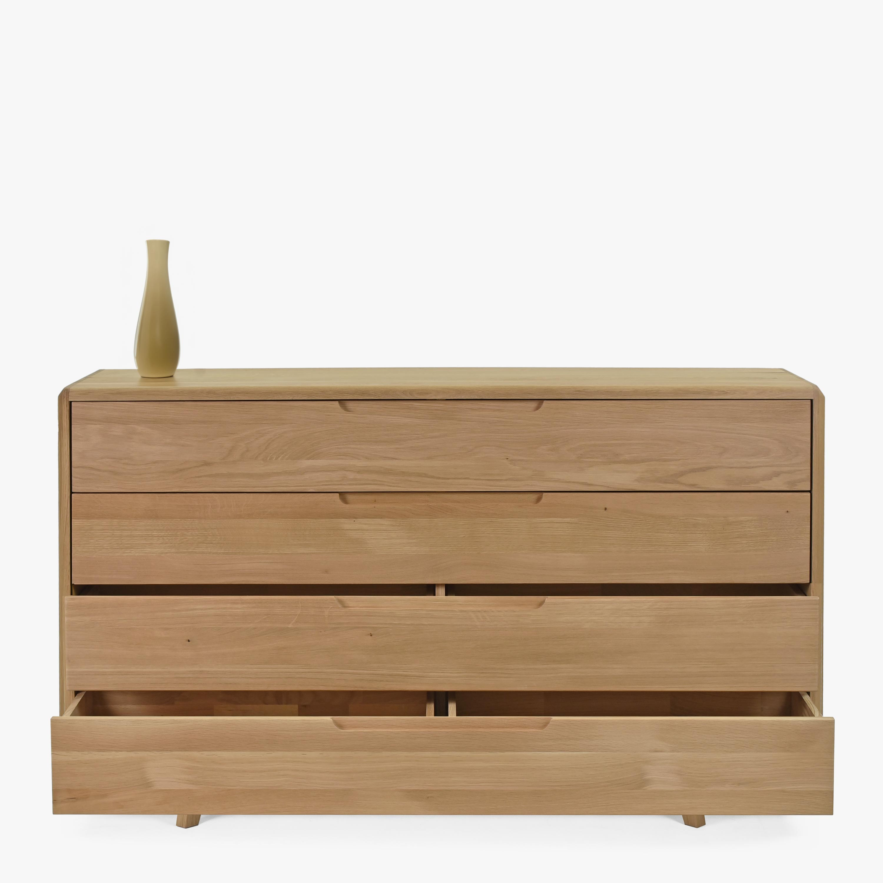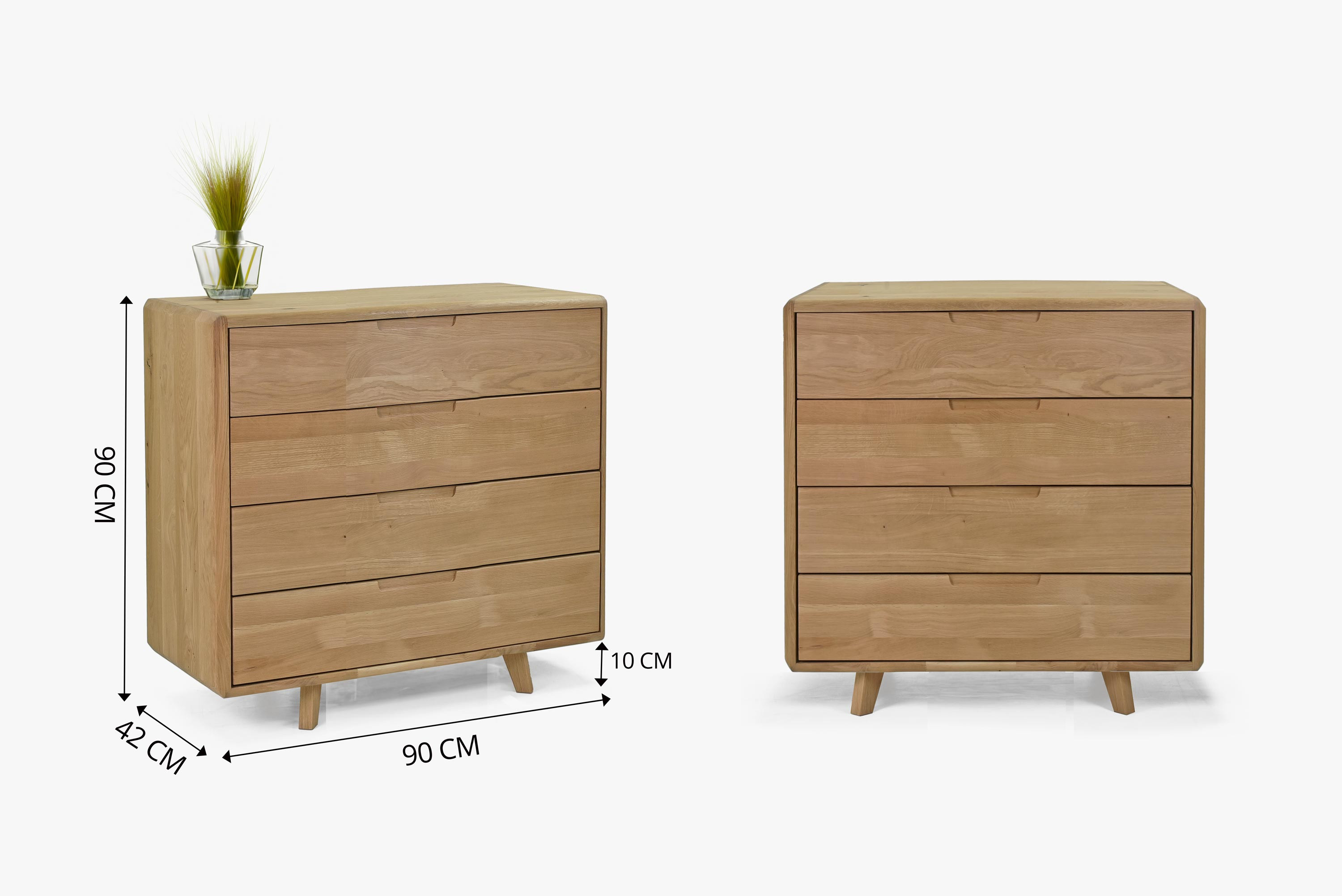 Első pillantásra a komód négy fióksorával tűnik ki, amelyek bőséges tárolóhelyet kínálnak a szükséges tárgyak számára. Minden fiók lassan záródó mechanizmussal van ellátva a csendesebb és kényelmesebb használat érdekében. 90 cm szélességével a komód ideális választás hálószobába, de jól illik a nappaliba vagy az előszobába is.