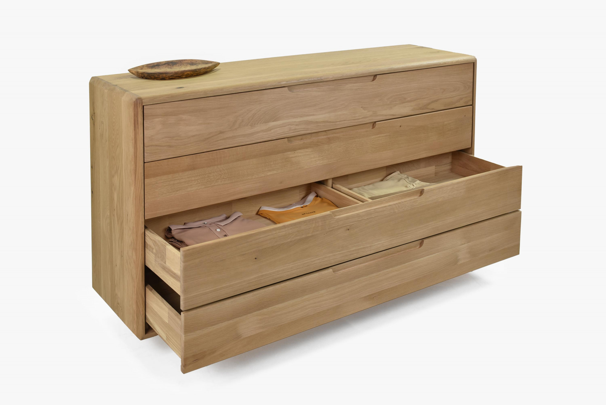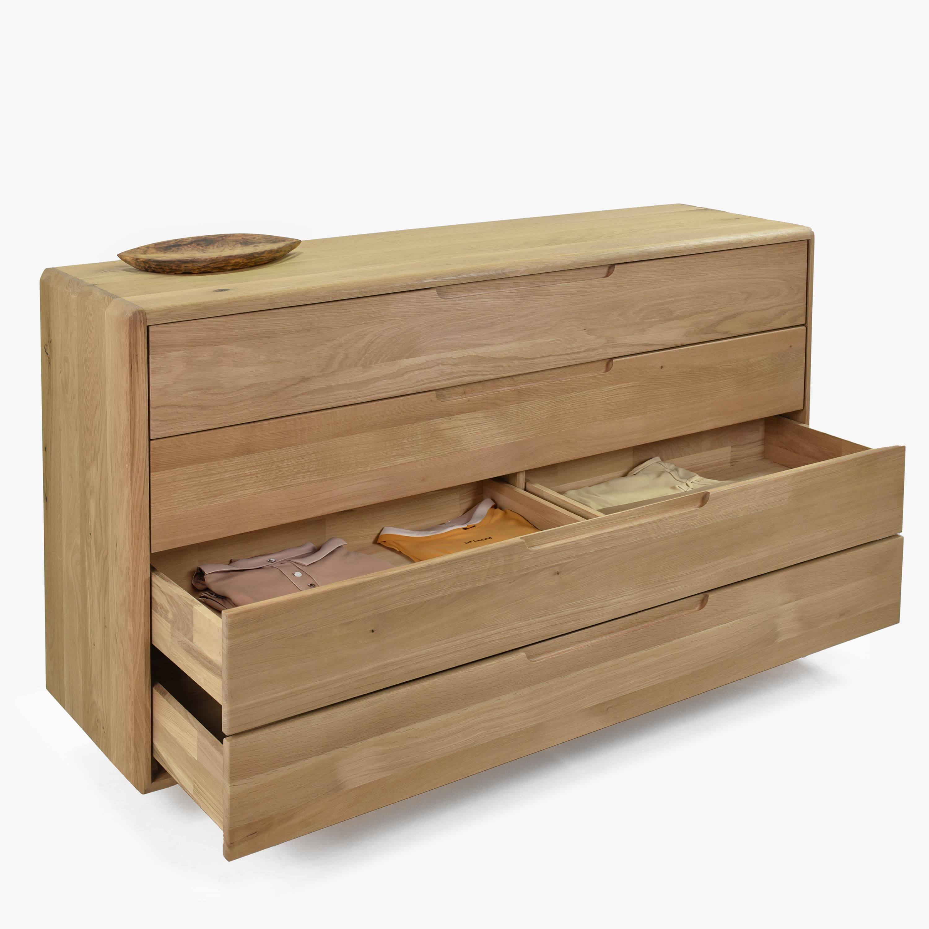 Új 2024-es Tölgybútor Kollekció: Fedezze fel a modern skandináv dizájn szépségét exkluzív kollekciónkban, bemutatva 2024-ben. Ez a egyedi kollekció a minimalista stílus és a kizárólag természetes anyagok használatának eredménye. Minden bútordarab tiszta tölgyfából készül, beleértve az oldalakat, belső korpuszokat, tetejét, valamint az ajtókat és fiókokat. A részletekre és a minőségre fordított hangsúly a lekerekített élektől a külső korpusz akár 2,5 cm-es kiemelt vastagságáig érzékelhető, ami kiváló tartósságot és hosszú élettartamot garantál.
