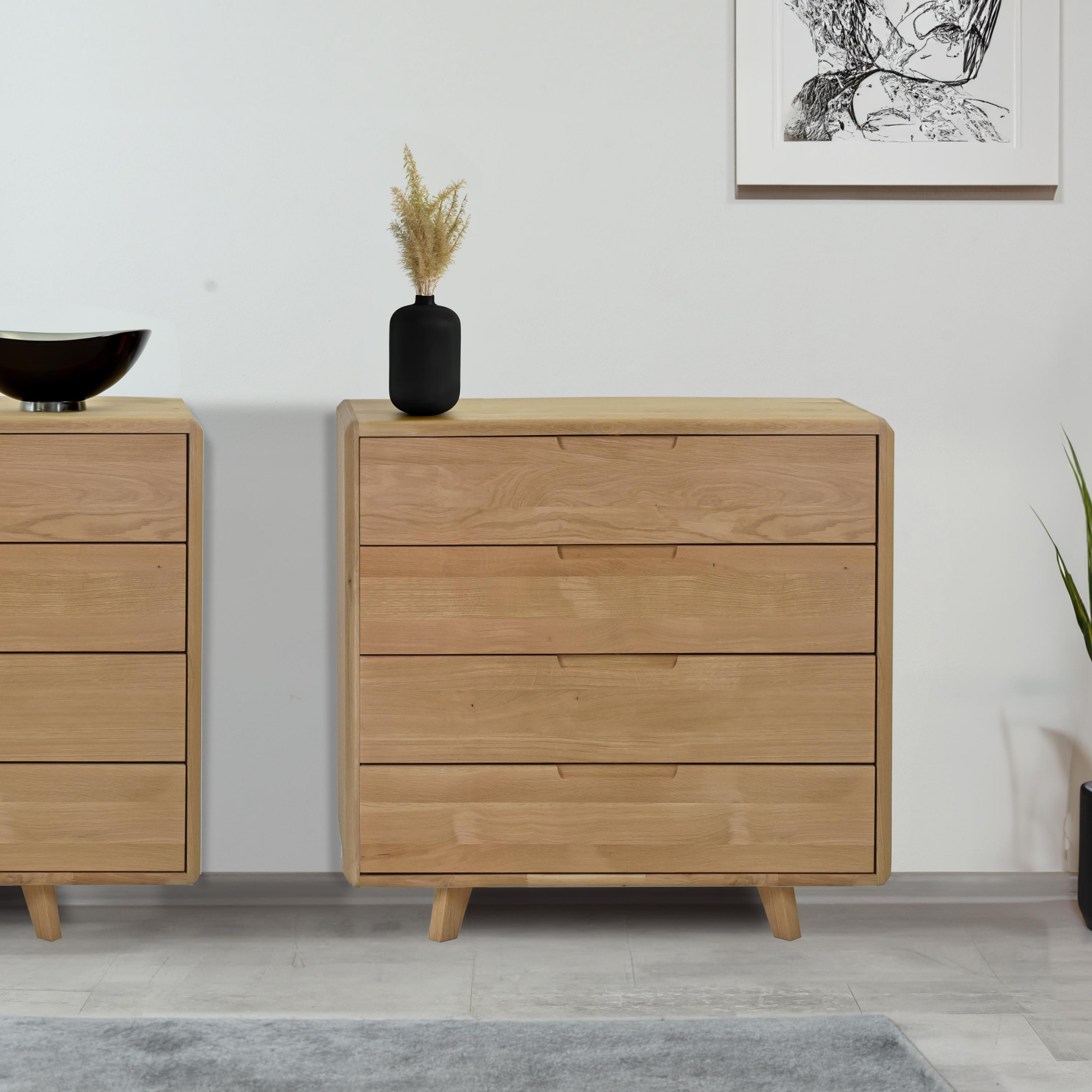 Bemutatjuk elegáns Bratislava kollekciónkból származó tölgy fiókos komódunkat, amely kiváló példája a skandináv dizájnnak és a funkcionalitásnak. Ez a komód, fehér tölgy árnyalatban, olajviasz felülettel, az időtálló megjelenés és a tartósság ötvözete. Minimalista dizájnja, amely a skandináv stílusra jellemző, könnyen illeszkedik különböző belsőépítészeti koncepciókhoz, legyenek azok modernek vagy hagyományosak.
