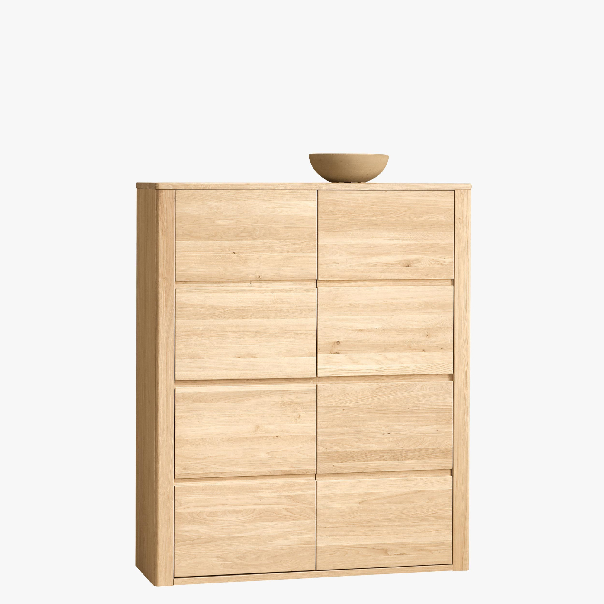 Tömör tölgy komód gyönyörű minimalista dizájnnal rendelkezik, amelyet sima felületek és finoman lekerekített élek uralnak. Ezek a jellemzők az egész NICE kollekcióra jellemzőek, amelyből ez a komód származik. Használja ki a lehetőséget a kollekció további elemeivel való kombinálásra, és hangolja össze otthonát egységes stílusban – tömör tölgy bútorokkal! A komódhoz jól illik a TV-szekrény, a vitrin vagy a dohányzóasztal. A NICE kollekció komódját és egyéb bútorait három színváltozatban kínáljuk: