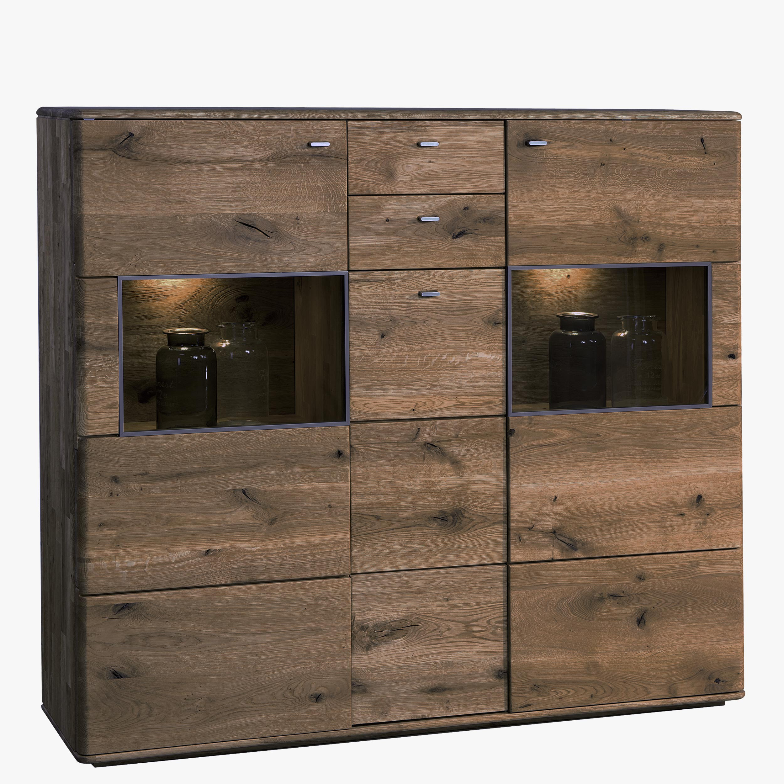 Magas és hosszú komód két üvegezett ajtóval, TYP 47 Texas, égett tölgy szín