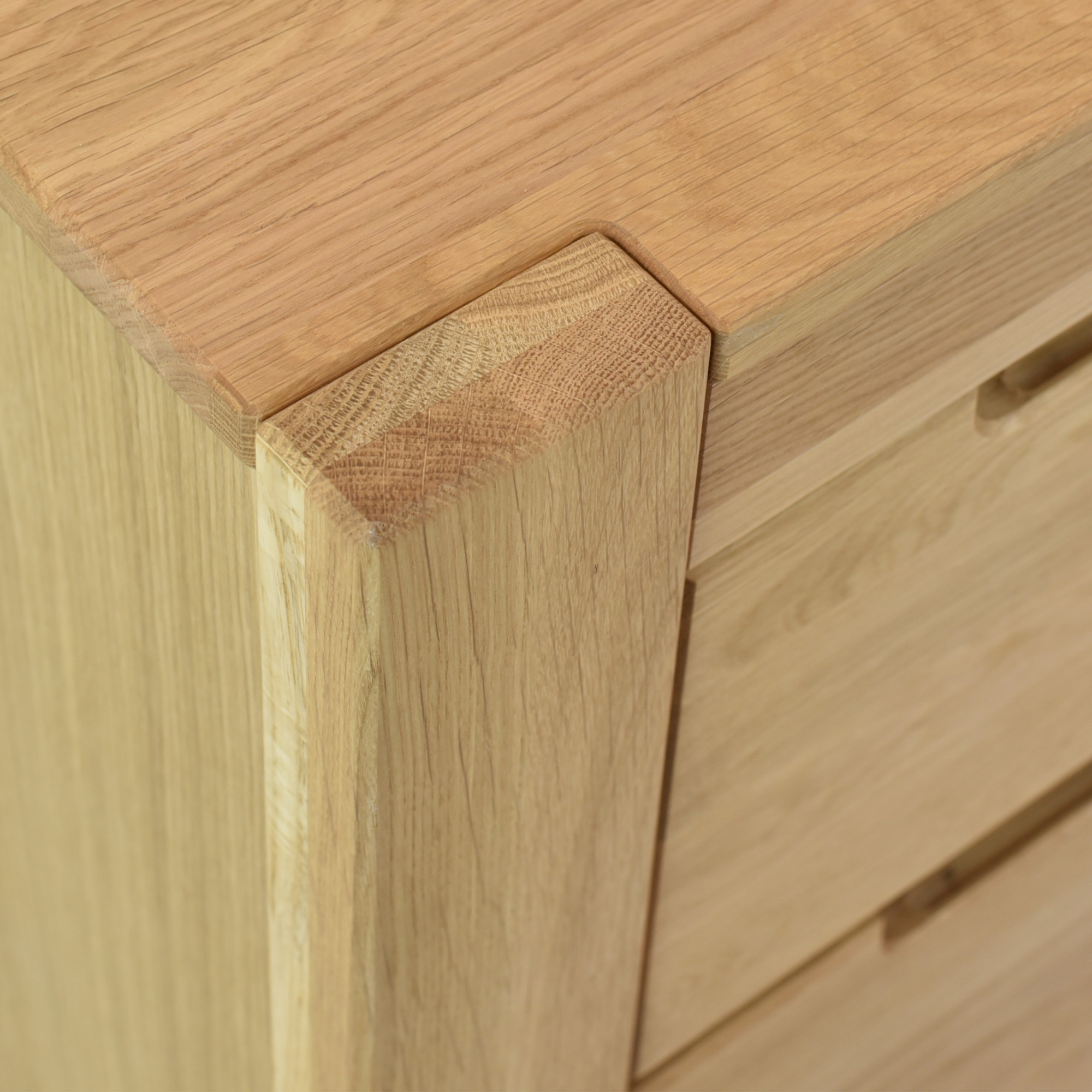 Az elülső felületek, a felső lap és a lábak tömör tölgyfából készülnek, az oldalak és a látható belső felületek pedig minőségi tölgy furnérból; a rejtett szerkezeti elemek ellenálló fóliát használnak tölgy dekorban a hosszú élettartam és stabilitás érdekében. A masszív kivitelnek köszönhetően a komód generációkon át szolgál. A felhasznált fa felelős forrásból származik, FSC tanúsítvánnyal, így Ön támogatja az erdők fenntartható kezelését. A tölgy komód kiválóan kombinálható a Napolen kollekció többi elemével, valamint bármilyen tölgyfa bútorral az otthonában.