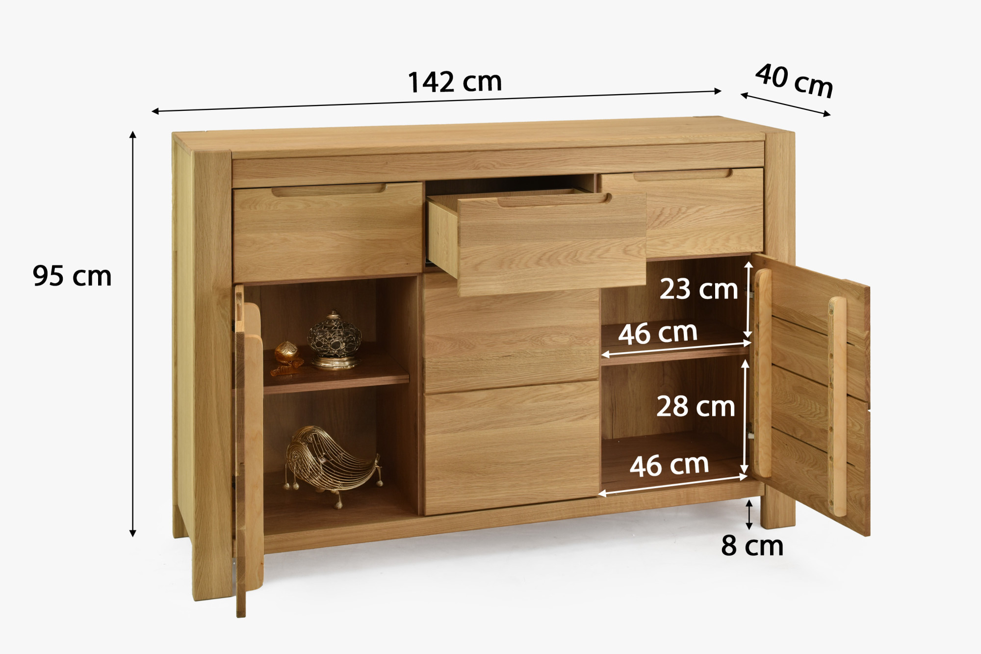 Tölgyfa komód ajtókkal és fiókokkal, natural, 142x95x40 cm
