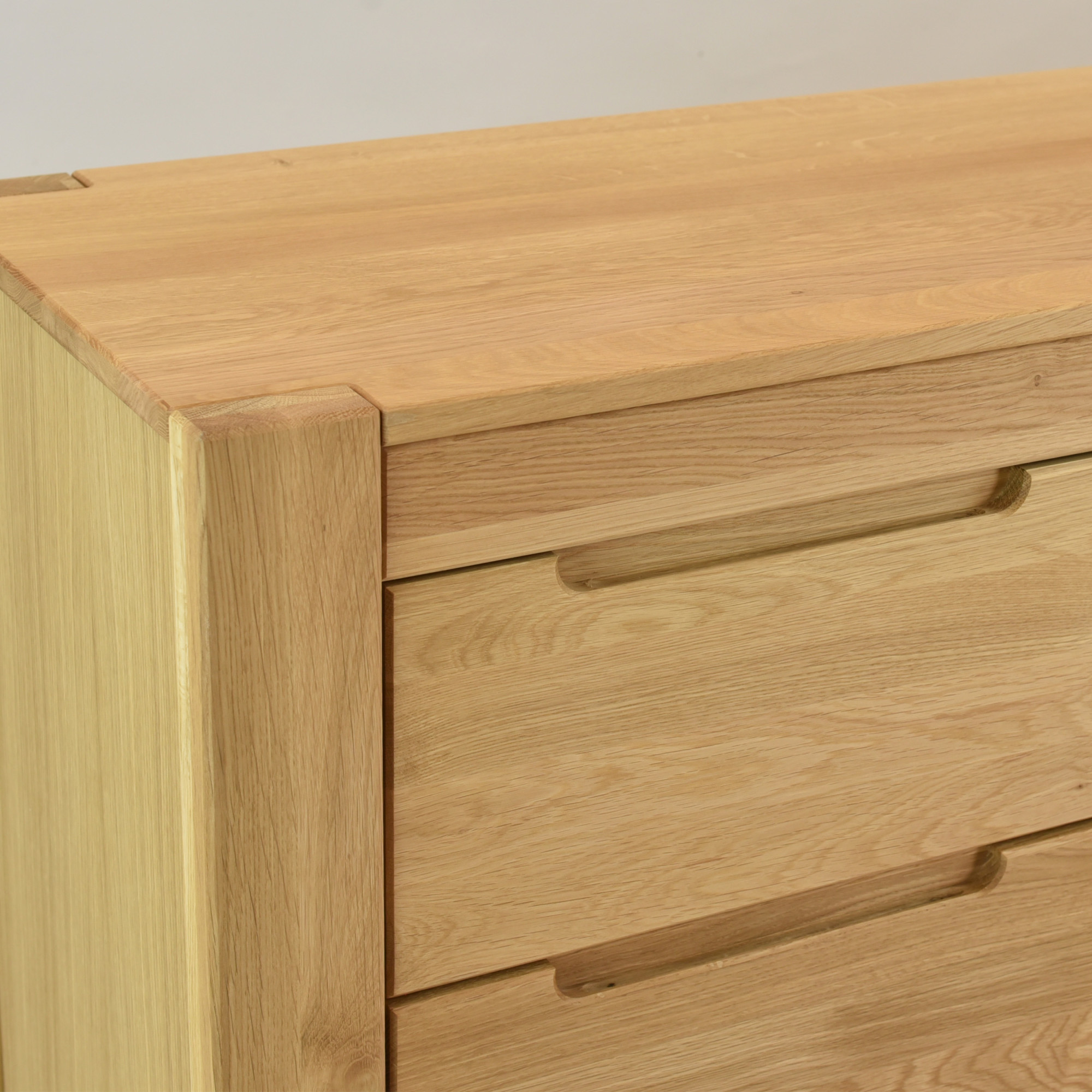 Tömör tölgy elülső felületek, felső lap és lábak – nagy szilárdság, természetes erezet és hosszú élettartam.