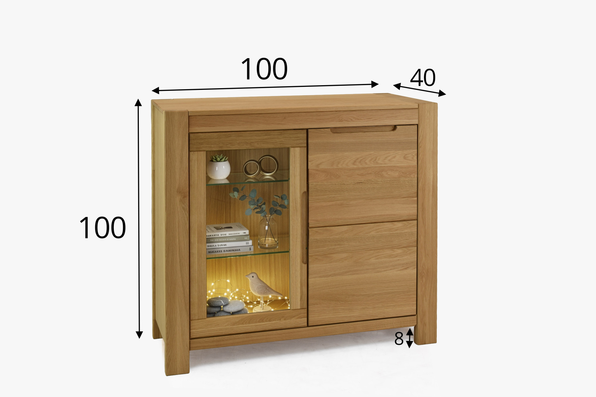 Minőségi tölgy furnér az oldalakon és a látható belső felületeken – egységes megjelenés és optimalizált ár.