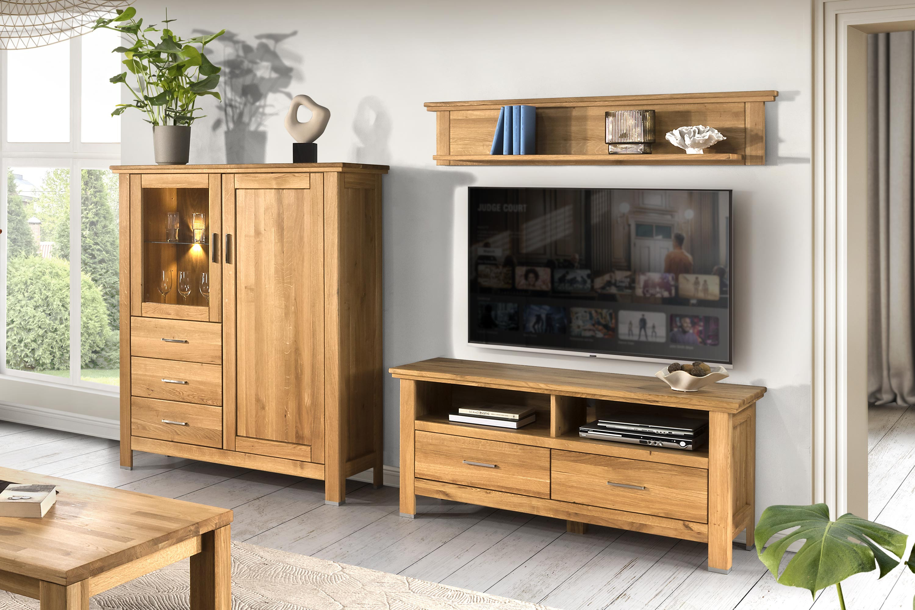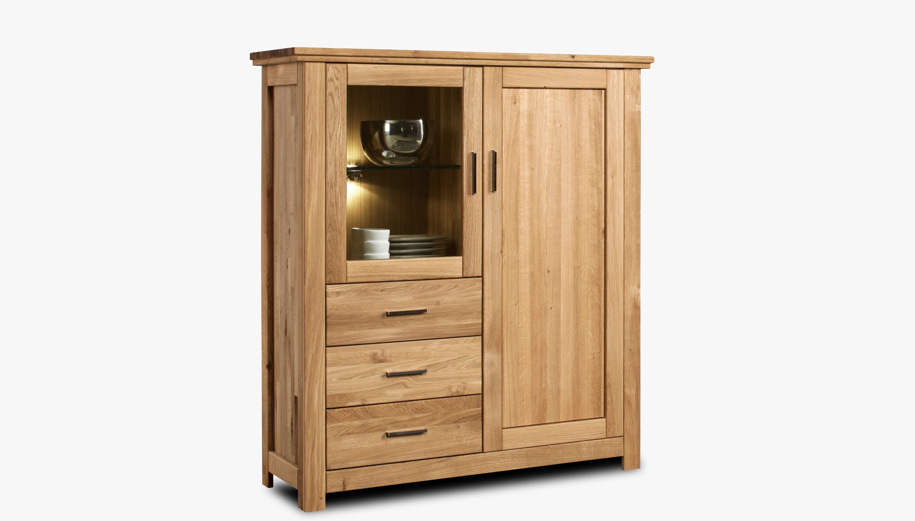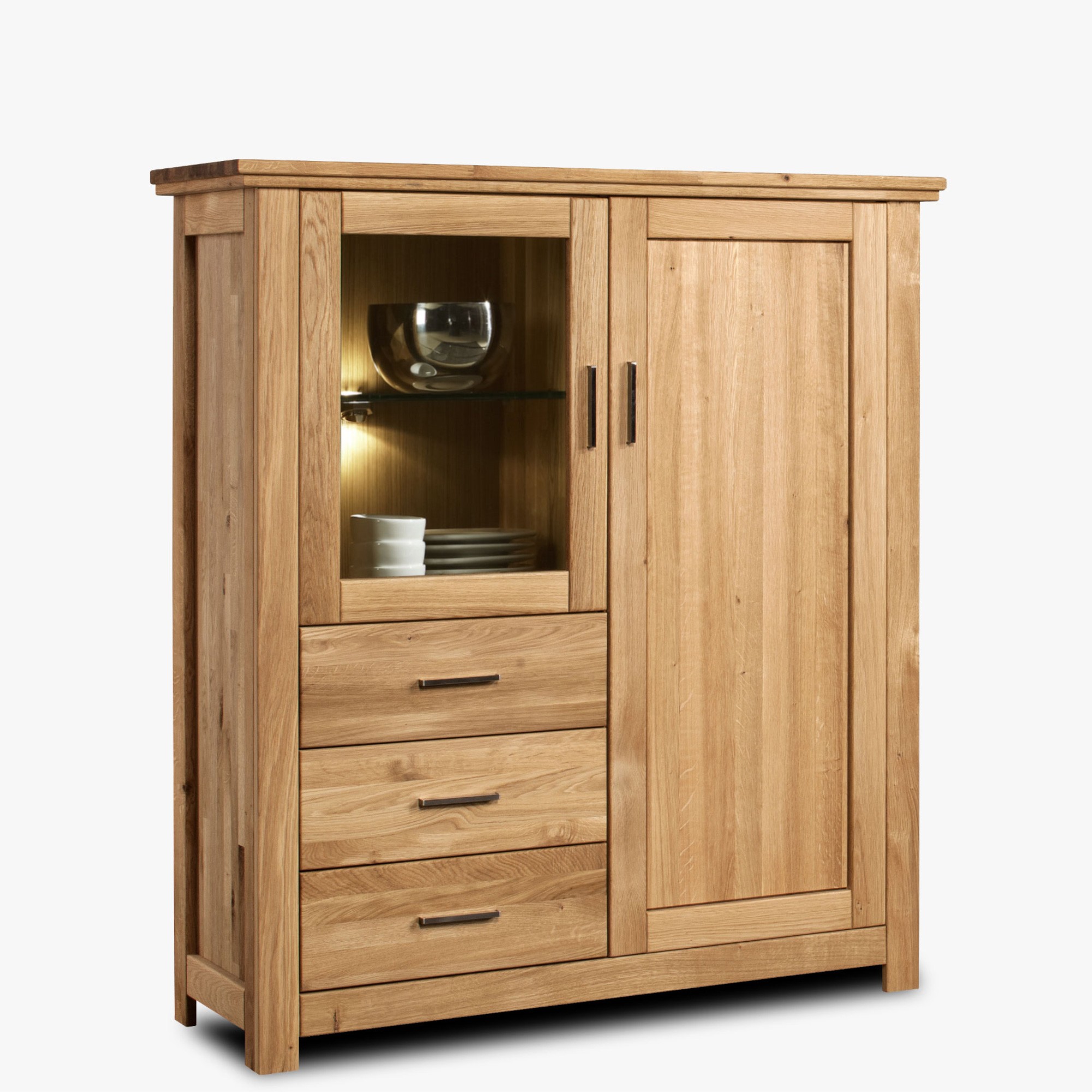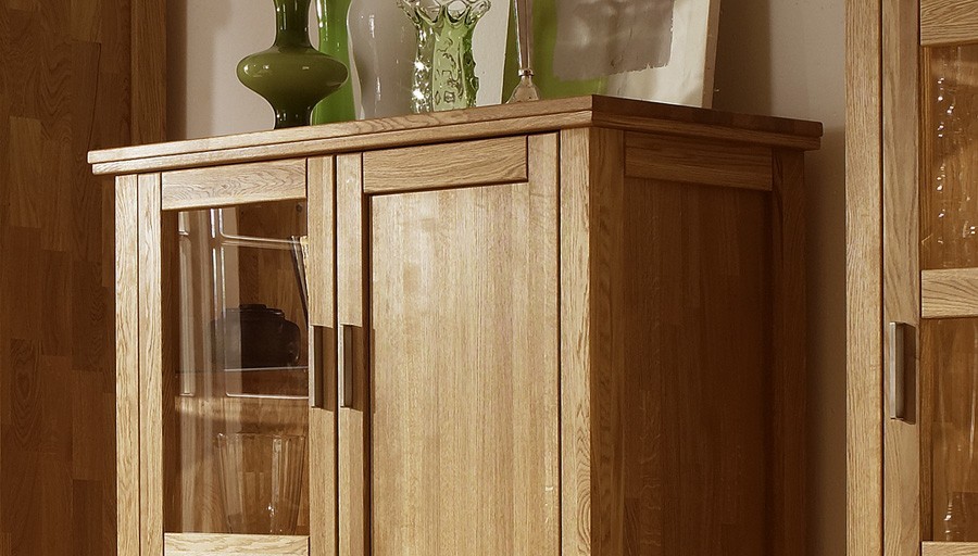 Tölgyfa komód üveggel a nappaliba
