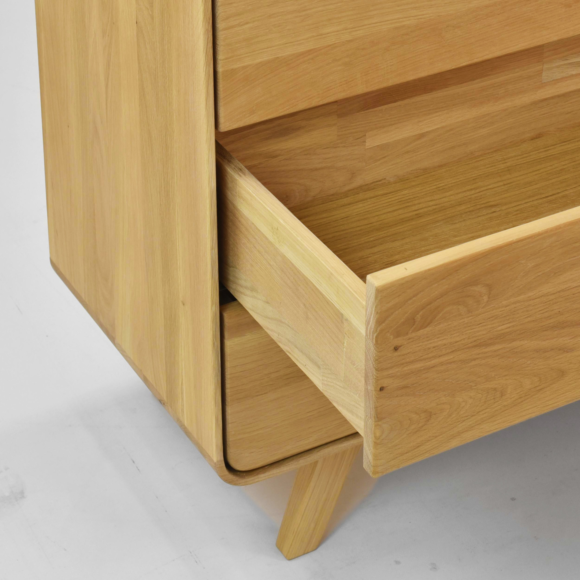A felületet természetes olajjal kezelték, amely kiemeli a masszív tölgy erezetét és védi a fát. Az olaj lehetővé teszi, hogy a fa lélegezzen, és az esetleges felújítás is nagyon egyszerű. - Milyen a fiókok belső mérete?