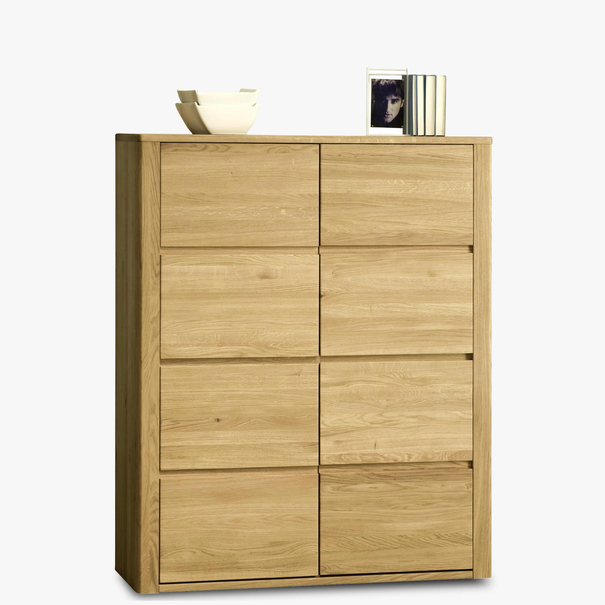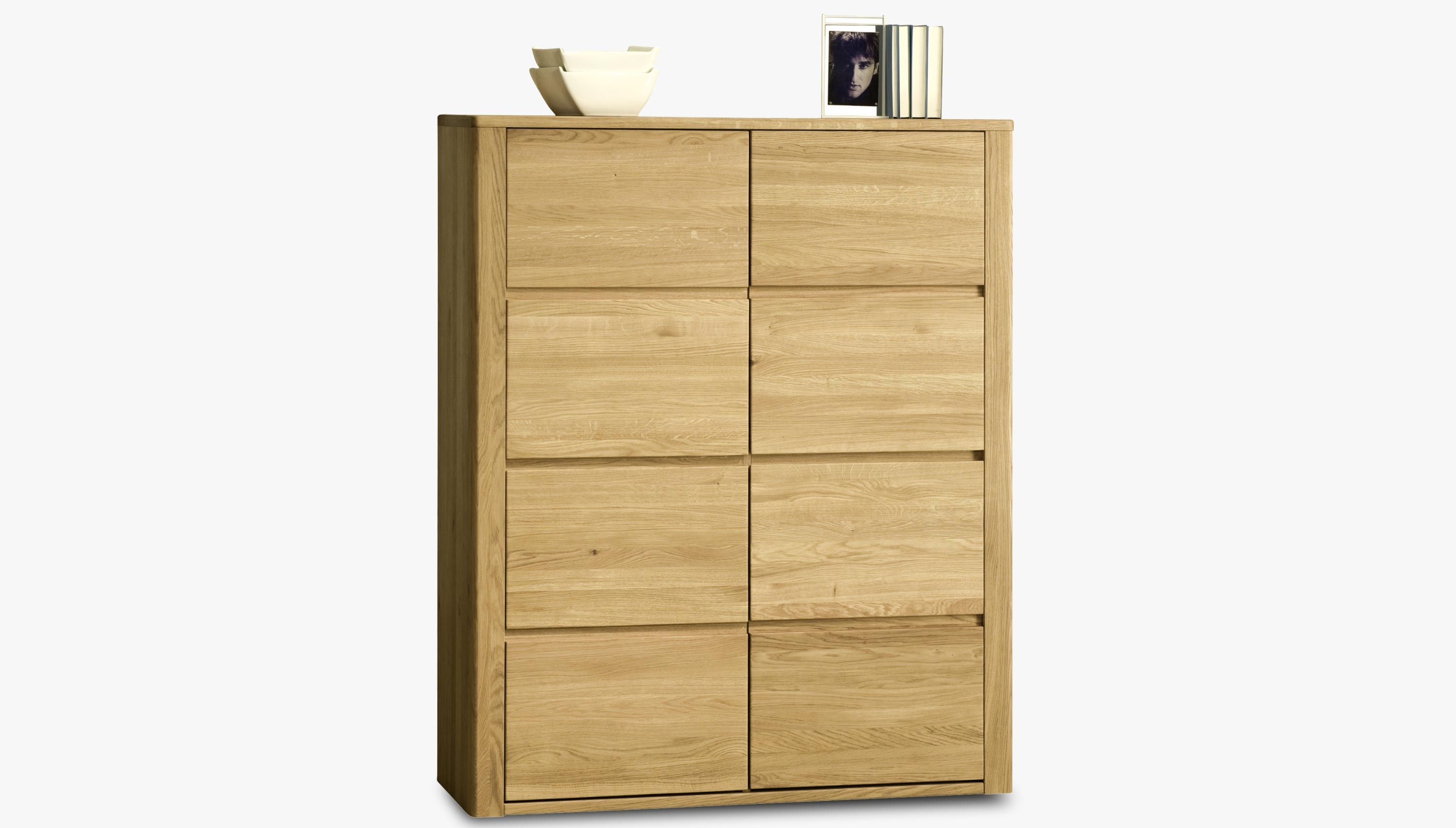 Modern tömör tölgy komód minimalista dizájnnal, világos színű