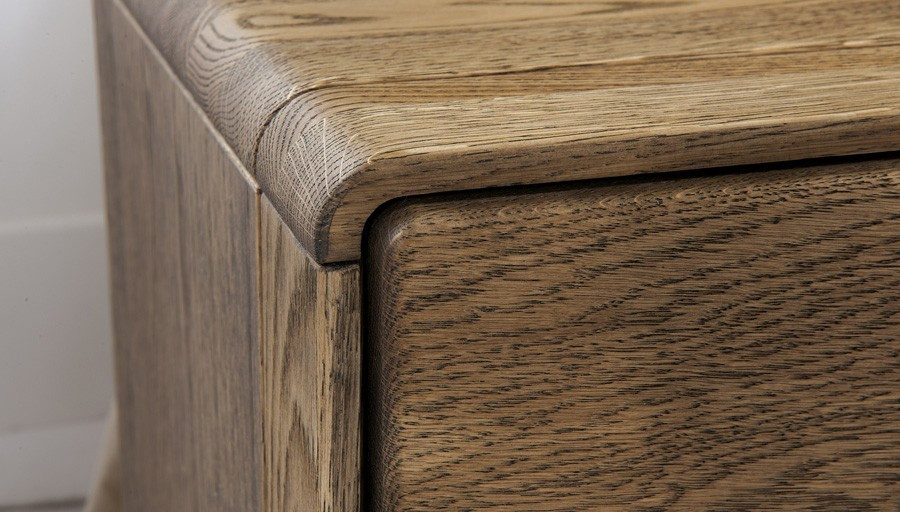 Luxus tölgyfa komód a Helsinki kollekcióból tömör anyagból készült, amelynek felületét speciálisan és alaposan keféléssel dolgozzák fel. Speciális kefékkel eltávolítják a felületről az úgynevezett puha (tavaszi) fát, és kialakul egy kiemelkedő, keményebb faszerkezet, amely kiemeli a fa erezetét. A felületen maradó keményebb fa rész nagyobb keménységet, hosszabb élettartamot és egyedi megjelenést kölcsönöz a terméknek. Minden érintésnél érezni fogja a természetes fa lenyűgöző struktúráját. A vad tölgyből készült bútor kellemes illattal tölti meg a belső teret, a tömörfa jellegzetes illata hosszú ideig az érintetlen tölgyerdő hangulatára emlékeztet majd.