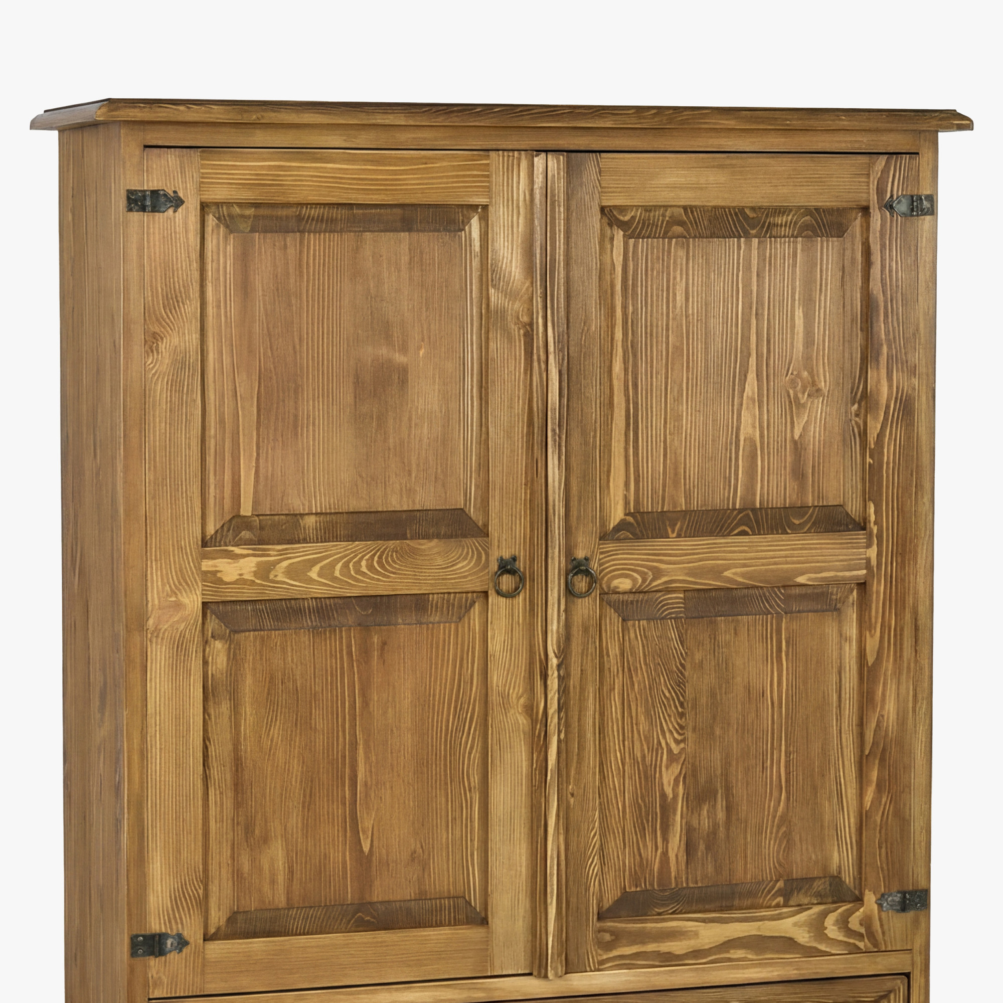 A komód felületét minőségi Supreme Max viasz kezeli Ruggeri Brown árnyalatban, amely kiemeli a fa erezetét és hangsúlyozza a bútor rusztikus jellegét.