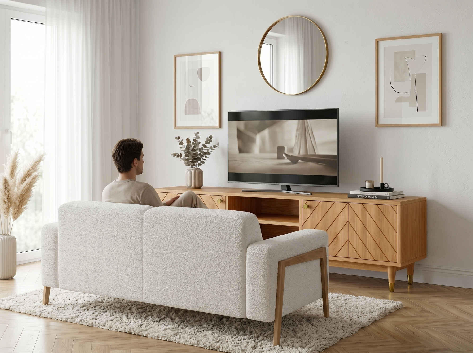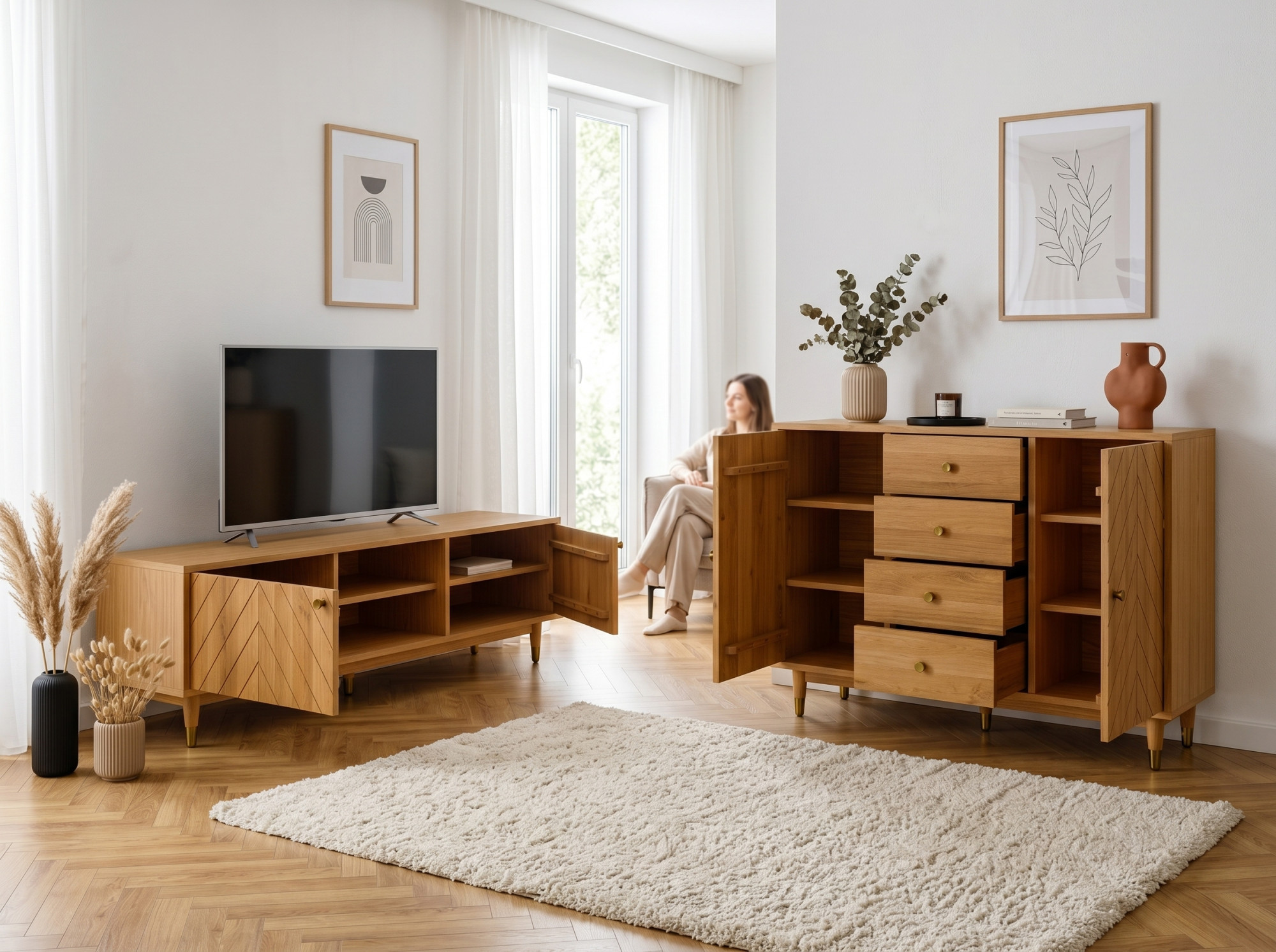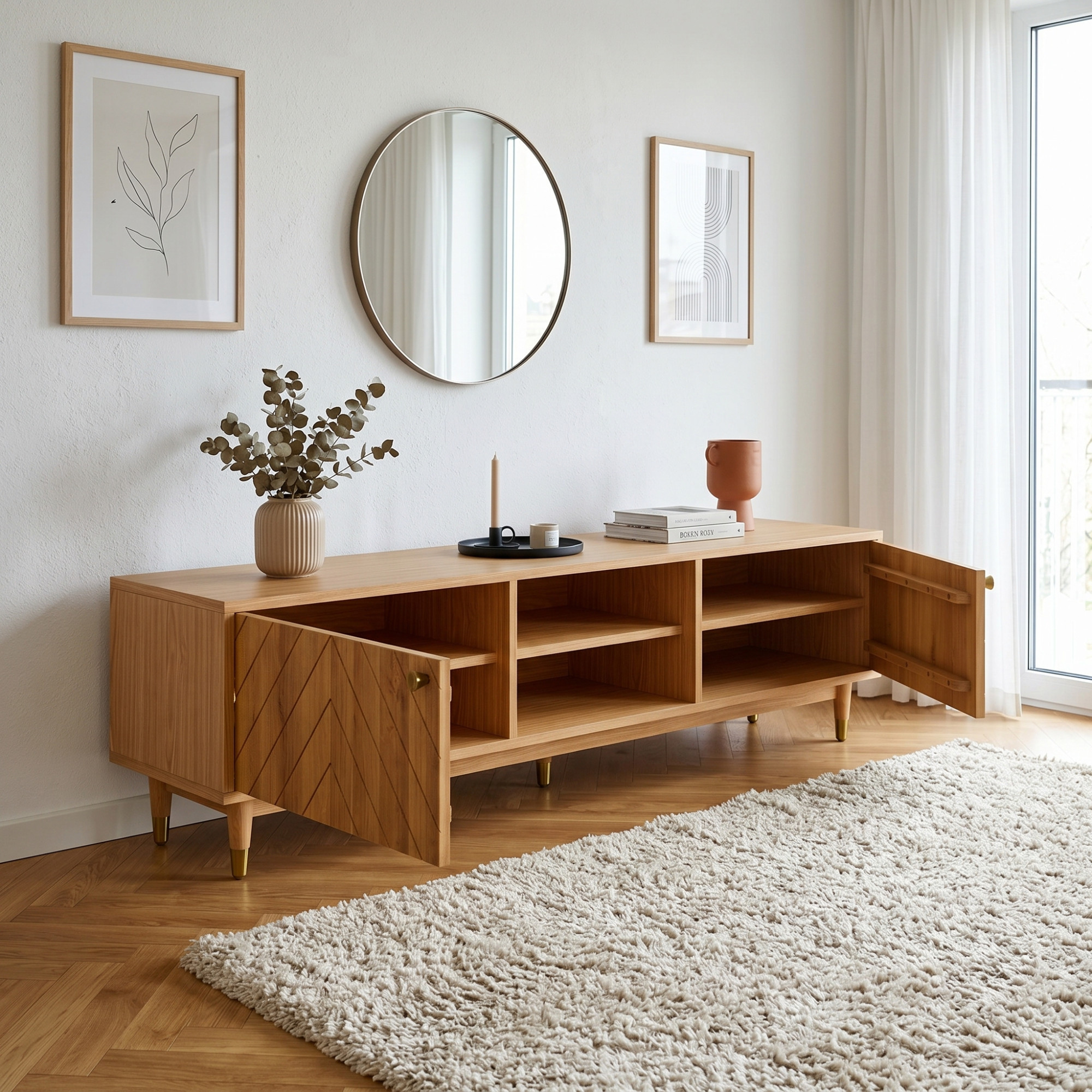 Jessica masszív TV komód 179 cm halcsontmintás marással – tölgy komód nappaliba