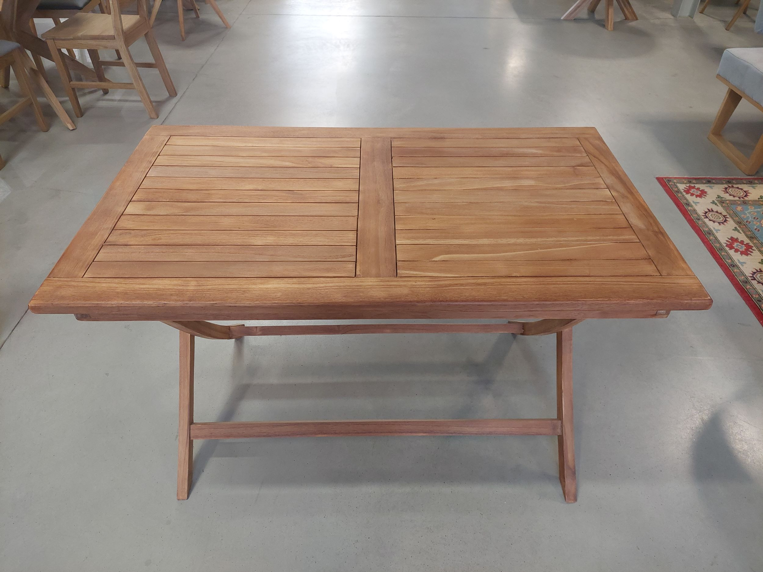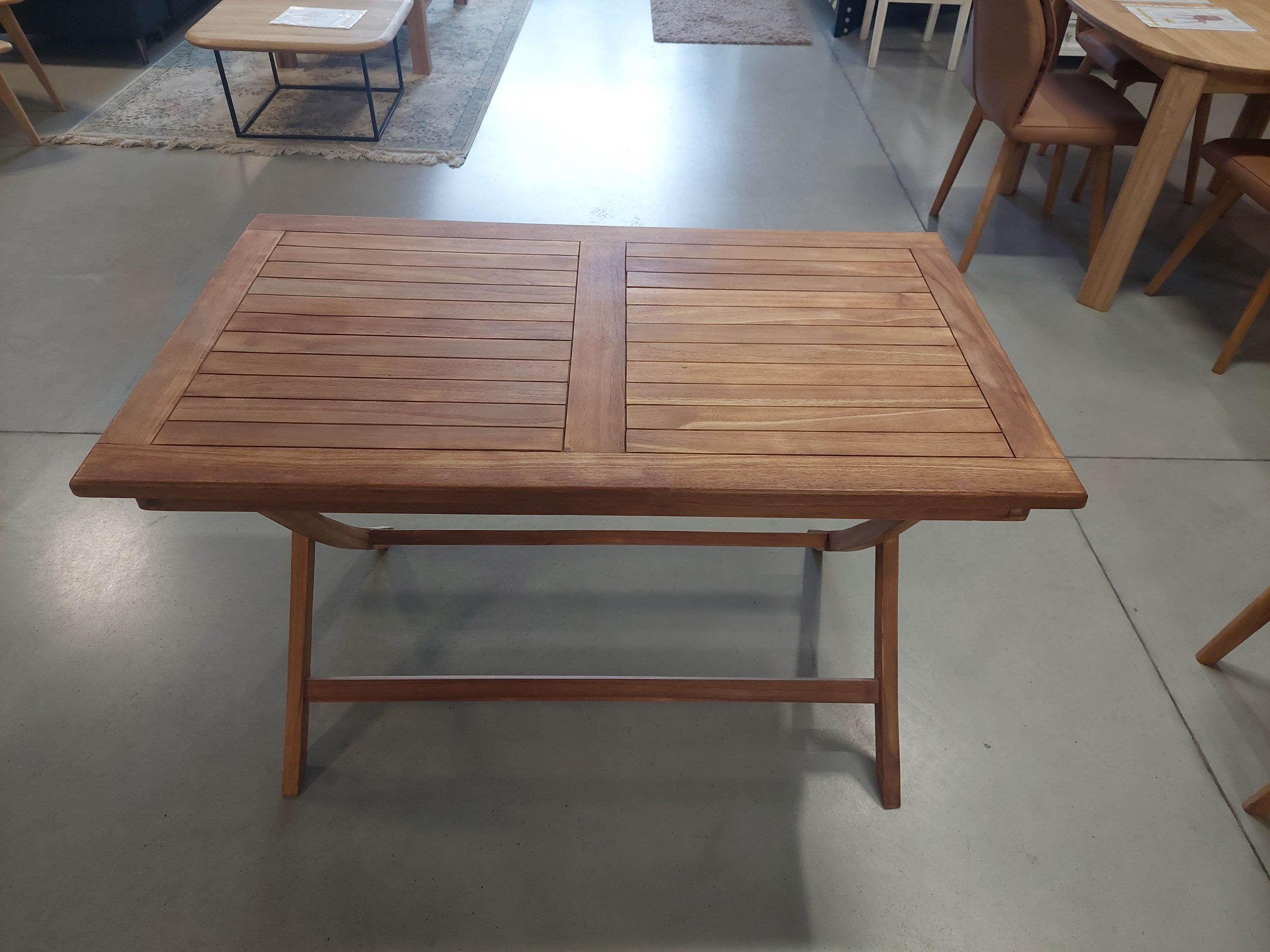 Teakfa kerti asztal – 120 × 70 cm, tömörfa, összecsukható